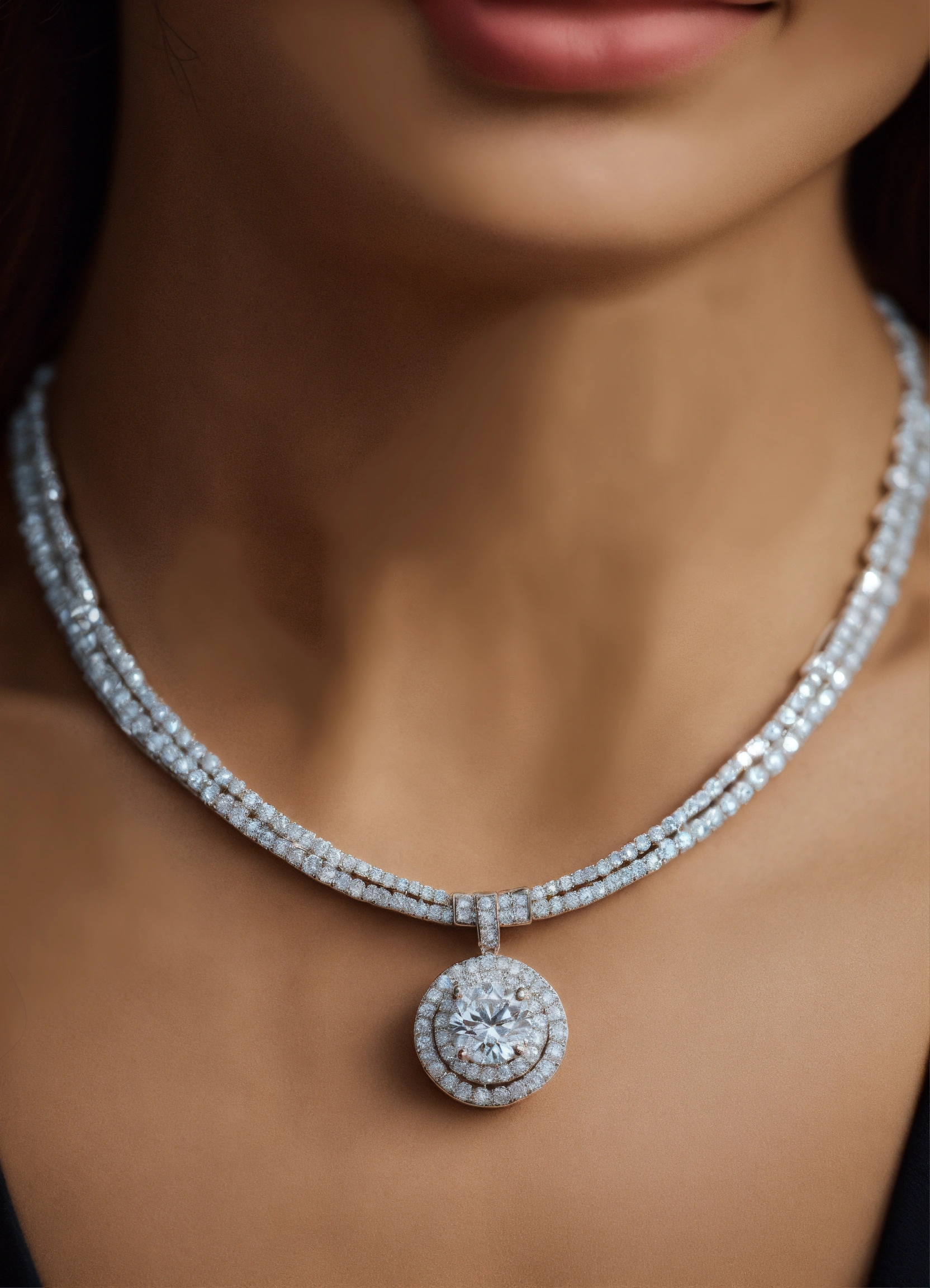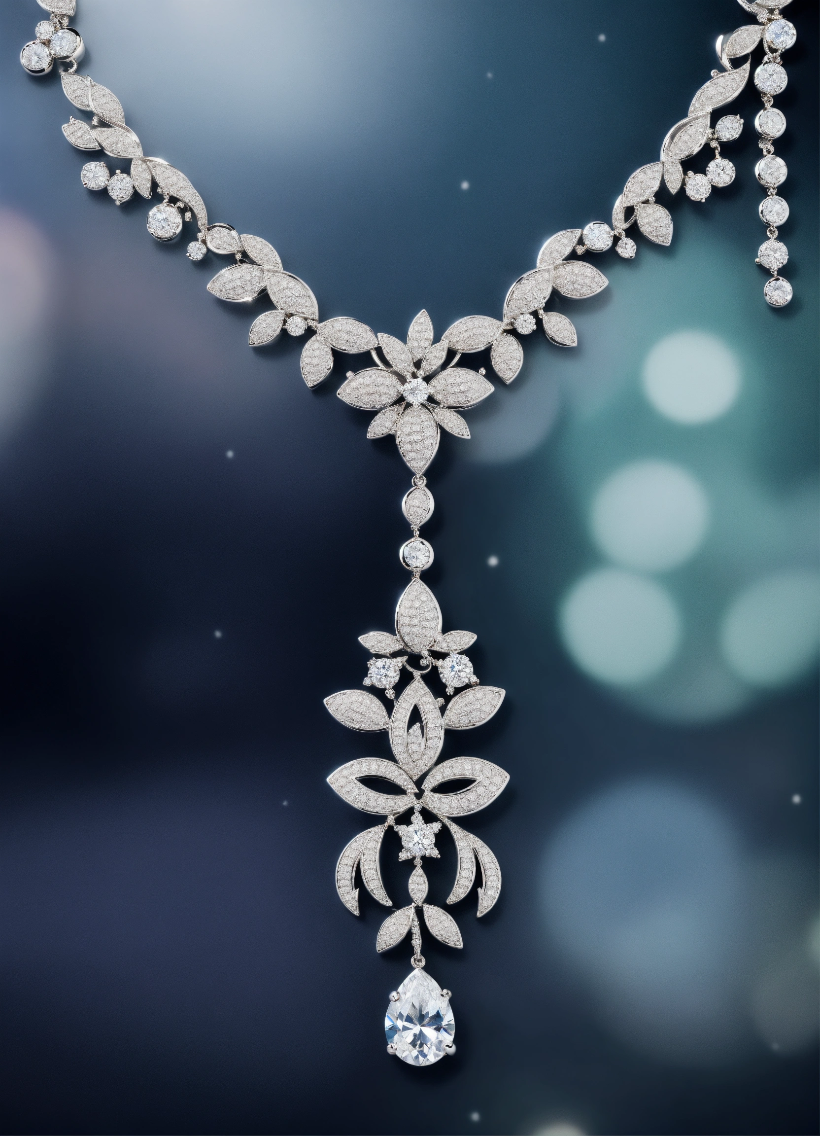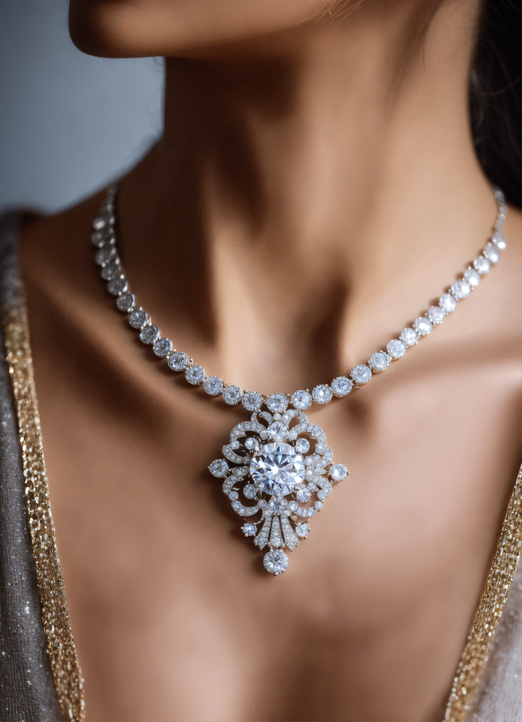 Jewellery design, vintage style, create diamond silver necklace with matte finish in pave setting, thin band, elegant, for christmas event, shining in the party, default-theme, --product-view --ultra-quality