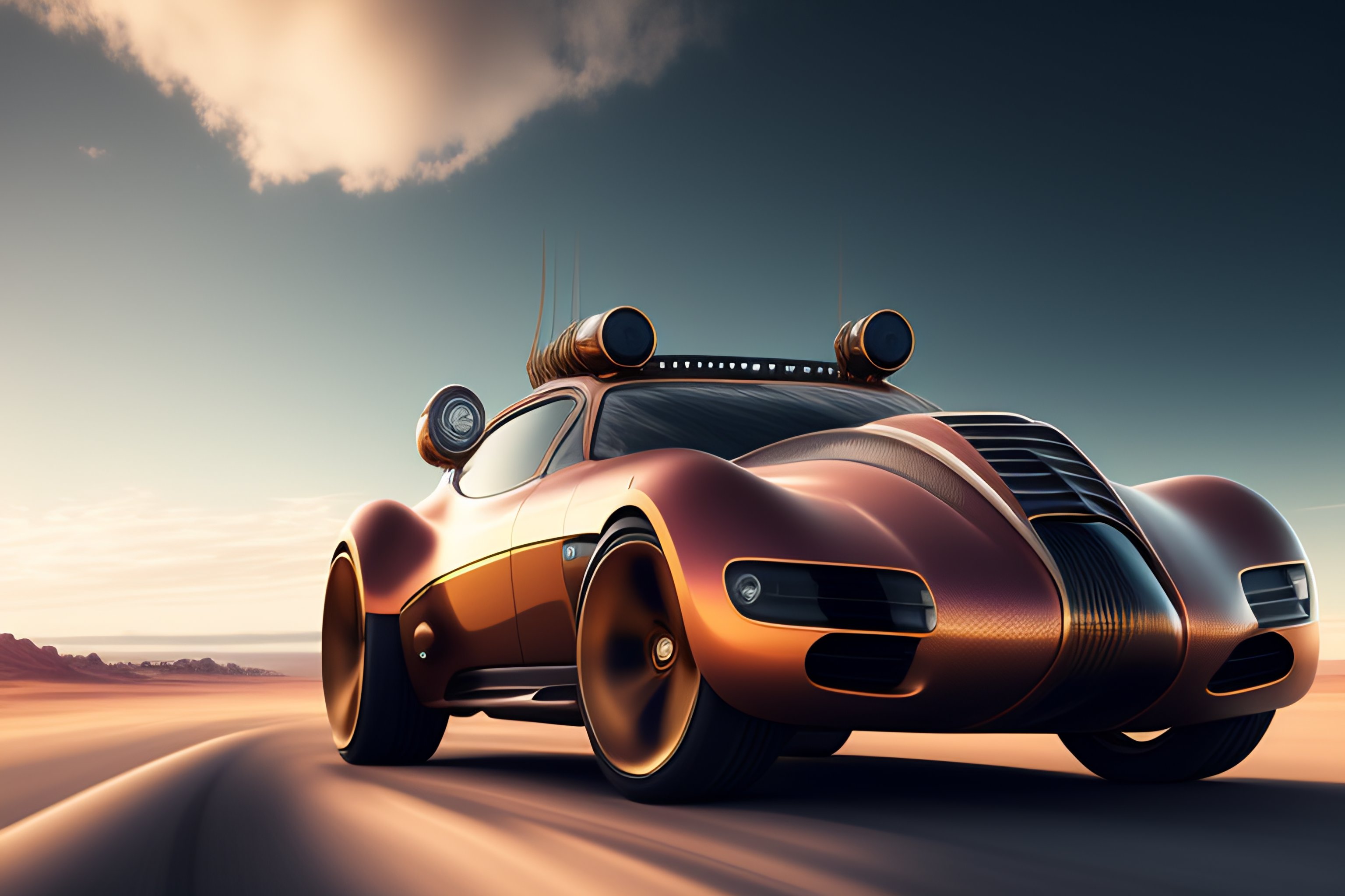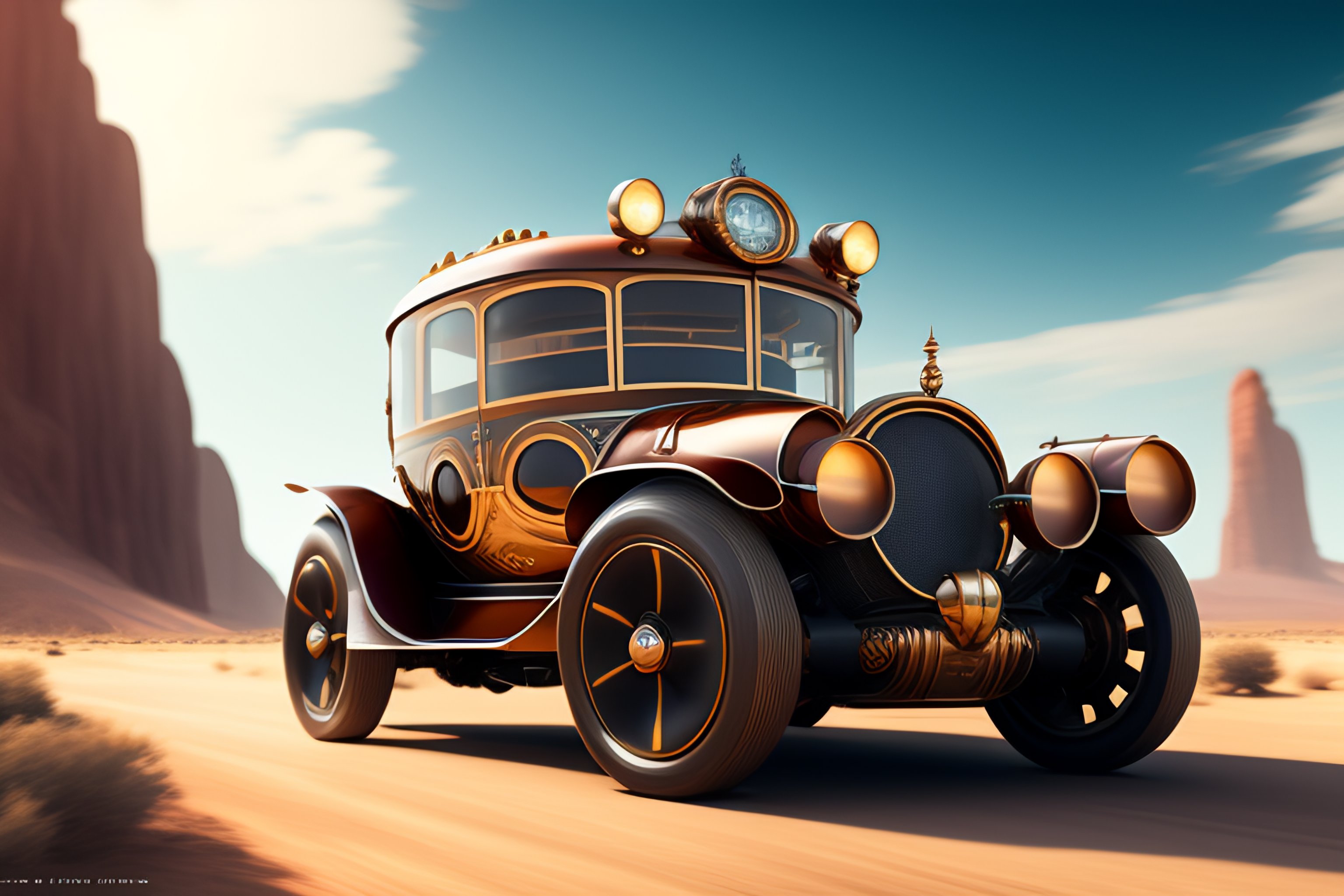 Woman drives steampunk concept car on the open road, wide angle view, from 5000 feet, color splash, cinematic lighting, ultra realistic, concept art, intricate details, eerie, highly detailed, photorealistic, octane render, 8 k, unreal engine. art by artgerm and greg rutkowski and charlie bowater and magali villeneuve and alphonse mucha