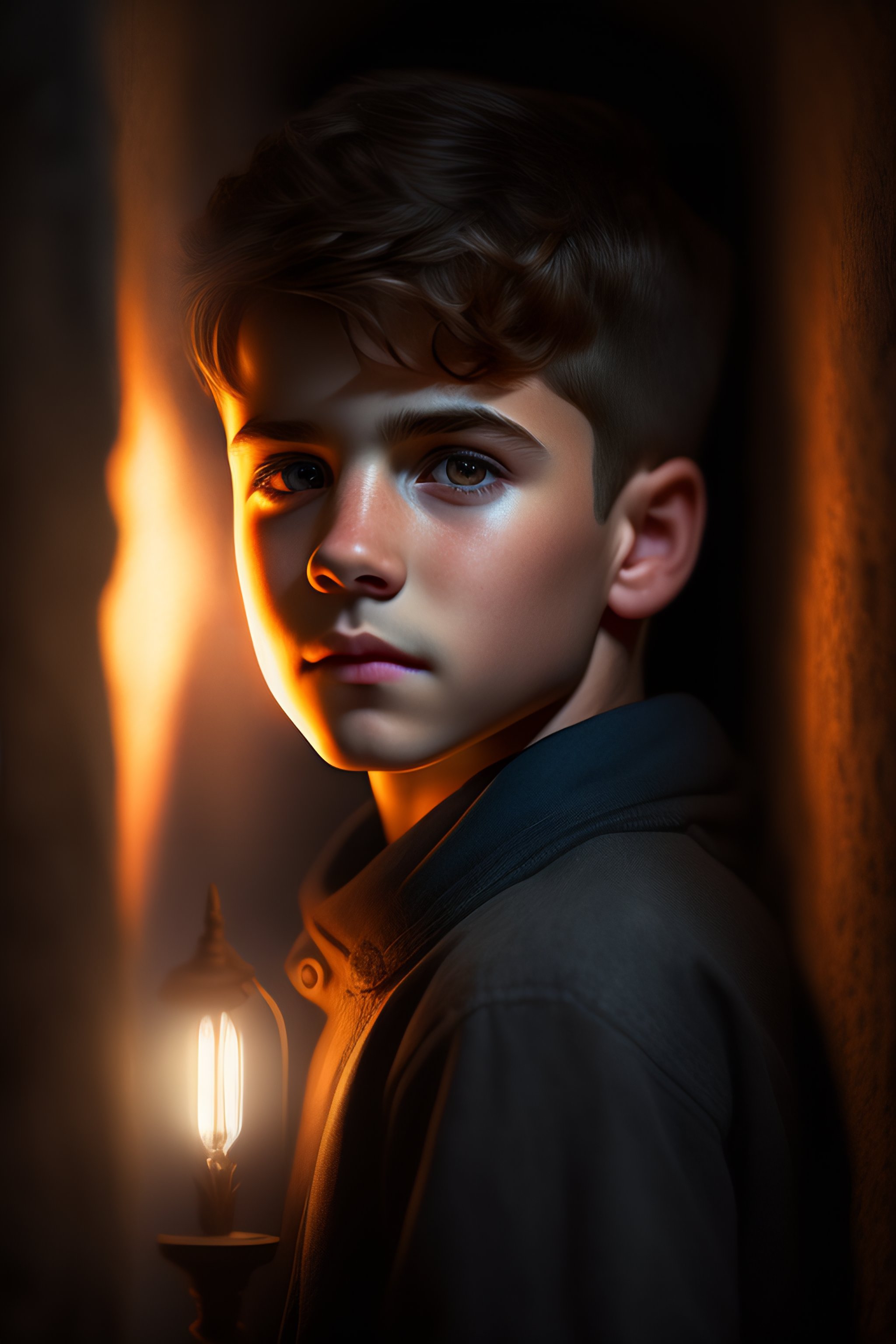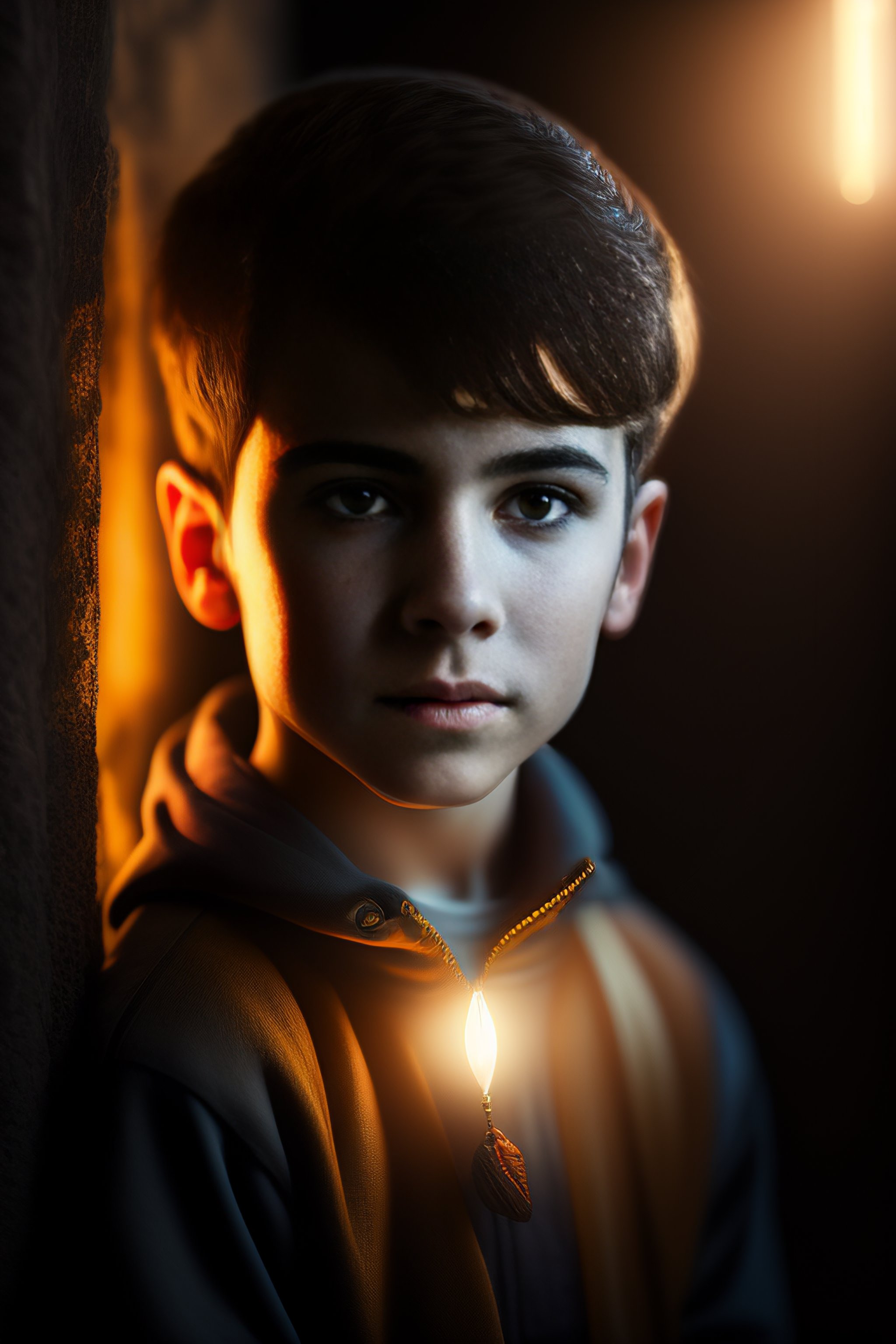 Beautiful art portrait of a boy made of light in a dungeon, atmospheric lighting, intricate detail, cgsociety, hyperrealistic, octane render, rpg portrait, ambient light, dynamic lighting