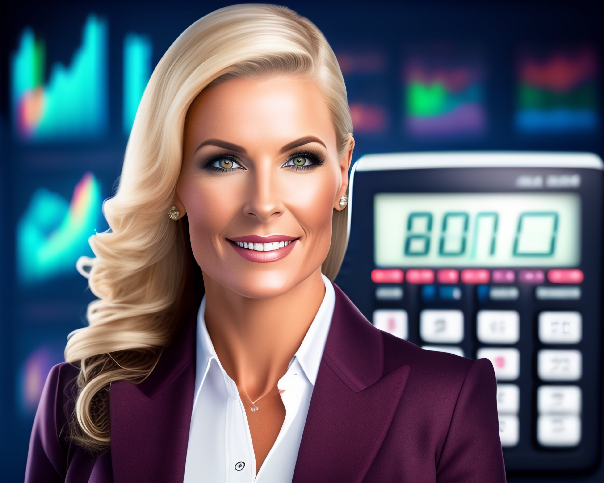 calculator in her right and left hands