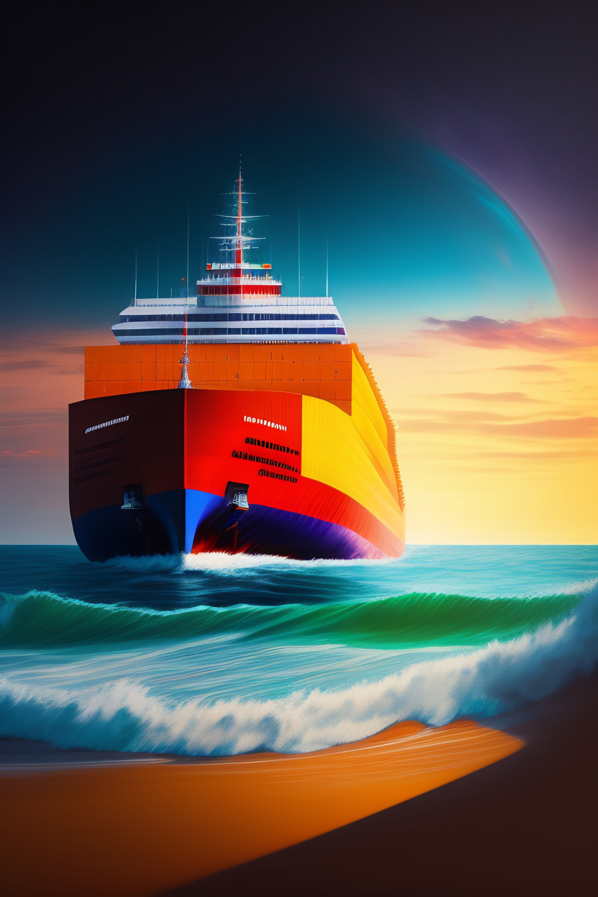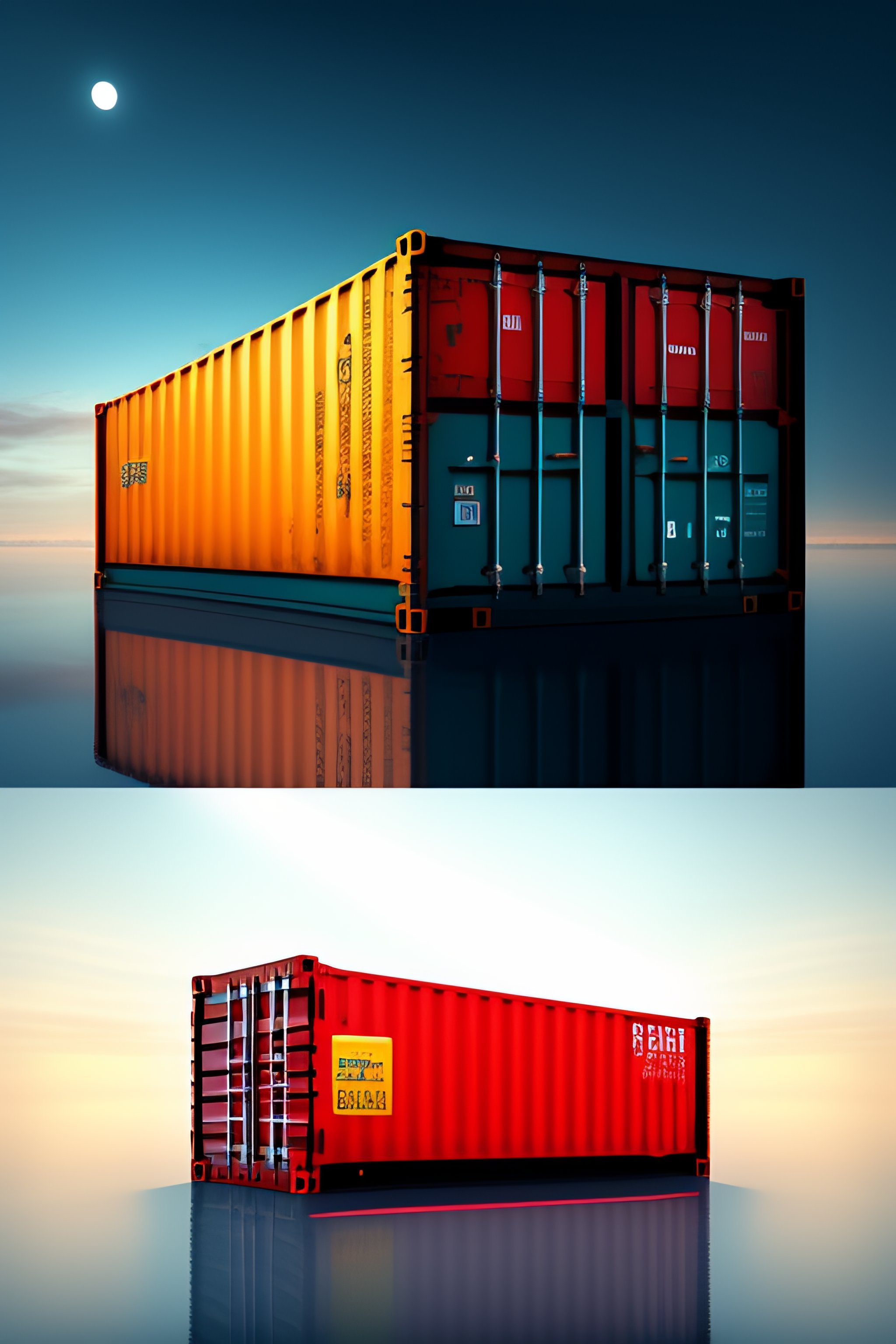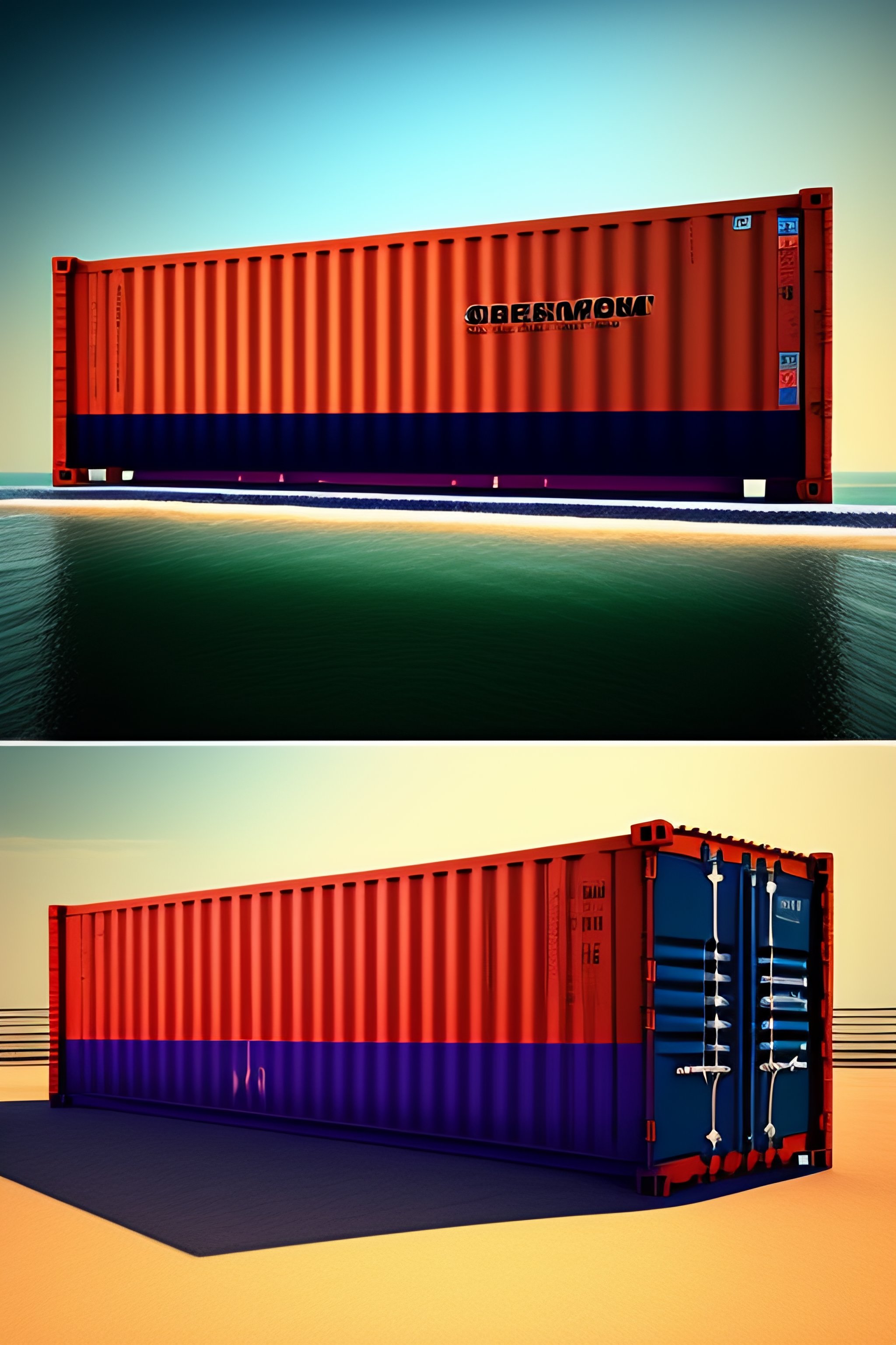 Ship with shipping container and text "container-deshevo" on container