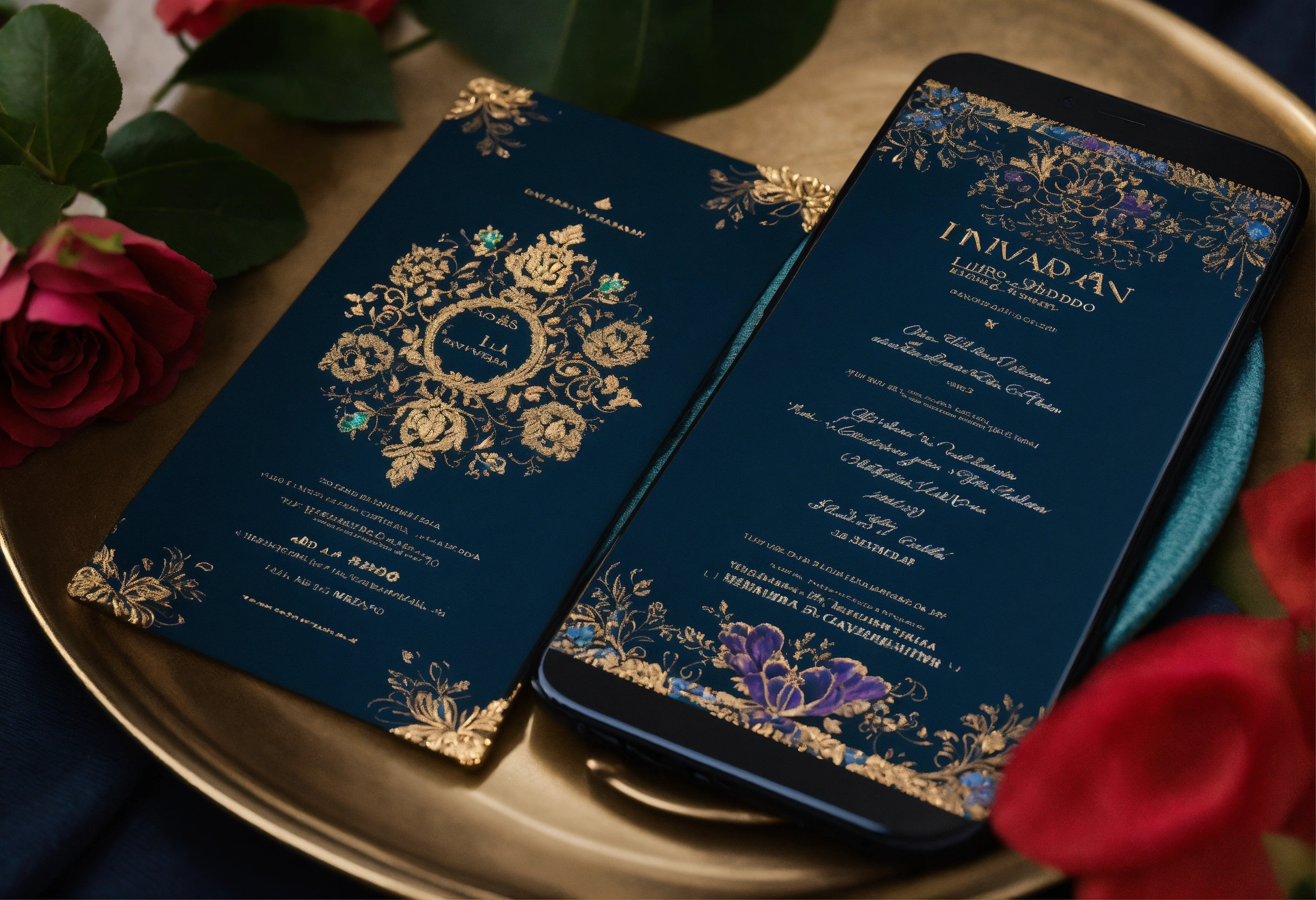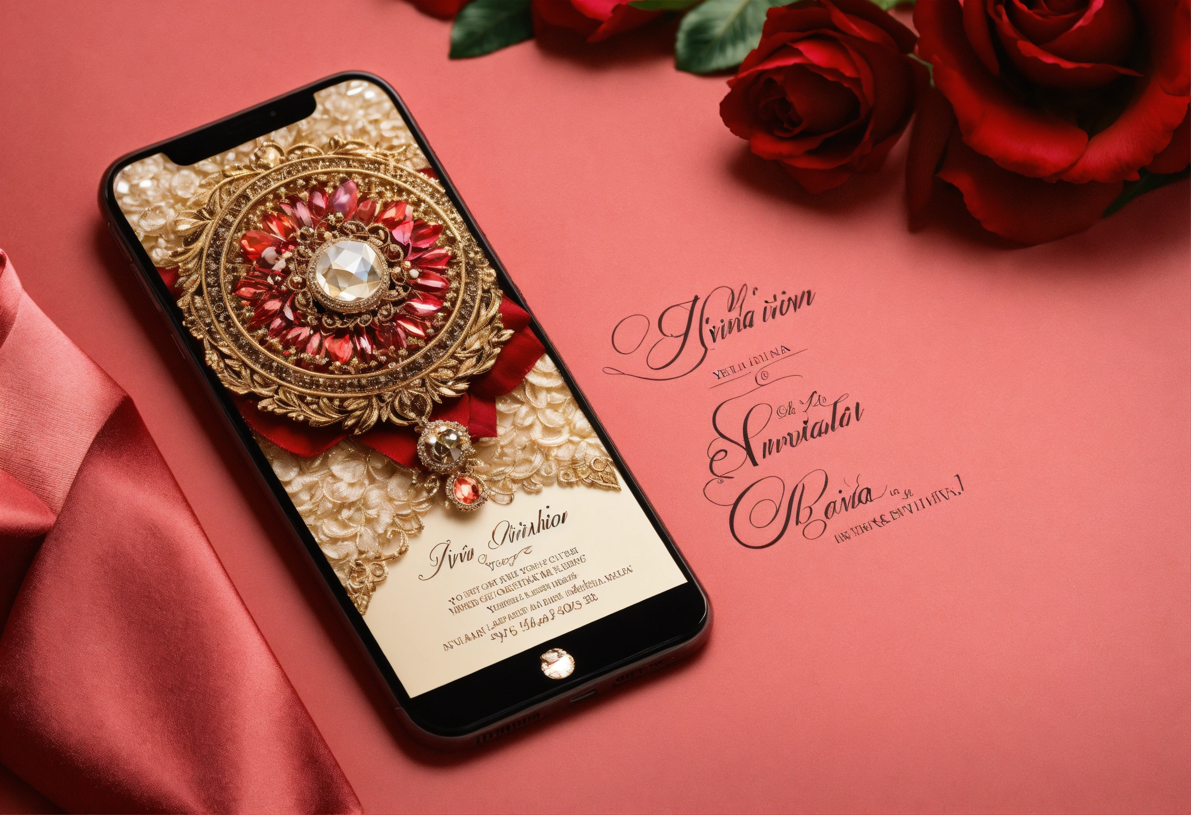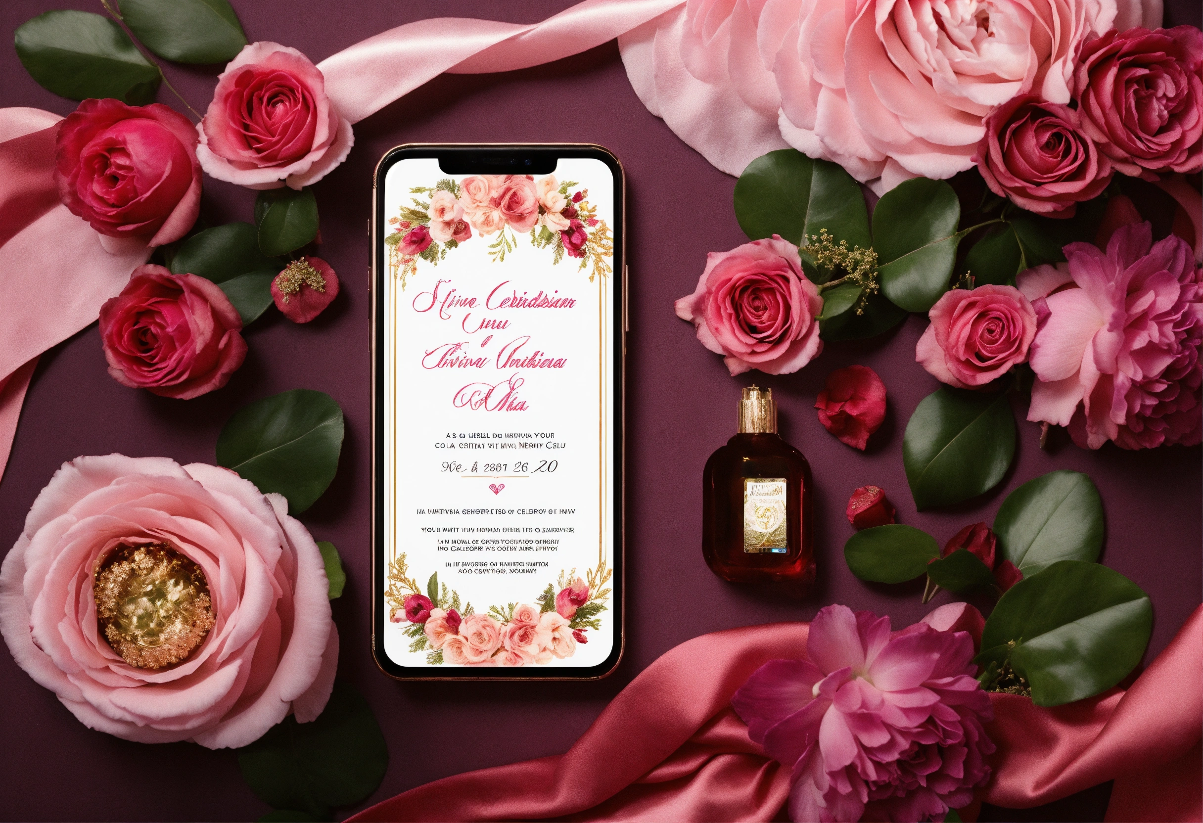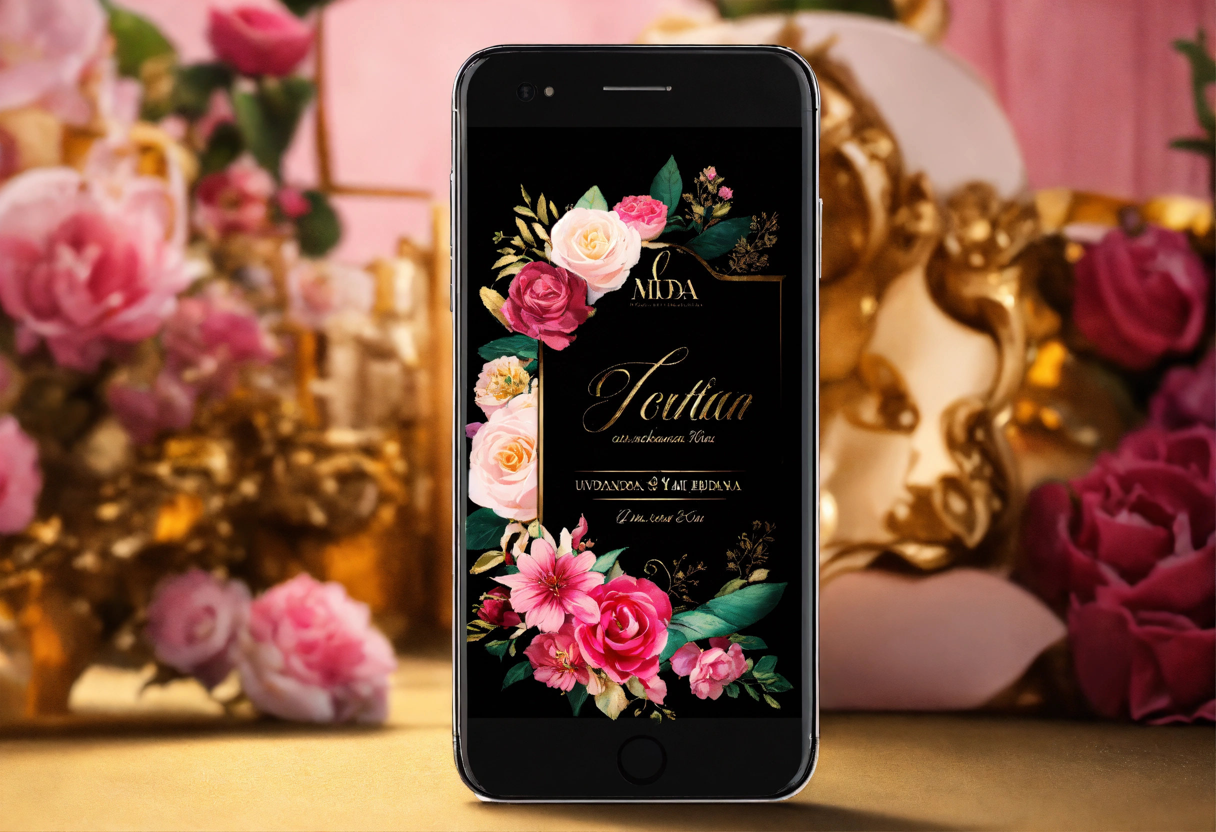 Invitacion digital para una boda elegante en merida youcatan imagen publicitaria realista de una mano con uñas decoradas con celular y en la pantalla la invitacion web