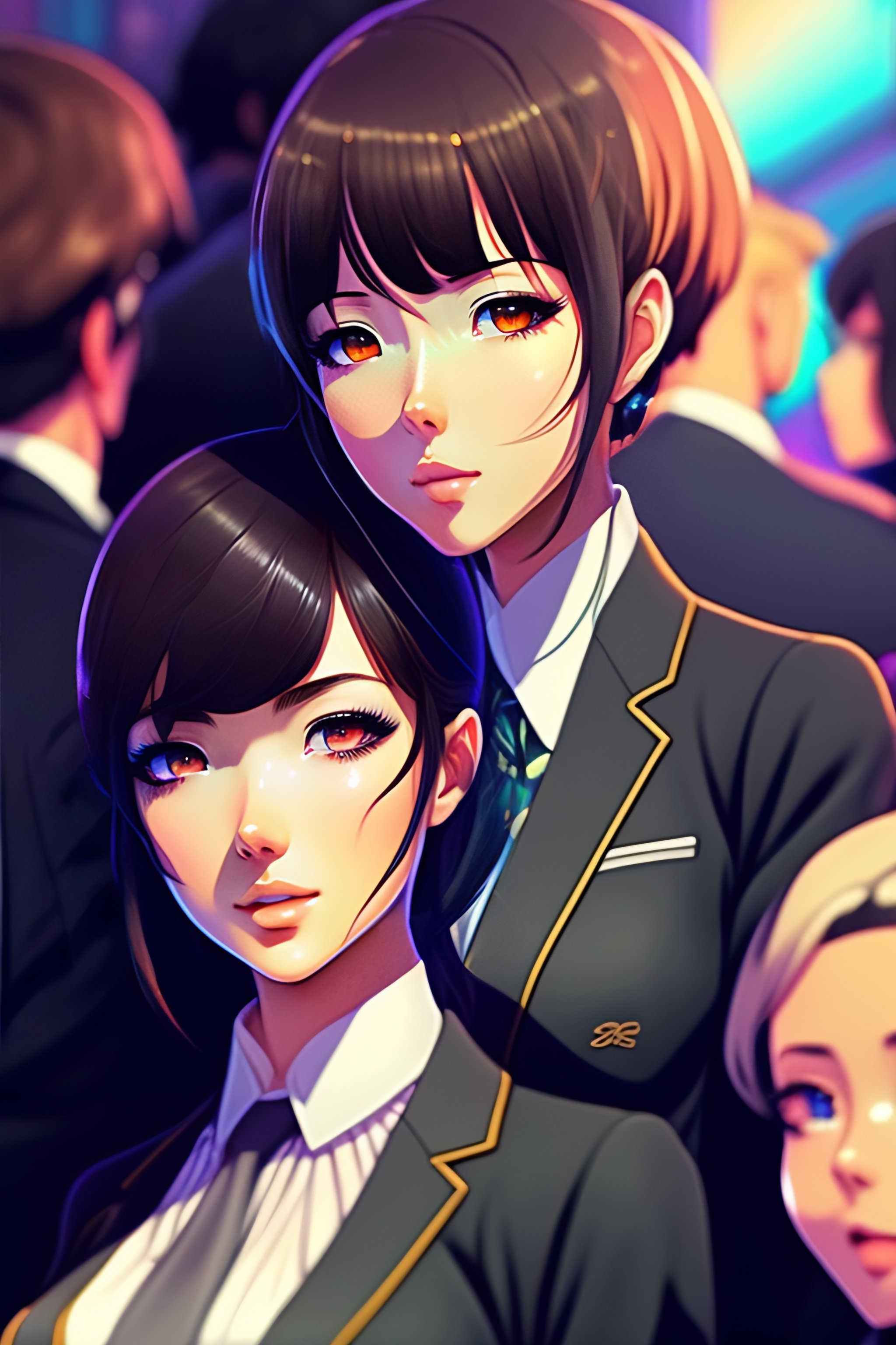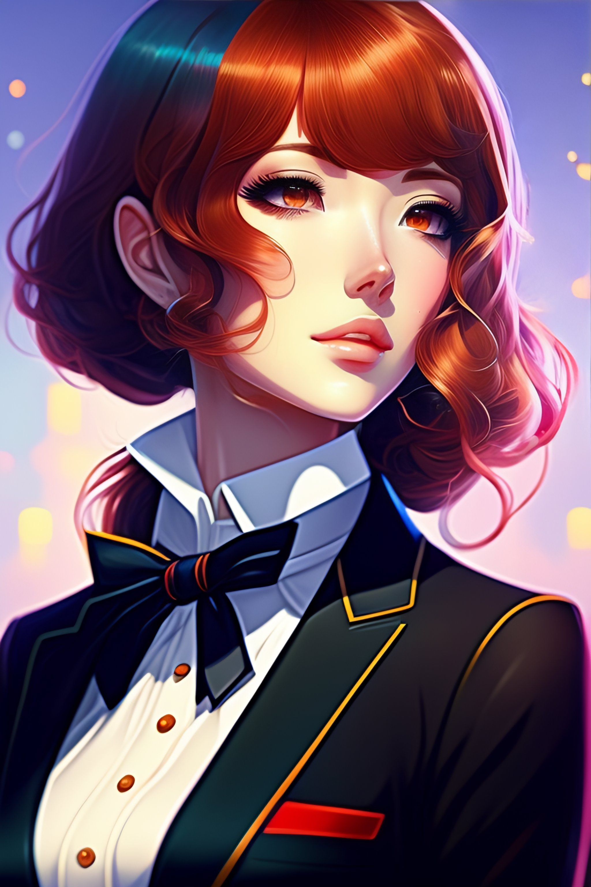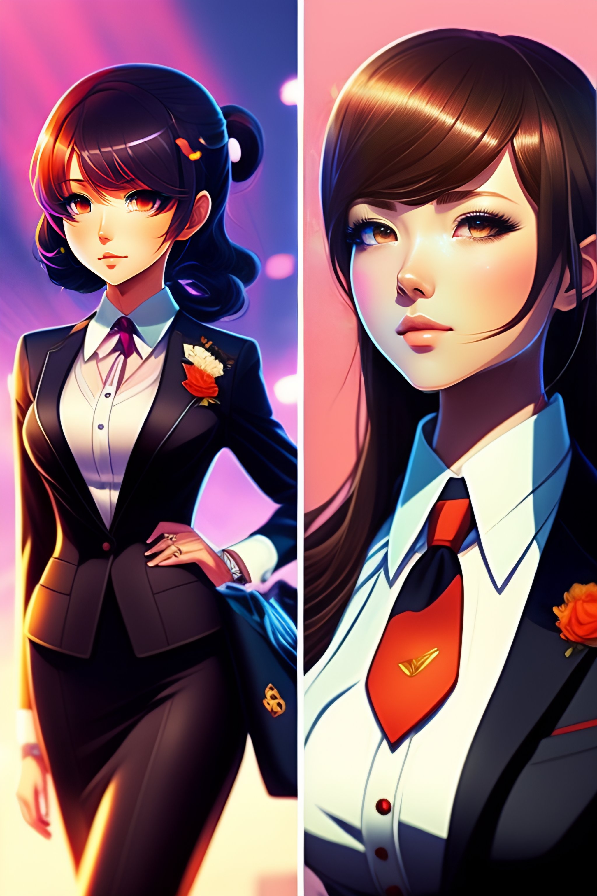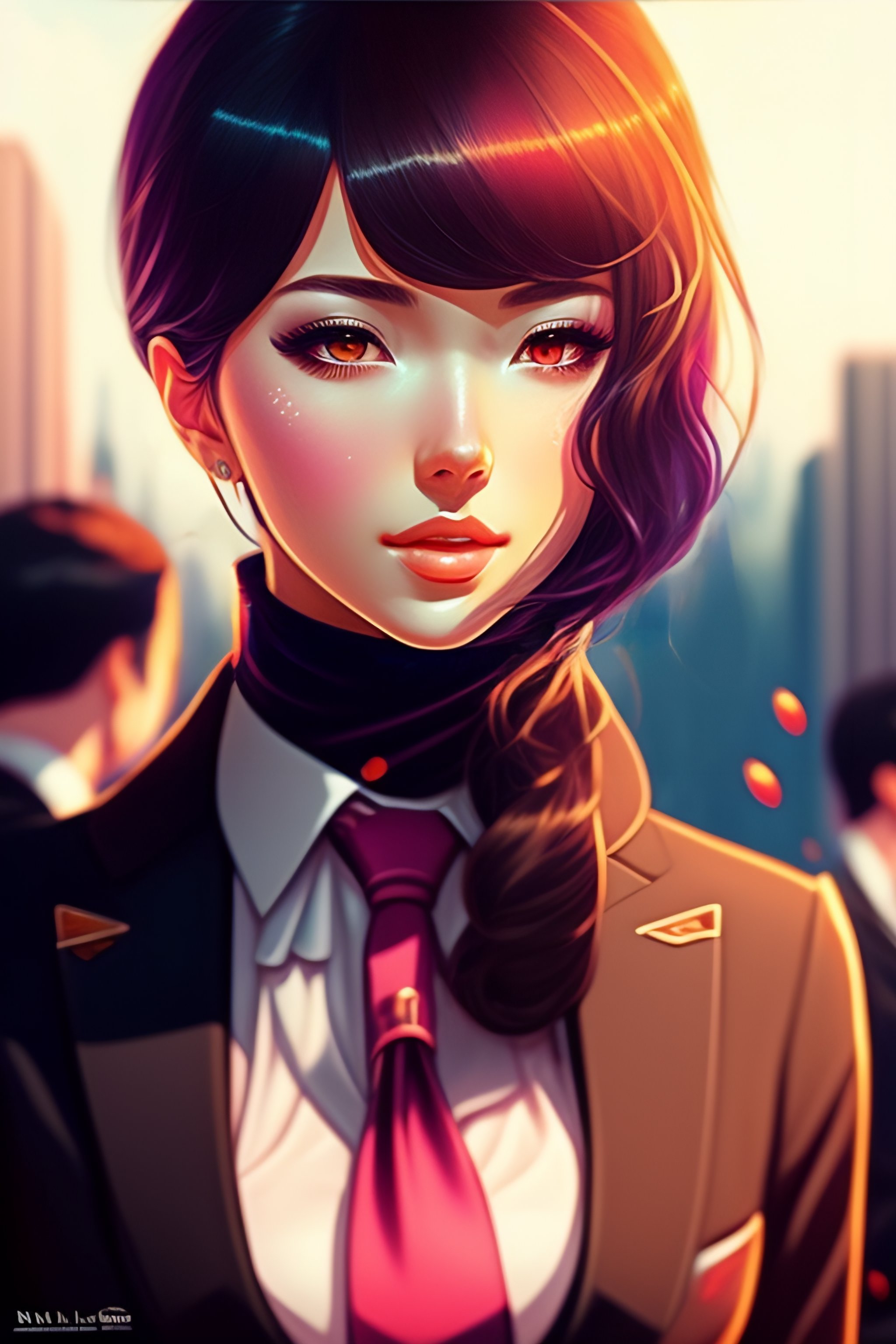 Woman suit and tie anime high quality, detailed, colorful, intricate, realistic cartoon, in style of ilya kuvshinov 4k