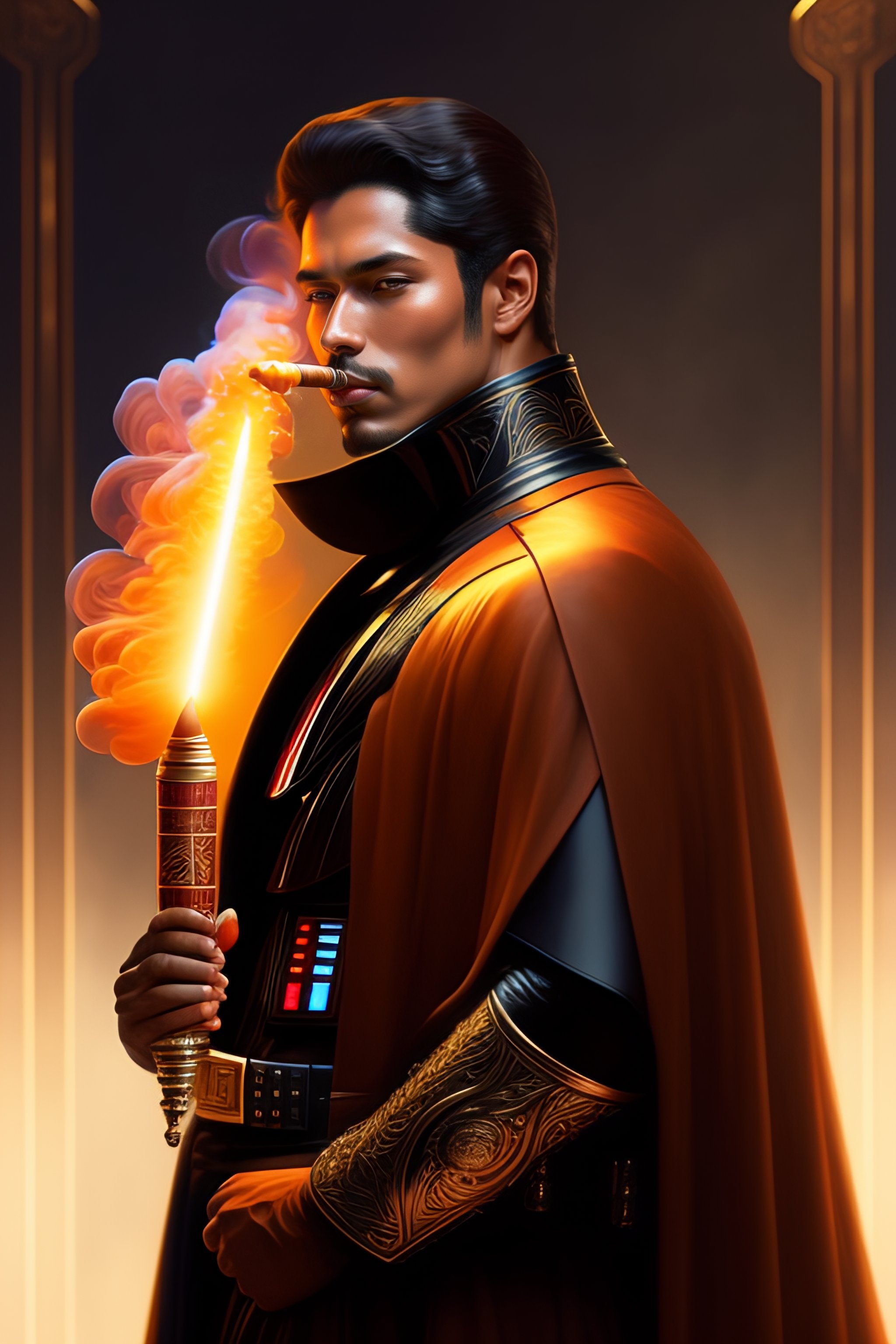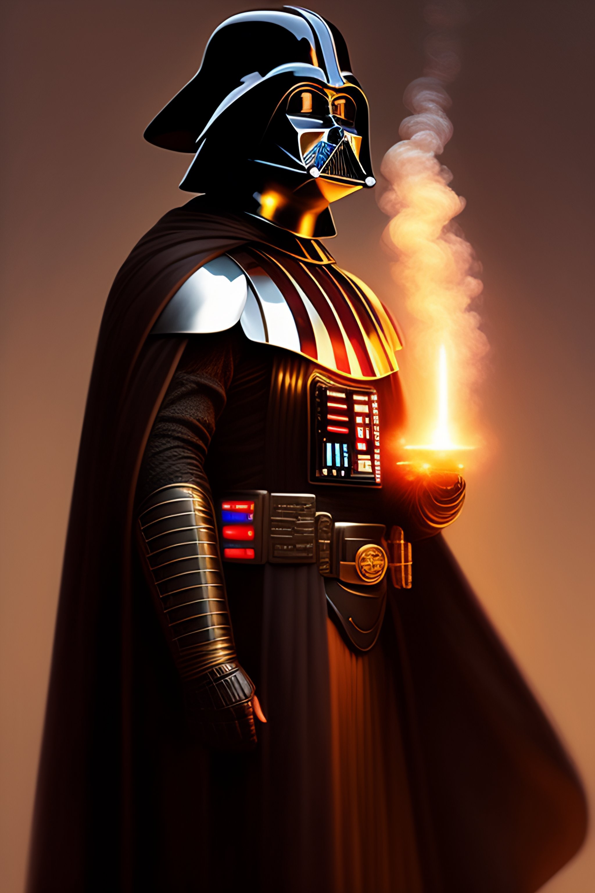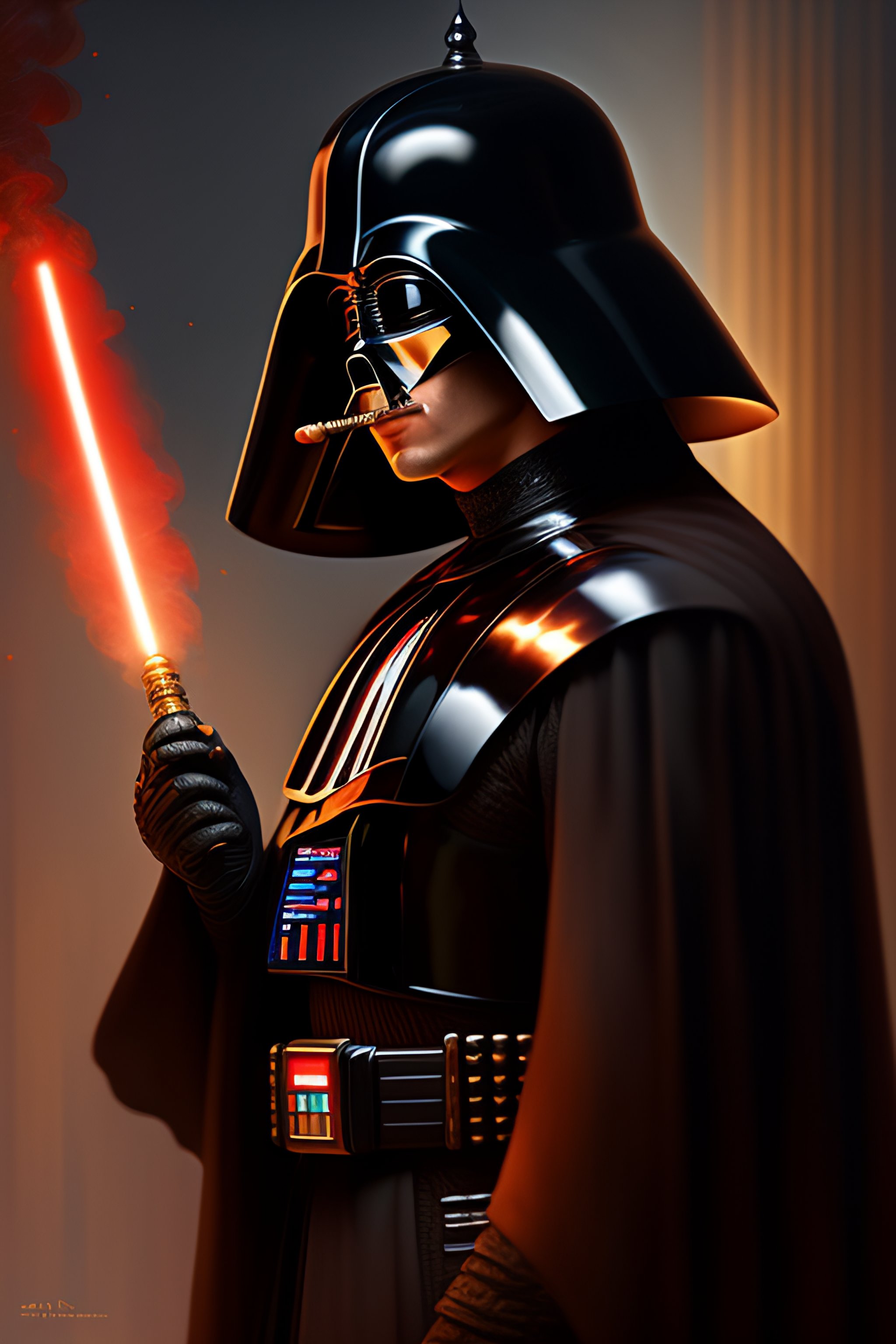 Darth vader smoking a cigar, intricate, elegant, highly detailed, digital painting, artstation, concept art, smooth, sharp focus, illustration, art by artgerm and greg rutkowski and alphonse mucha and william - adolphe bouguereau