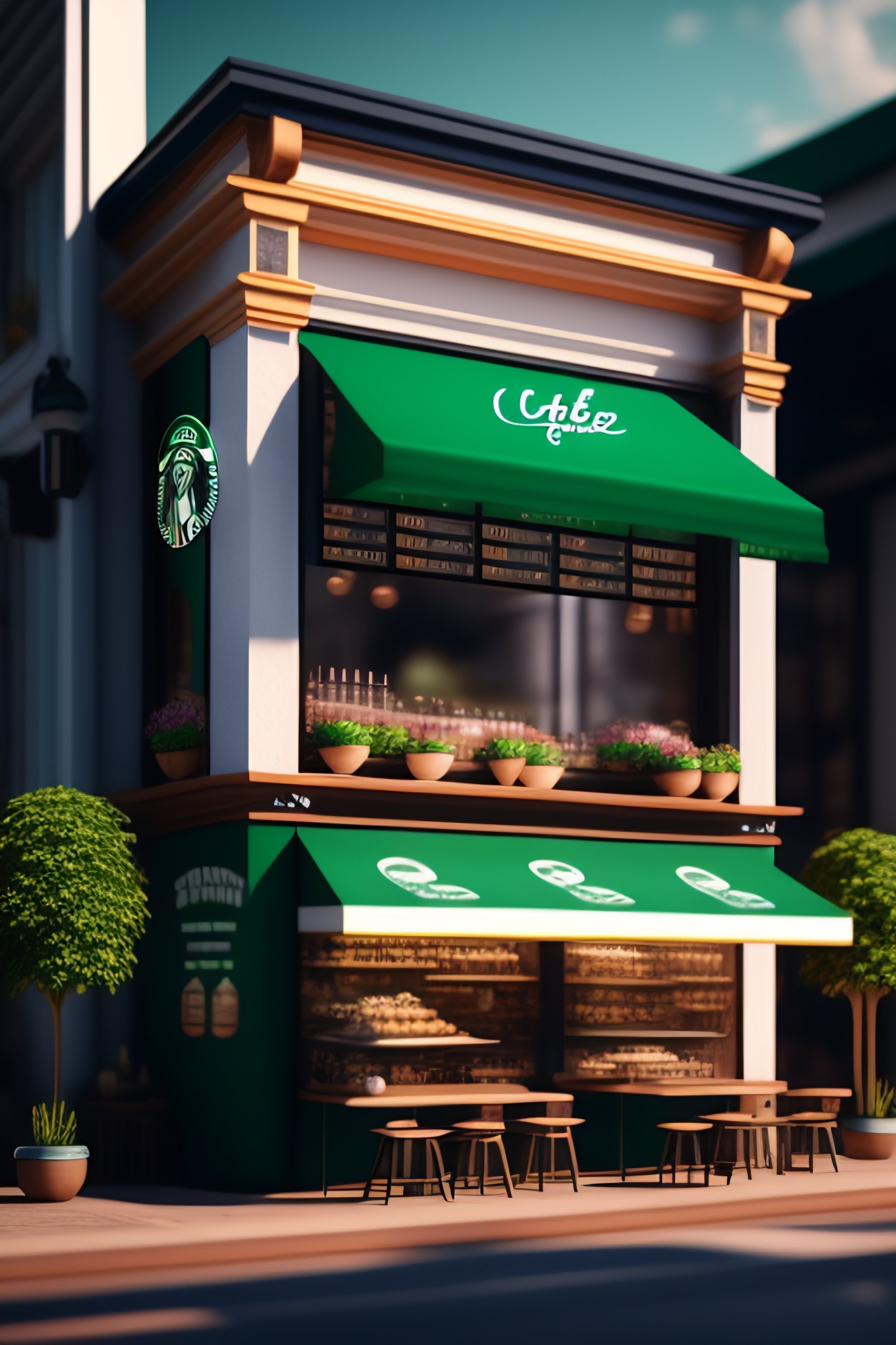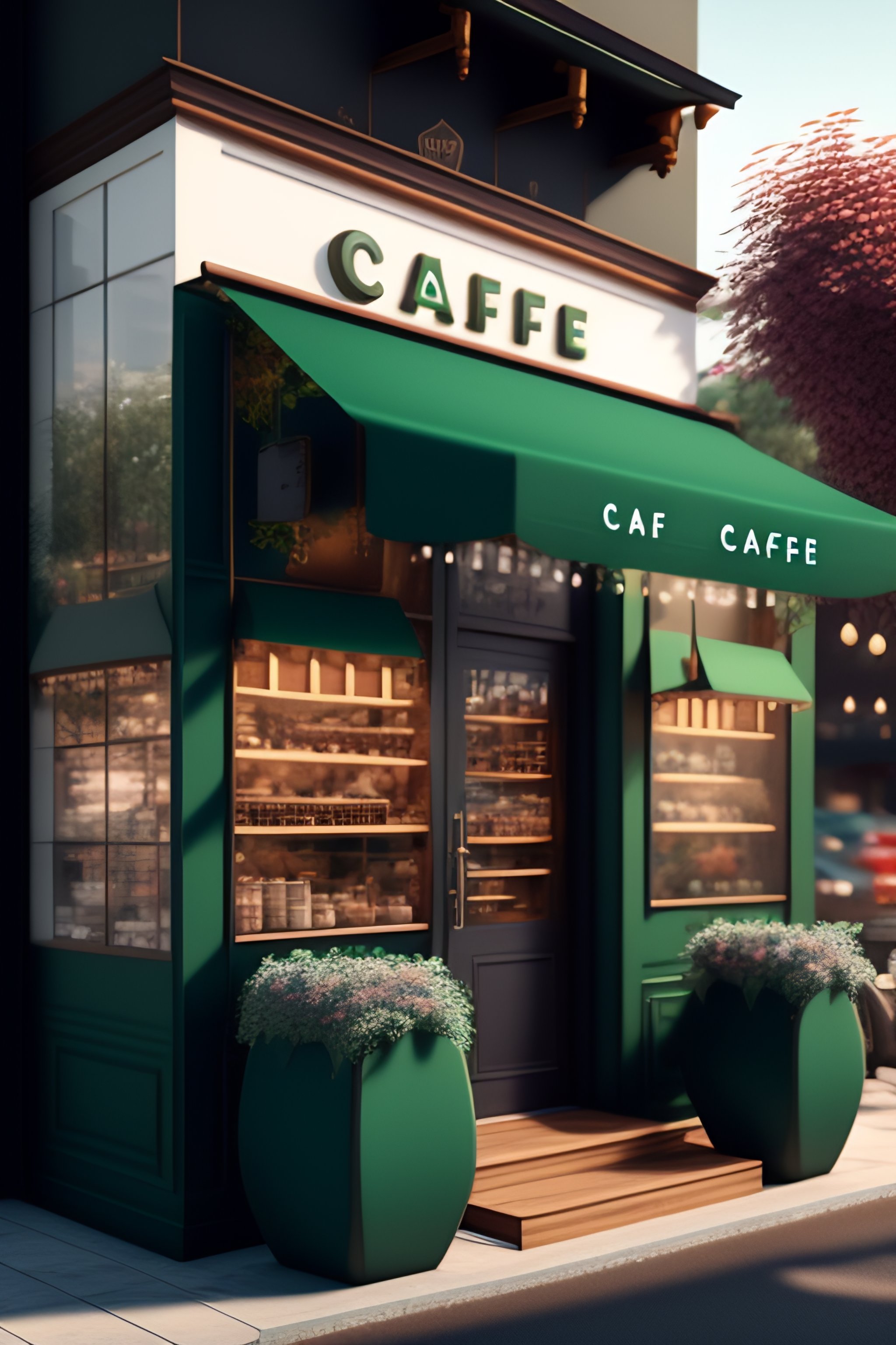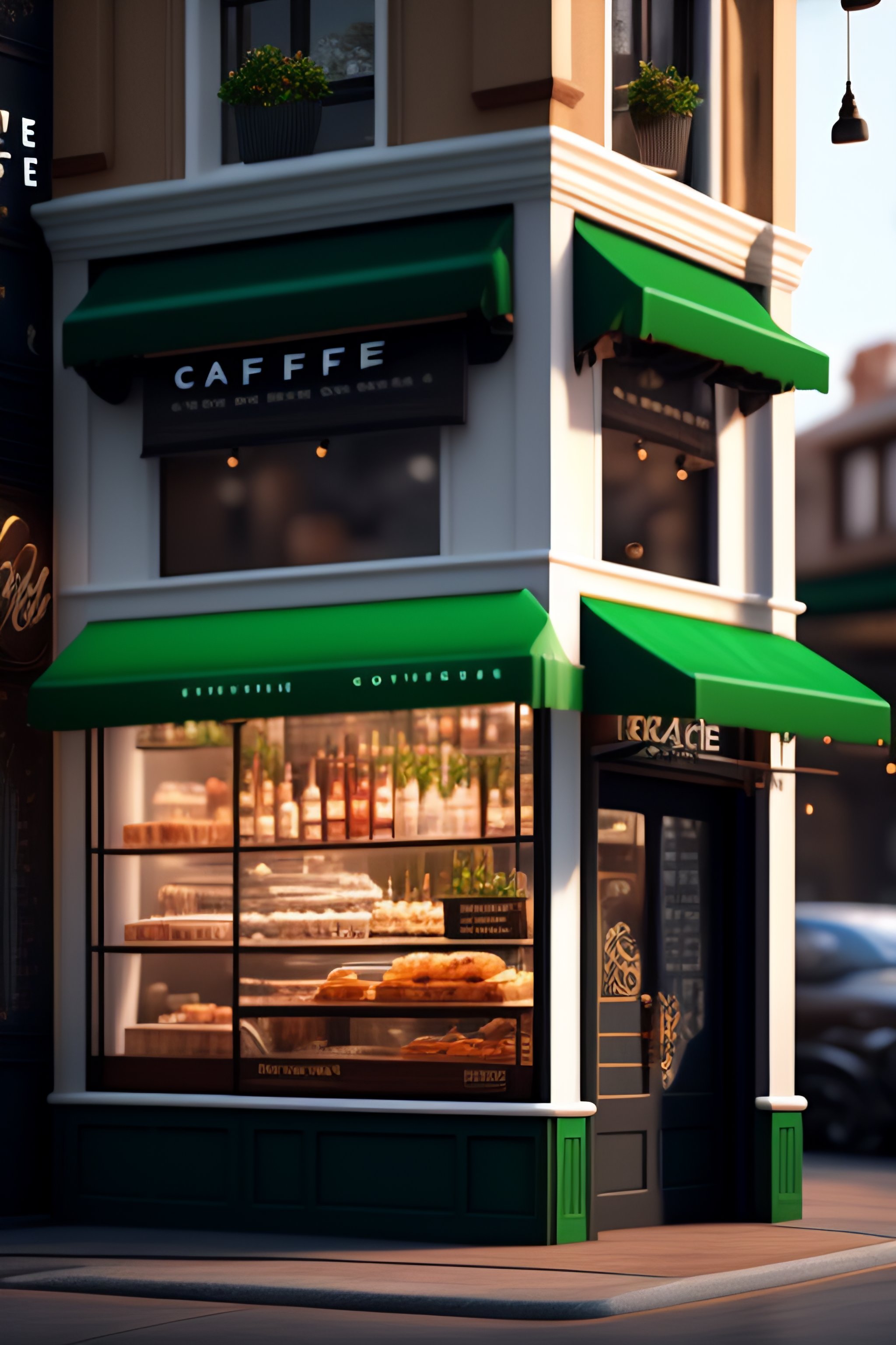 A cafe shop called "cafe box" look a like a starbucks exterior for sitcom tv show, hyperrealism, detailed textures, photorealistic 3d render, ultra-realism, ultra high pixel detail, cinematic, intricate, cinematic light, concept art, illustration, art station, unreal engine 8 k