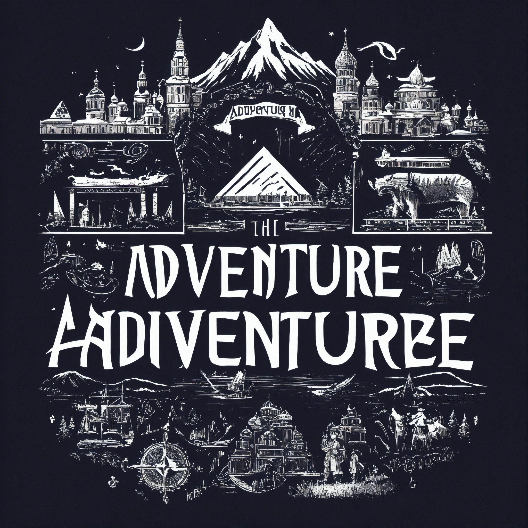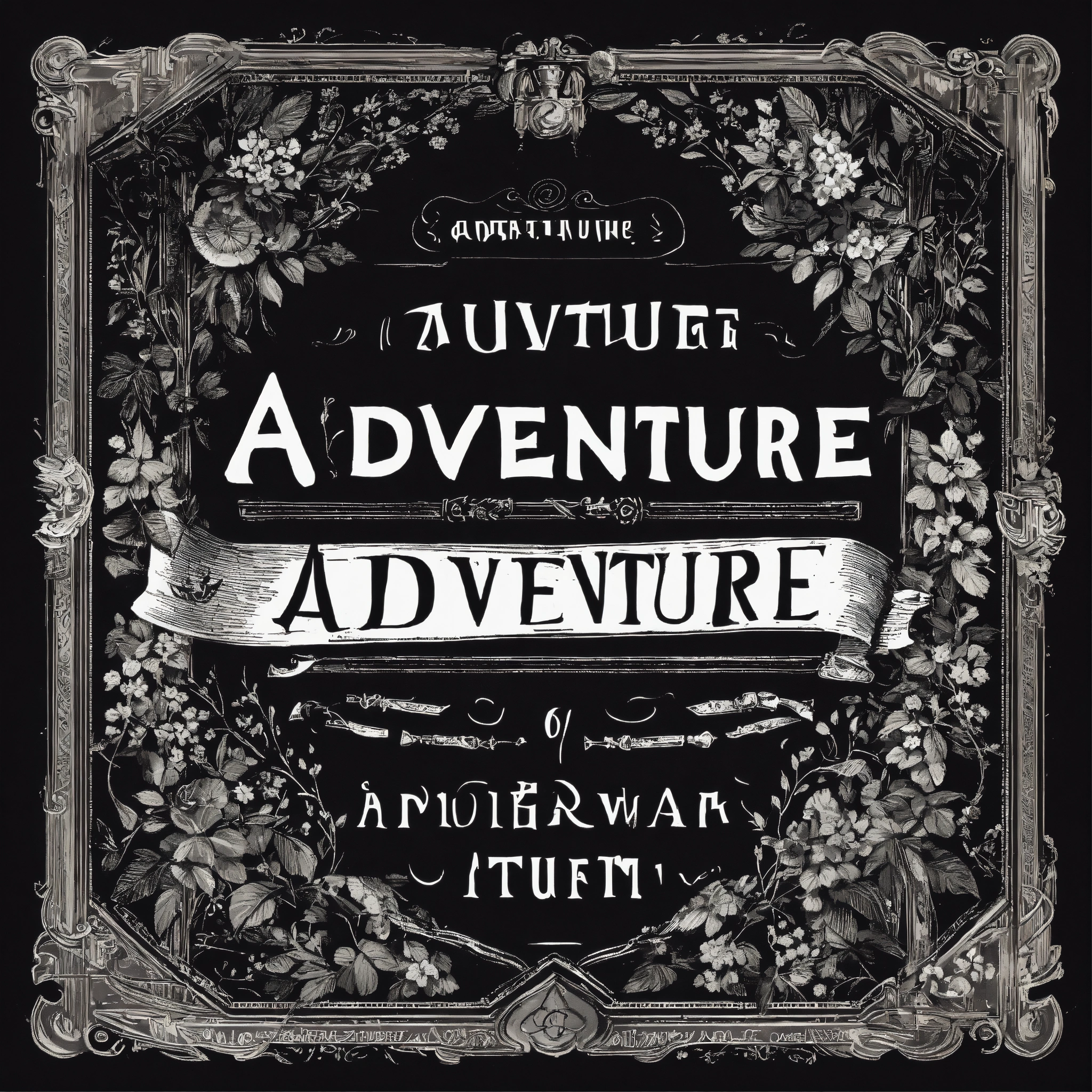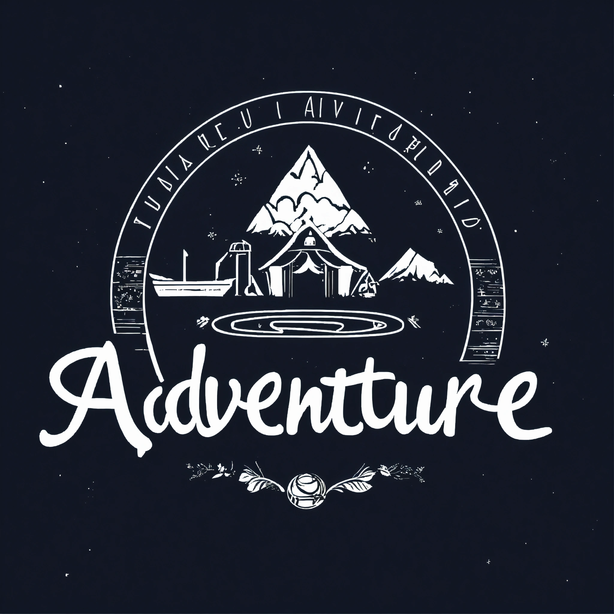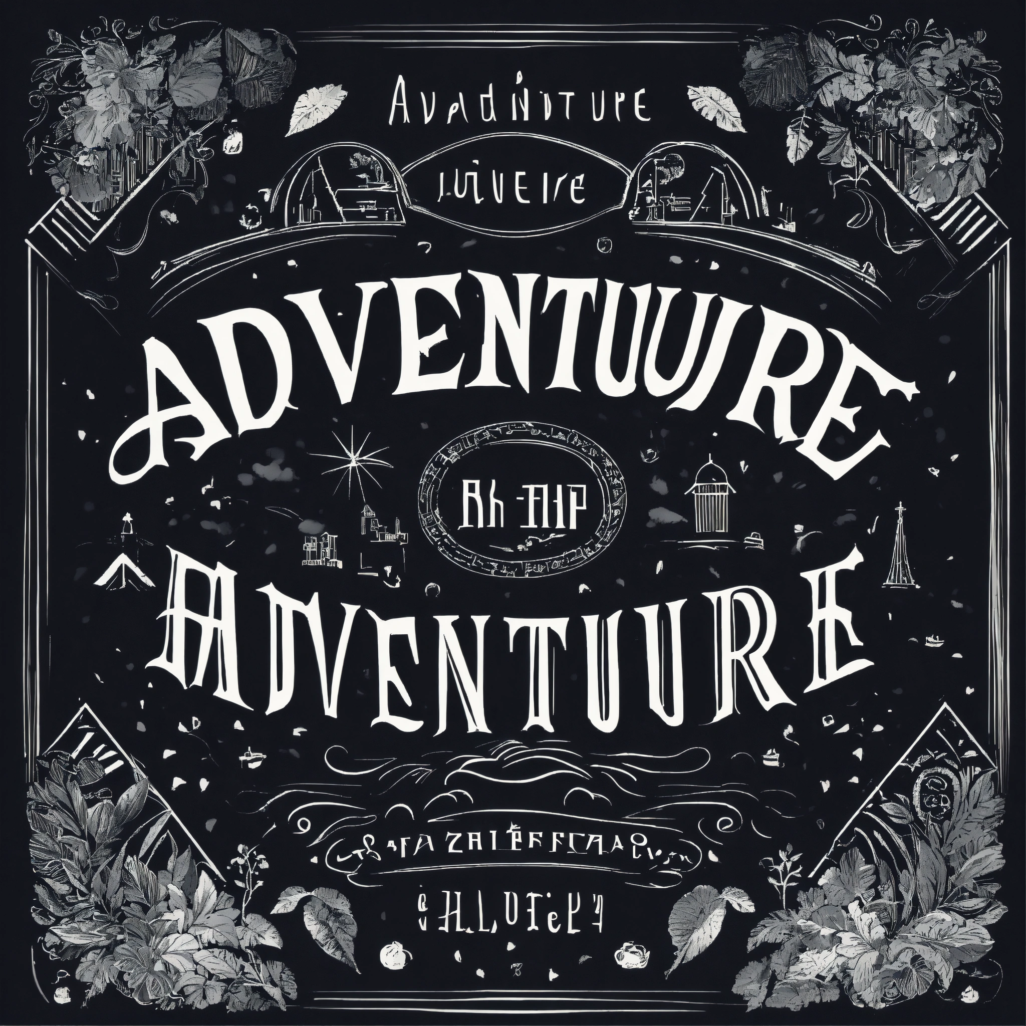 The picture "adventure" in white font on a dark background, the inscription adventure should be in russian