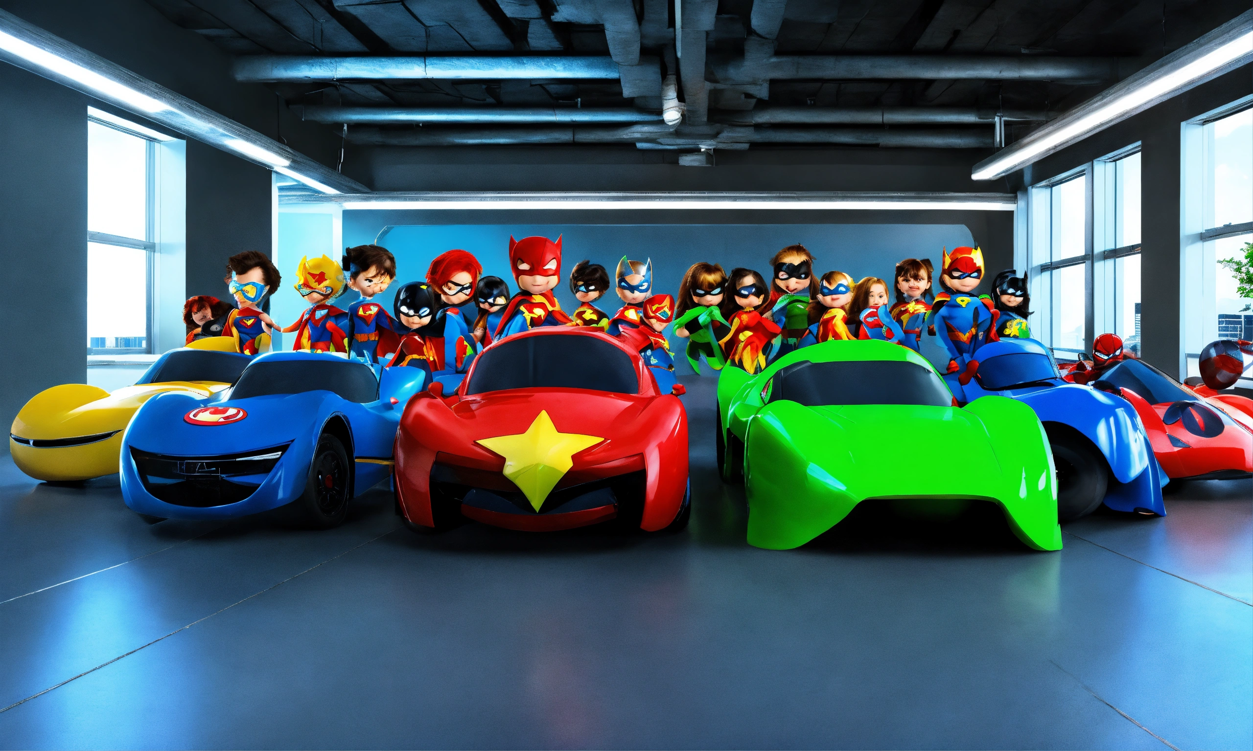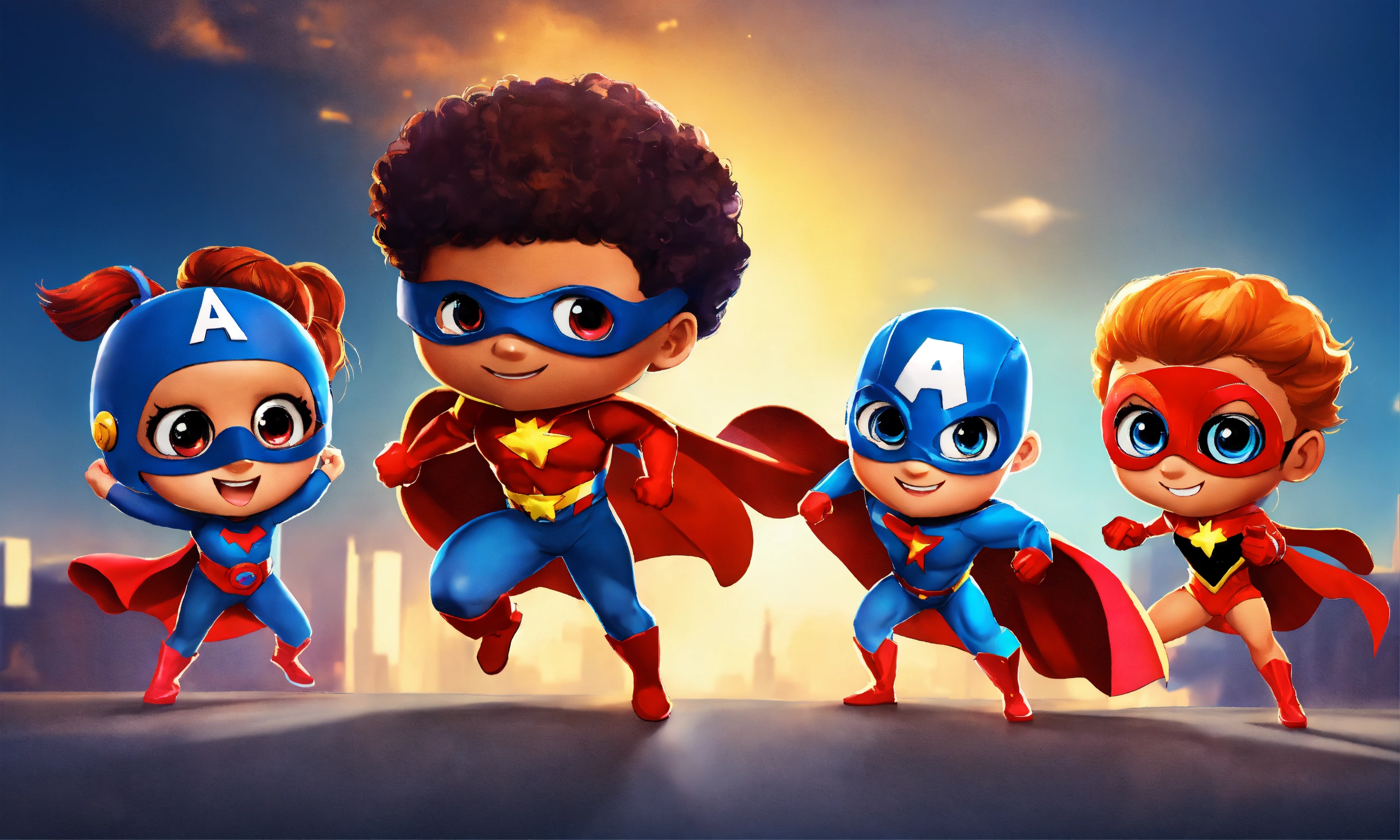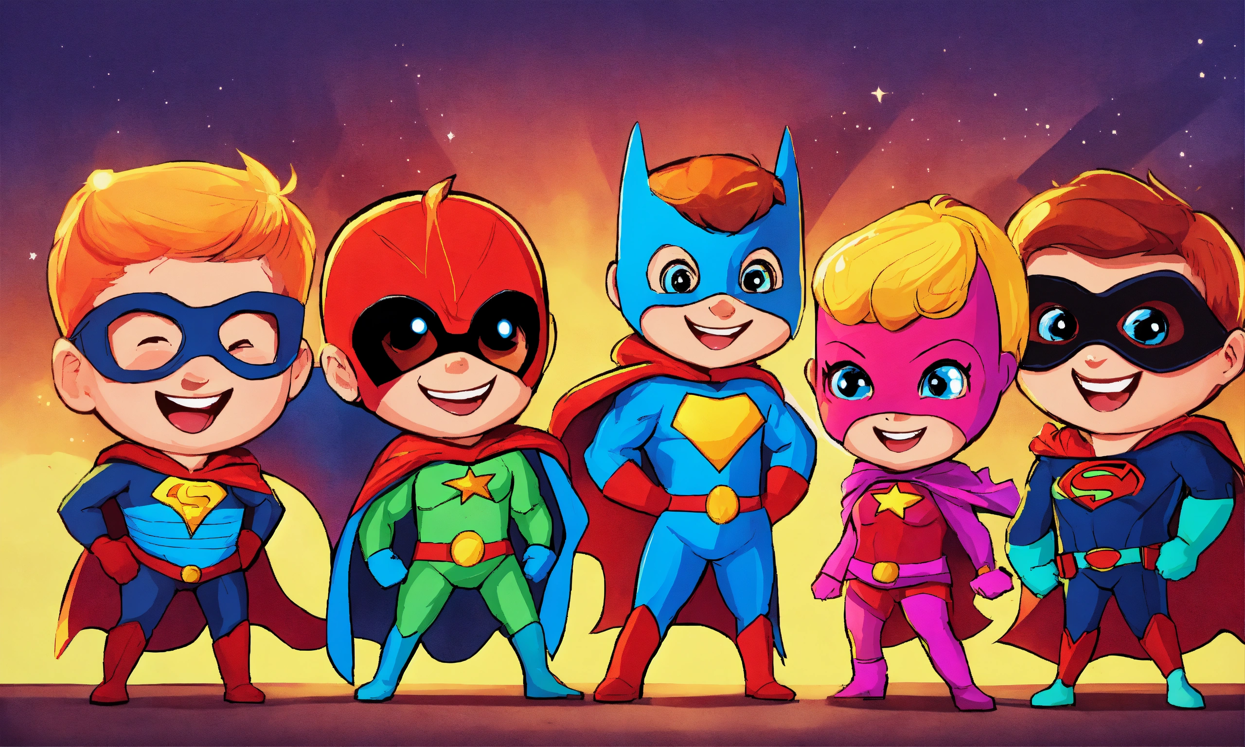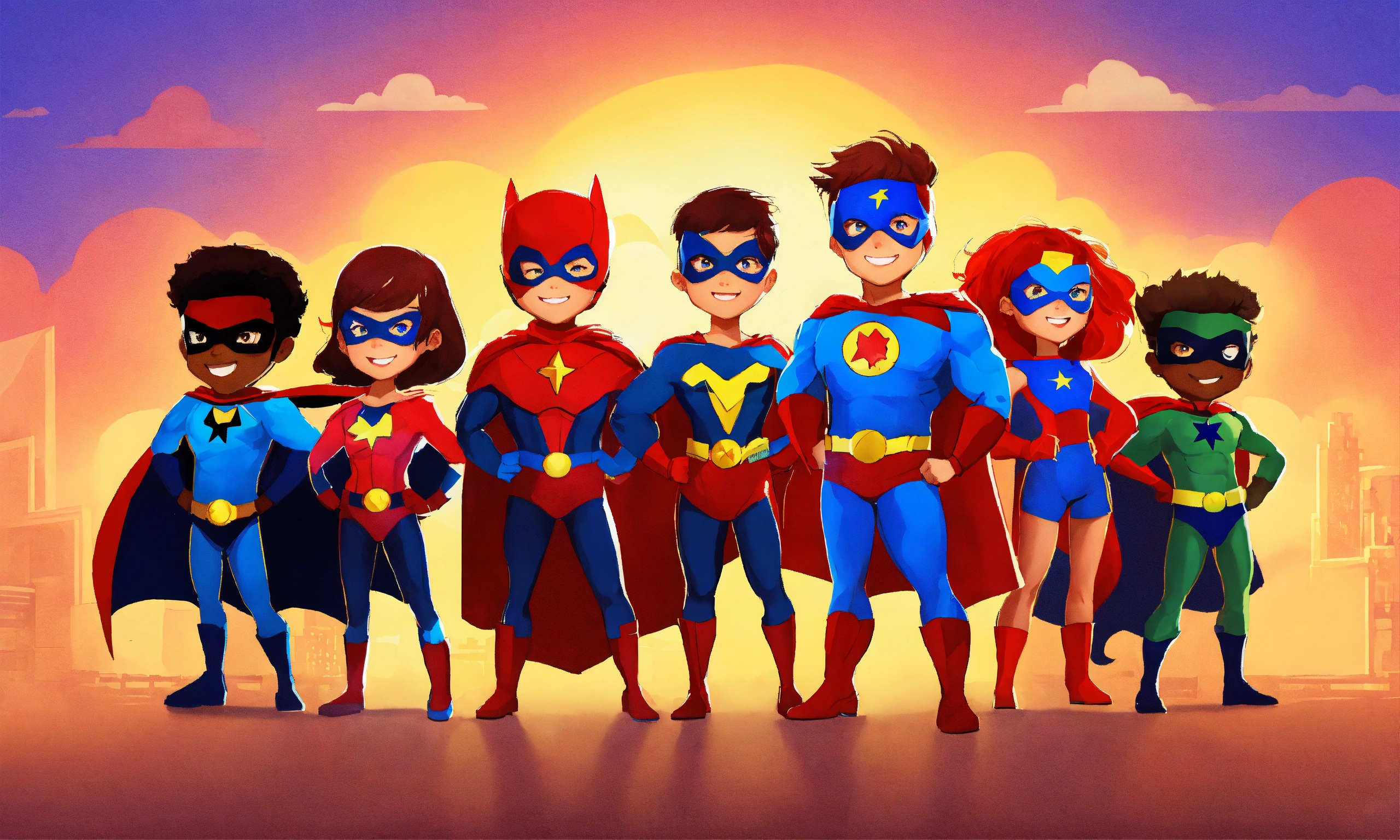 Group of fun kids superhero