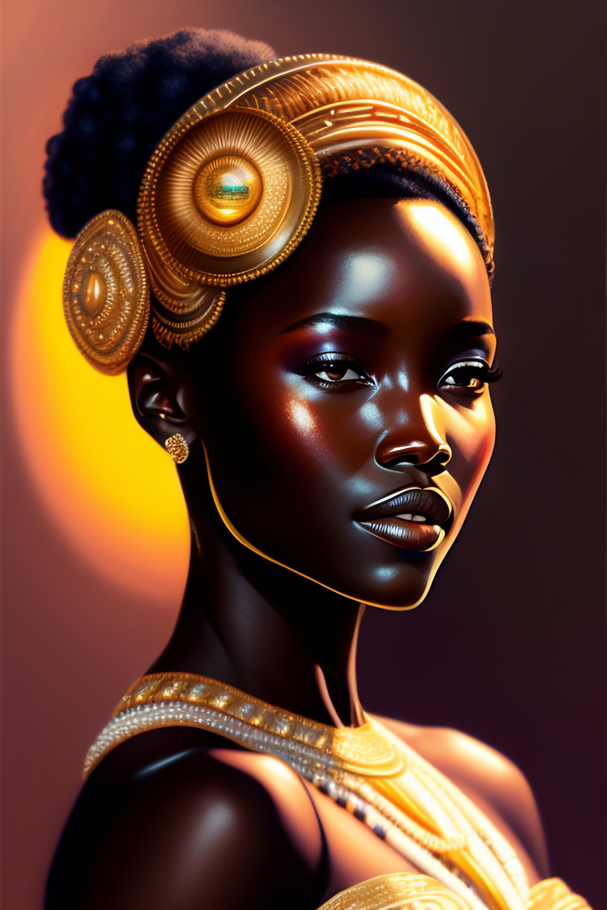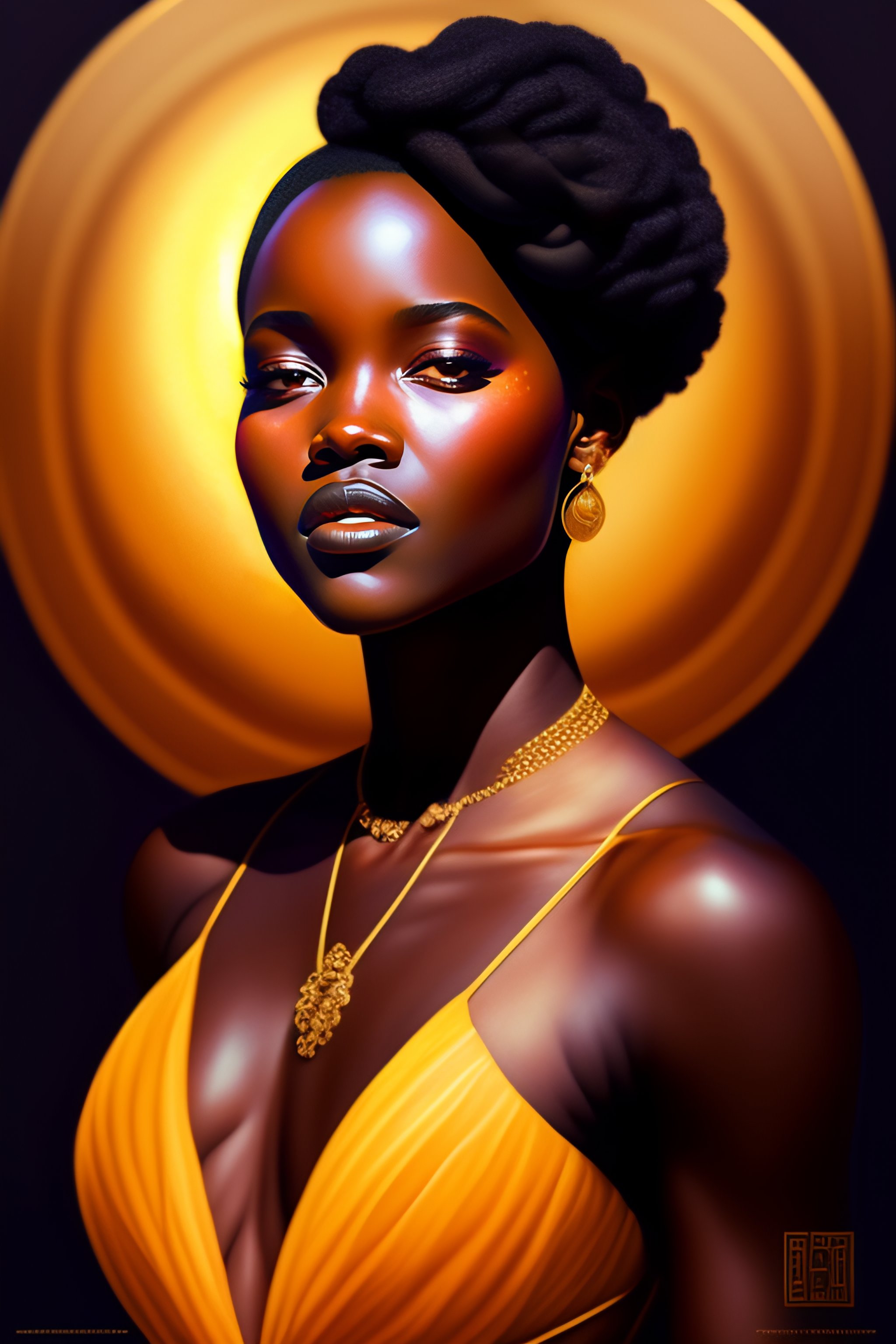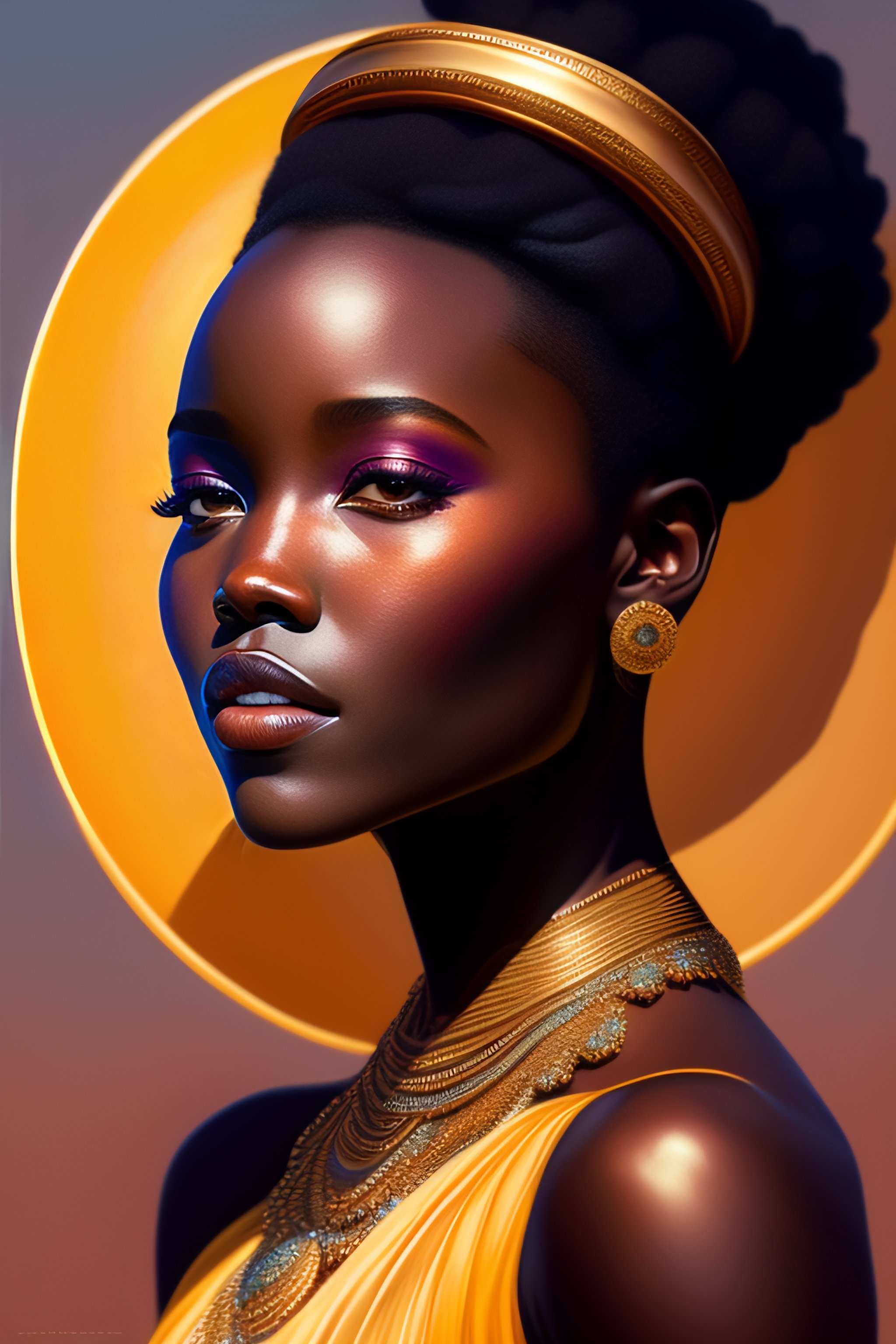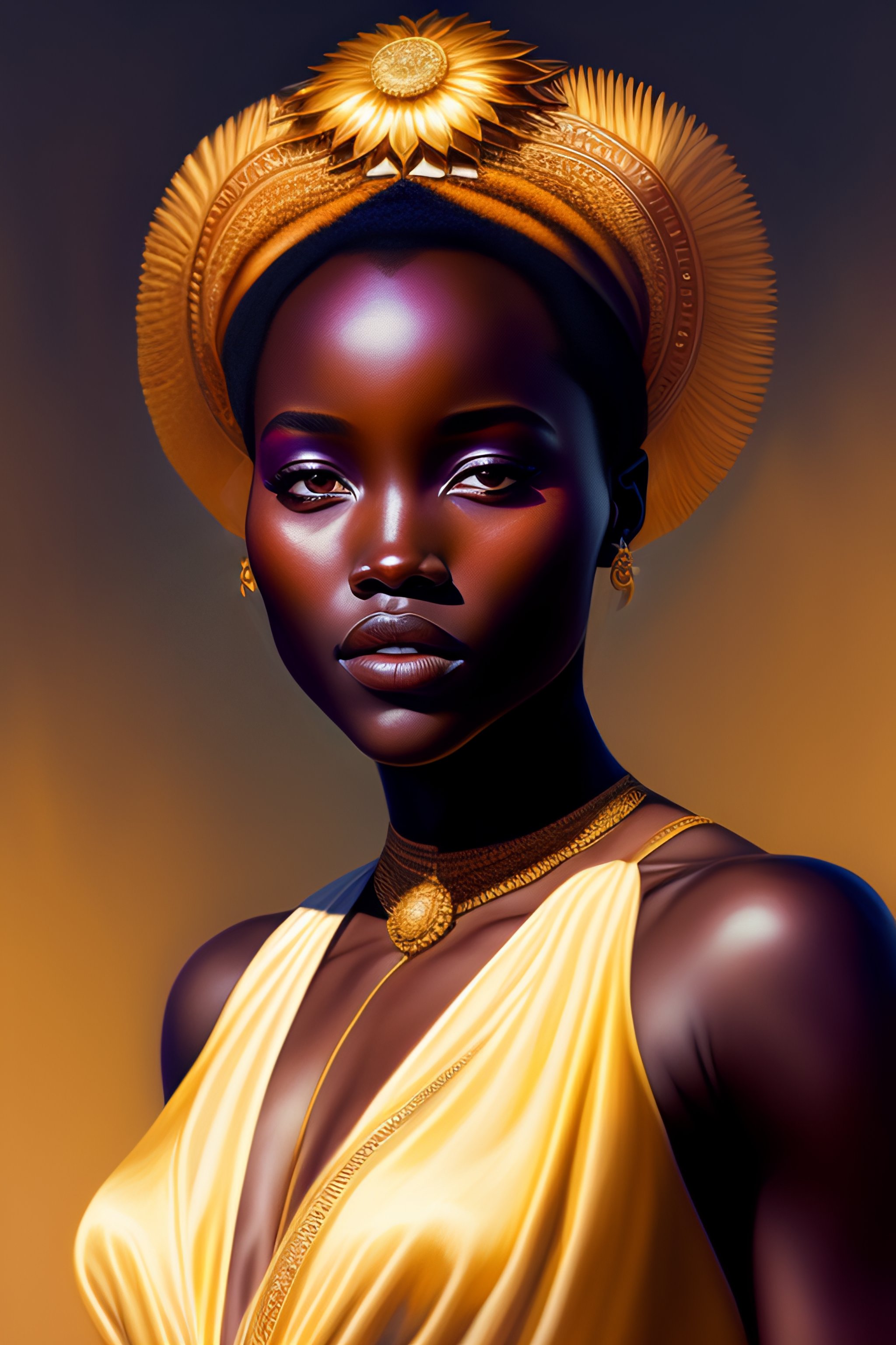 Sun goddess, lupita nyong'o, shine sun, full body, intricate, elegant, highly detailed, digital painting, artstation, concept art, smooth, sharp focus, illustration, art by artgerm and greg rutkowski and alphonse mucha and william - adolphe bouguereau and stephanie law, small chest, (curly hair)