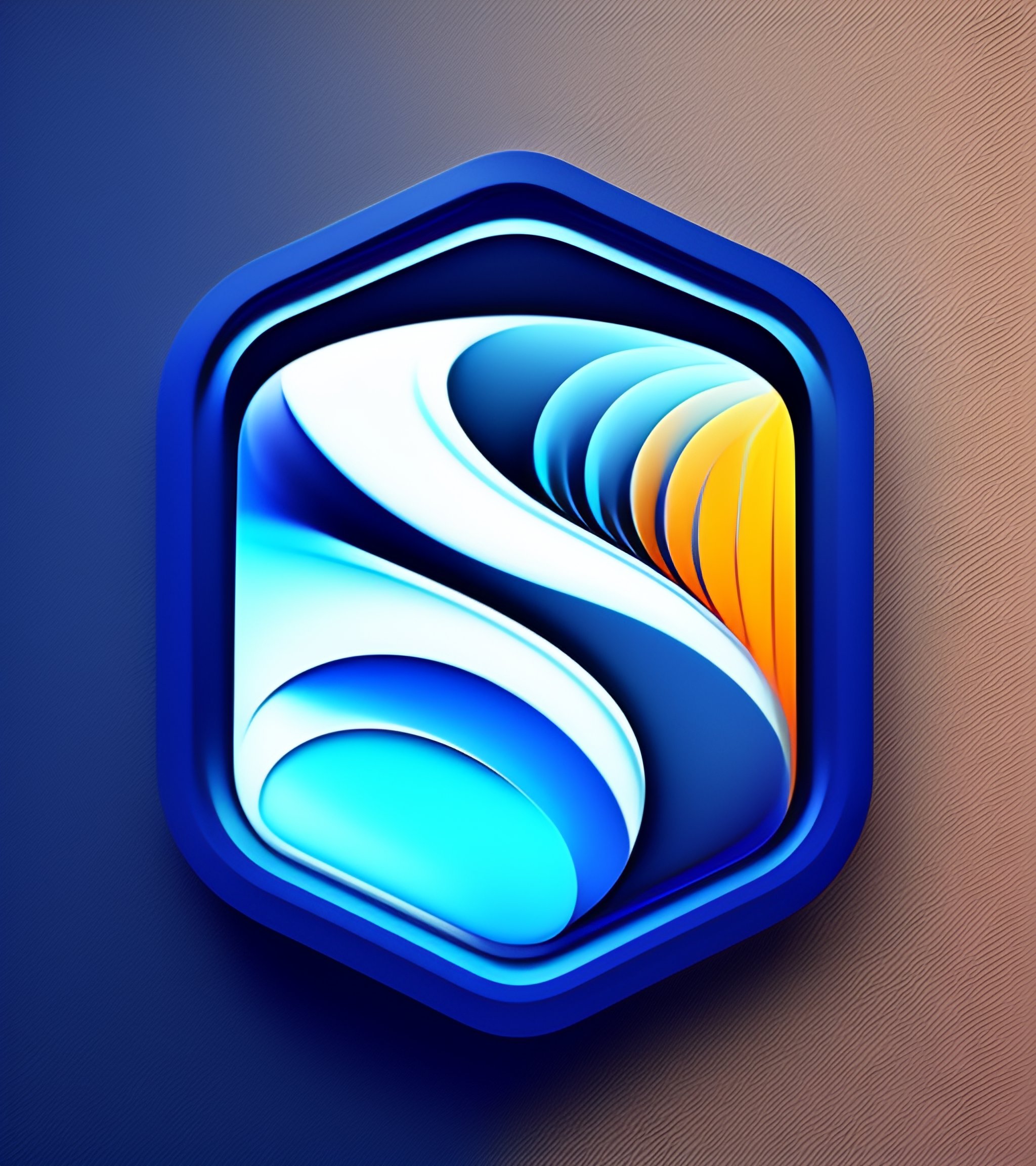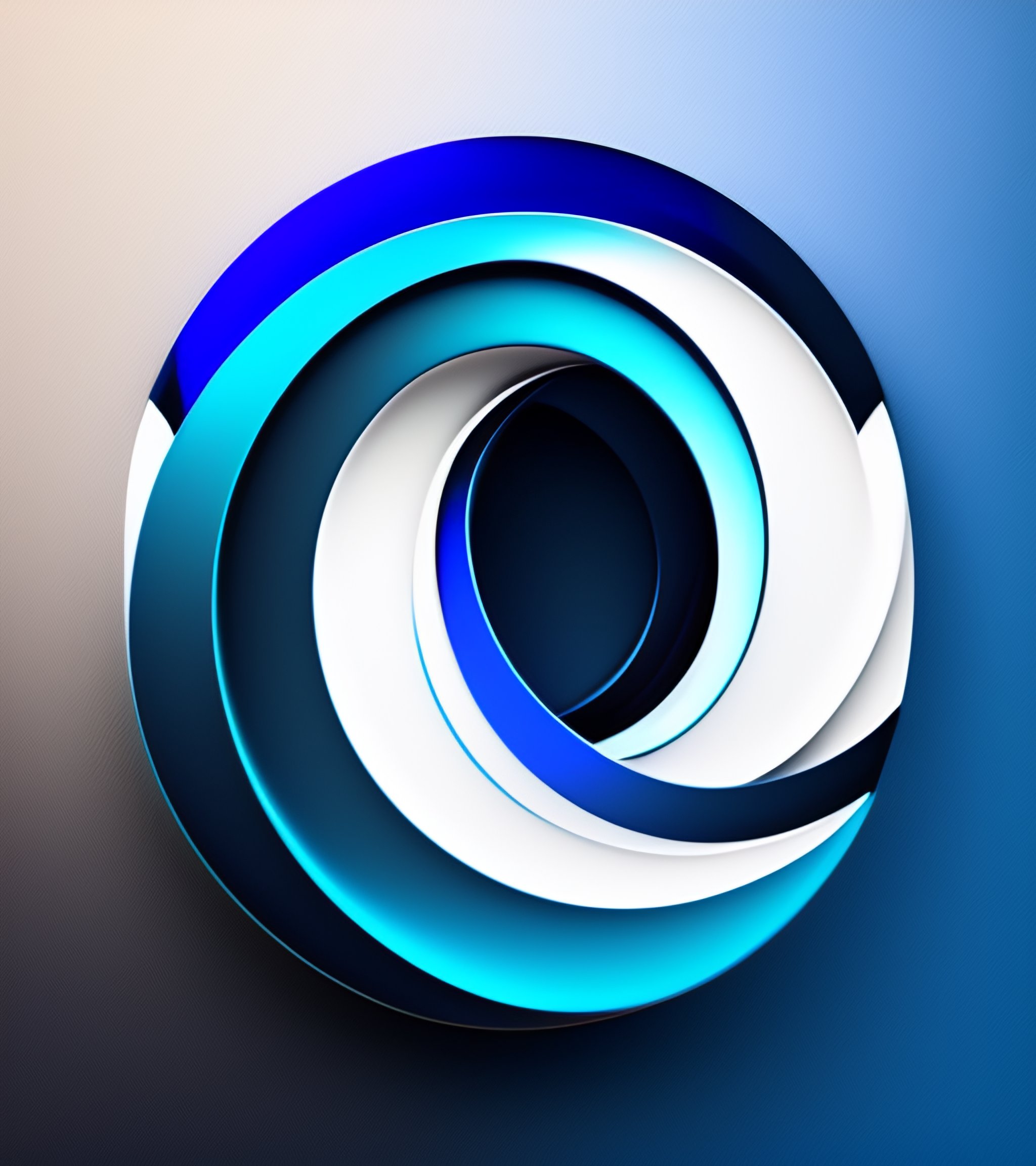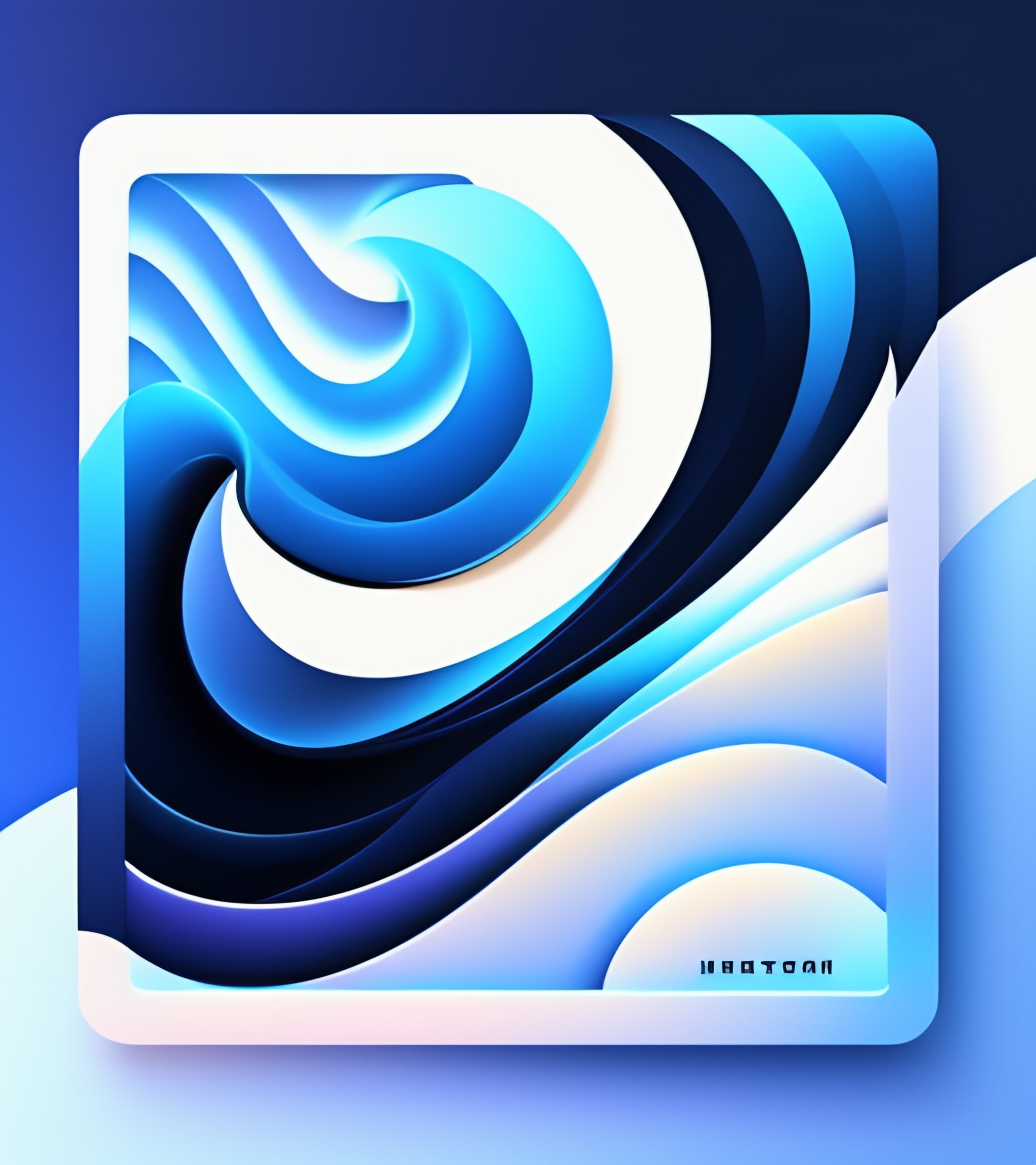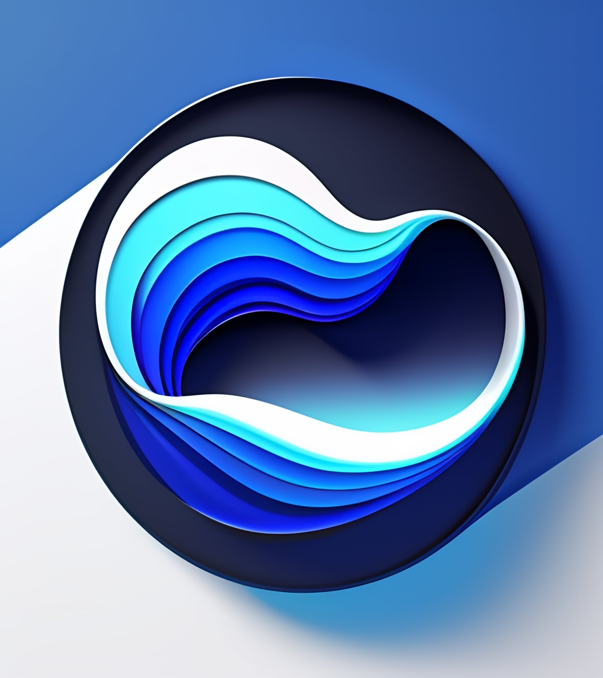 Flat vector design, minimal, simple bold logo in blue, black, white colors, cybernetic wave, fluid, geometric, symmetry