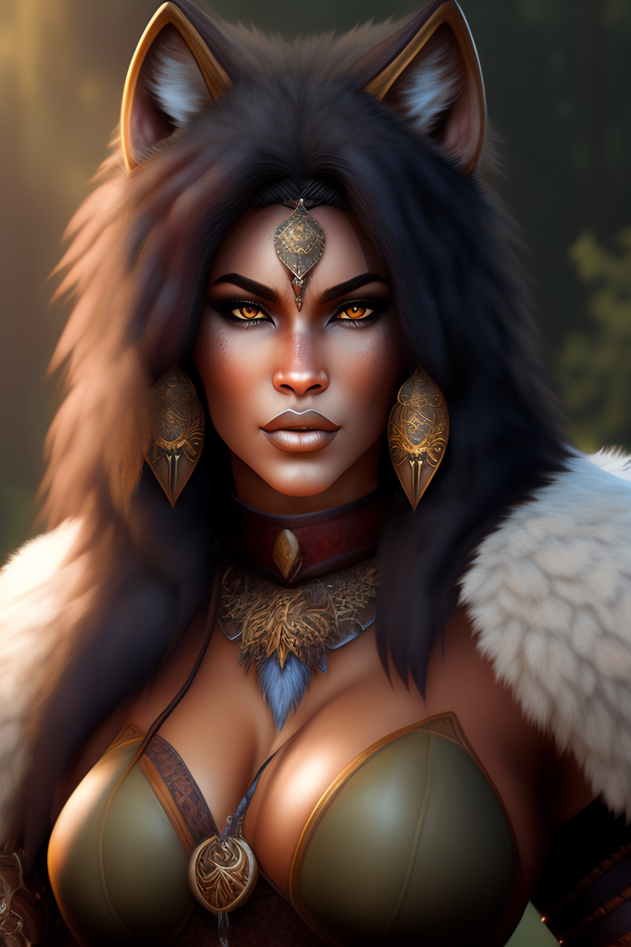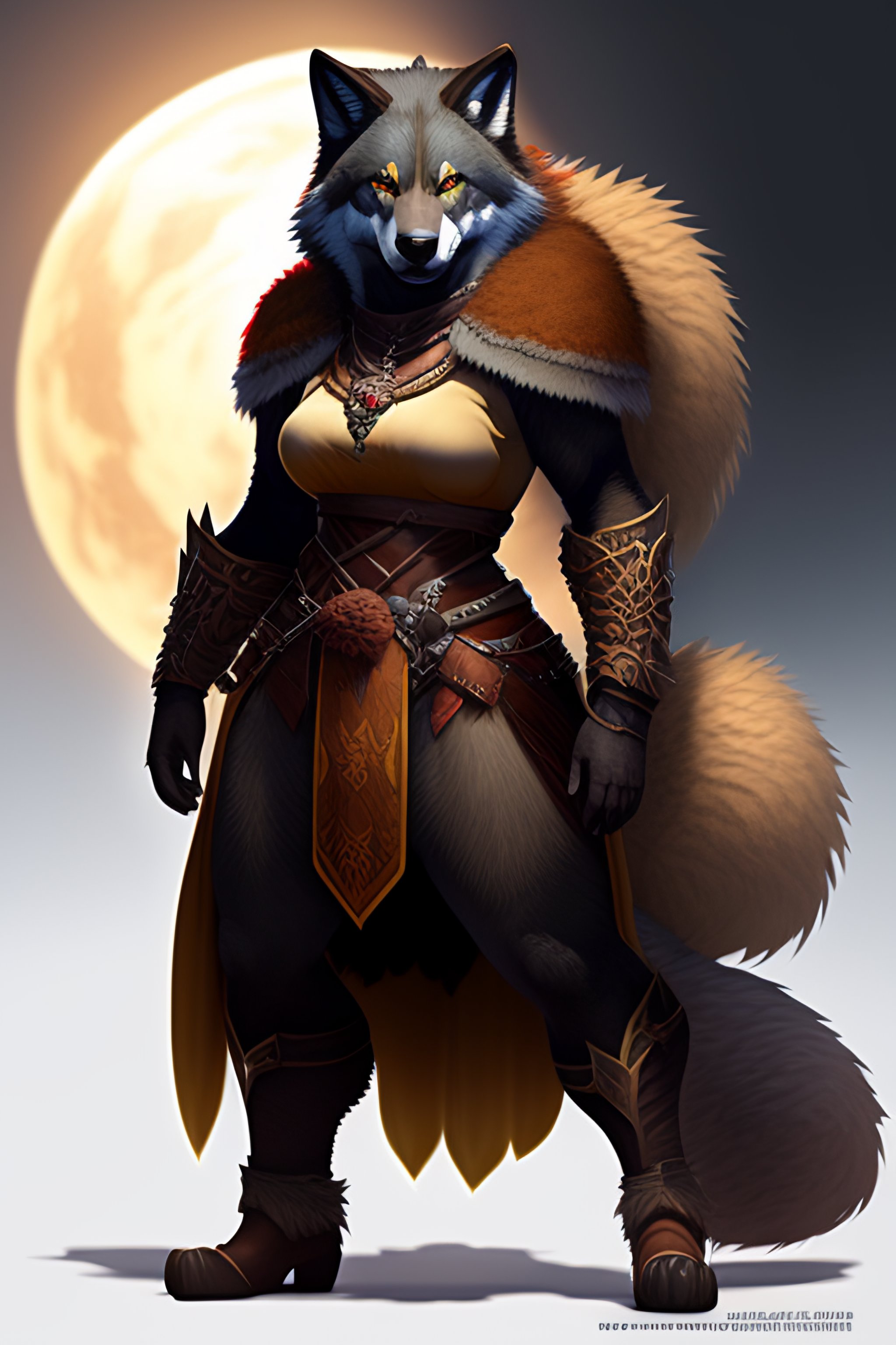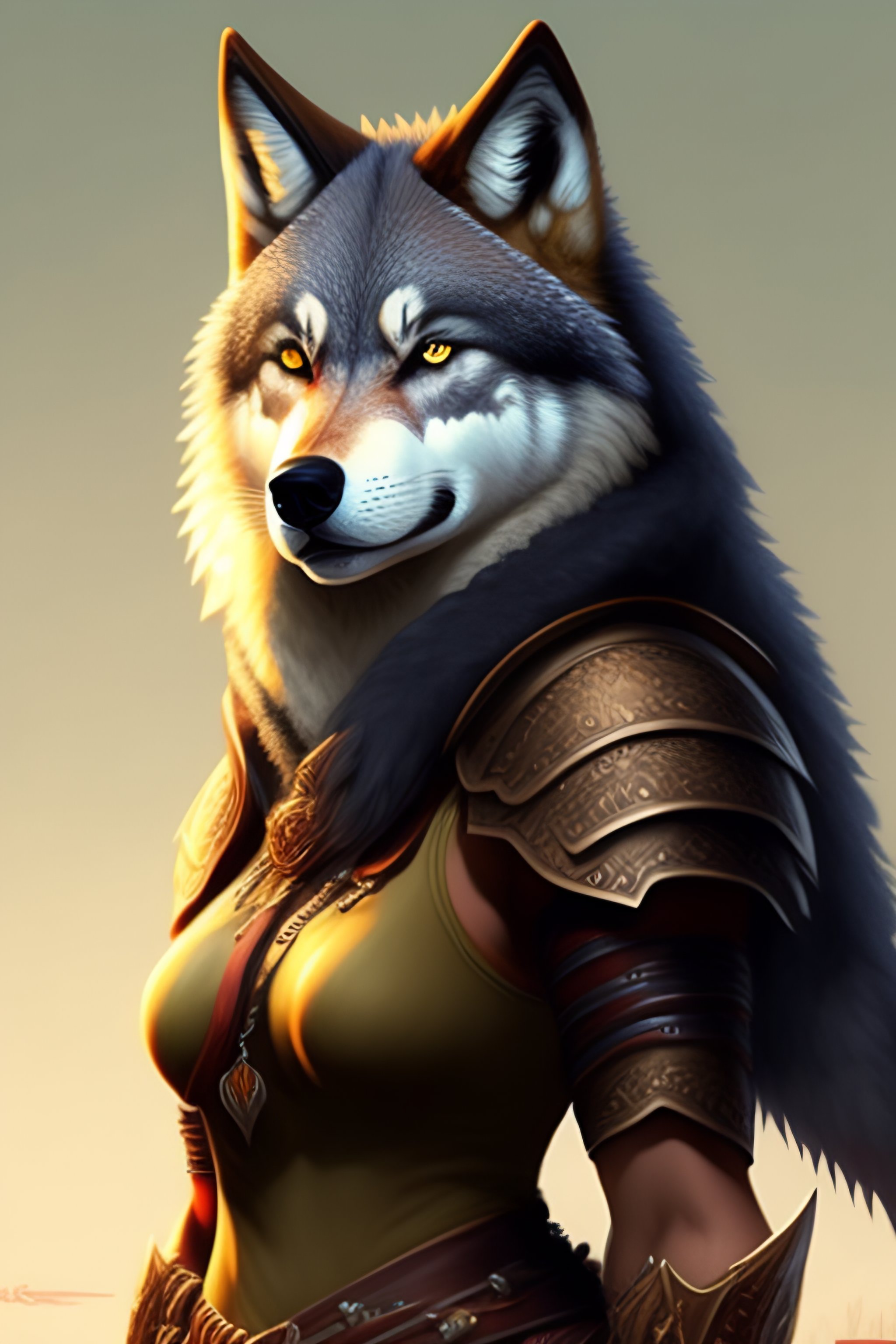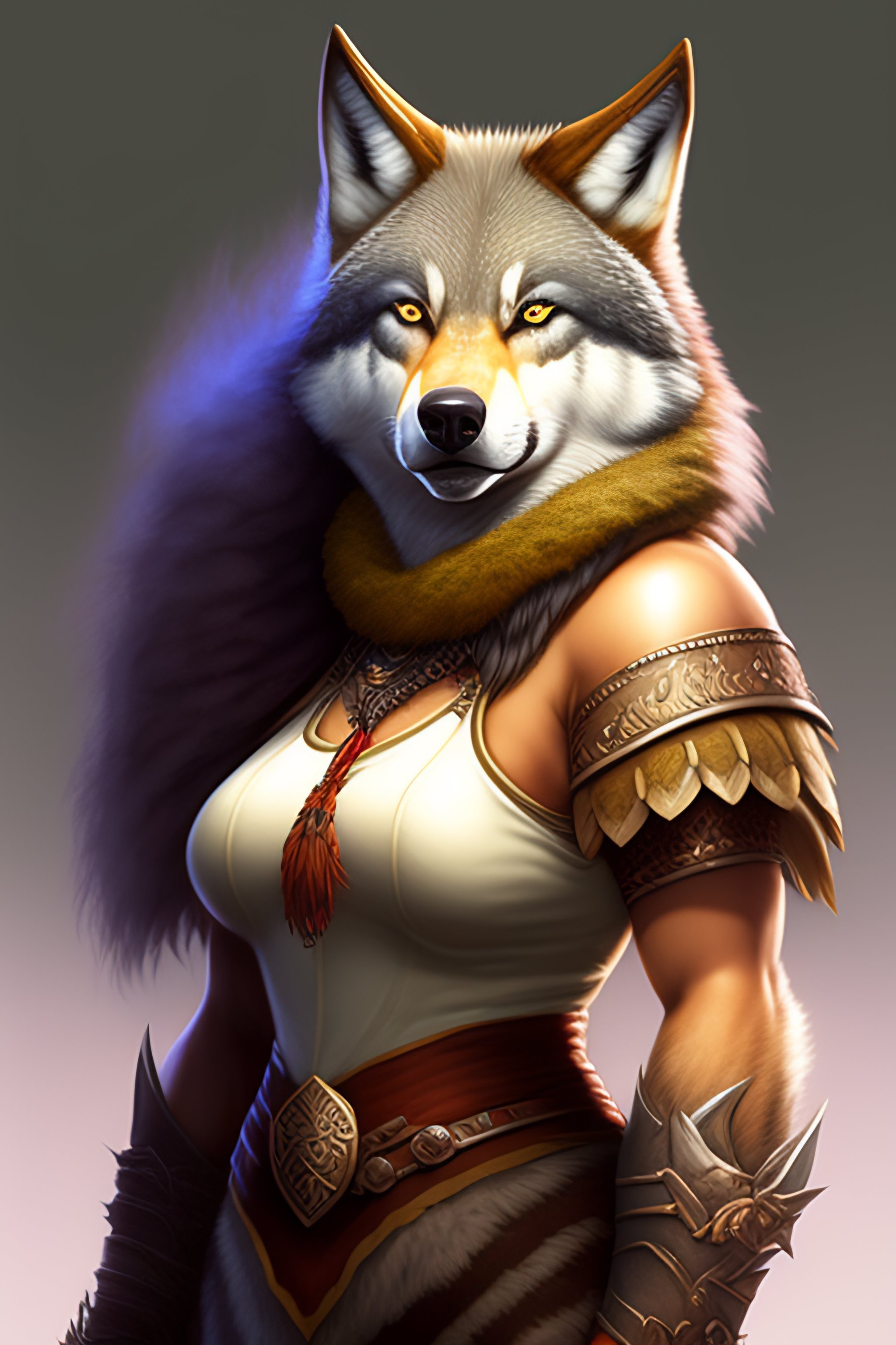 Wolf woman, anthro furry cute, plus size, wolf female warrior, werewolf, worgen, character design, fluffy, painted in the style of james gurney, concept art