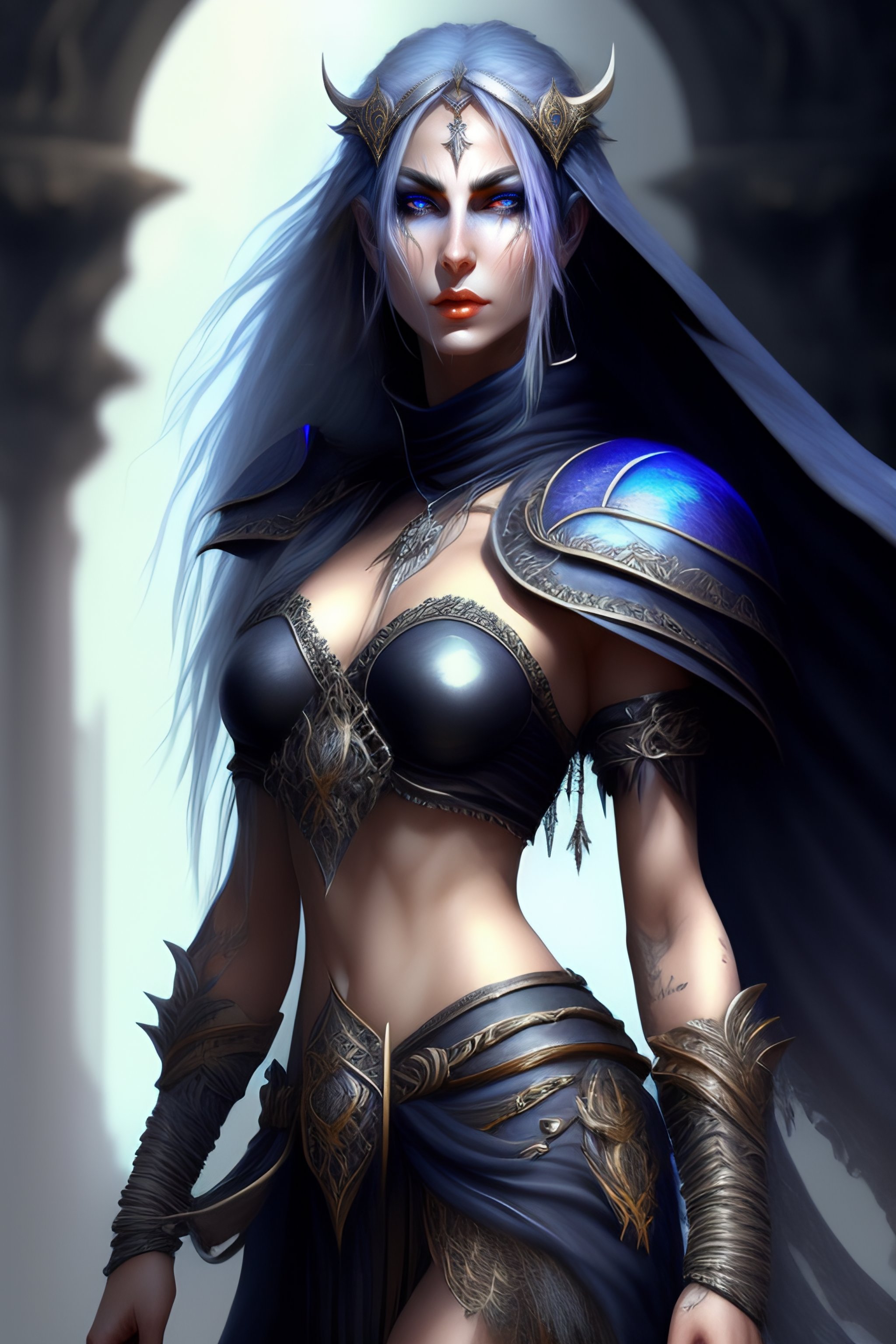 Full body, drow, dark elf, luis royo, concept art, character design, trending on artstation, epic fantasy, 8 k, beautiful lighting, painting