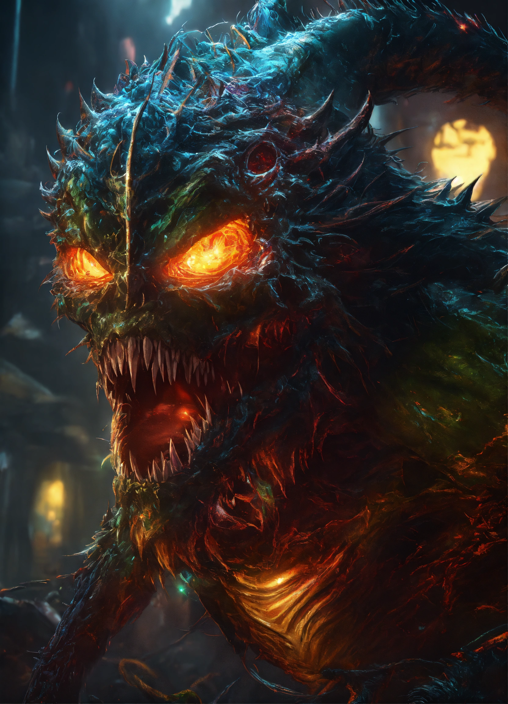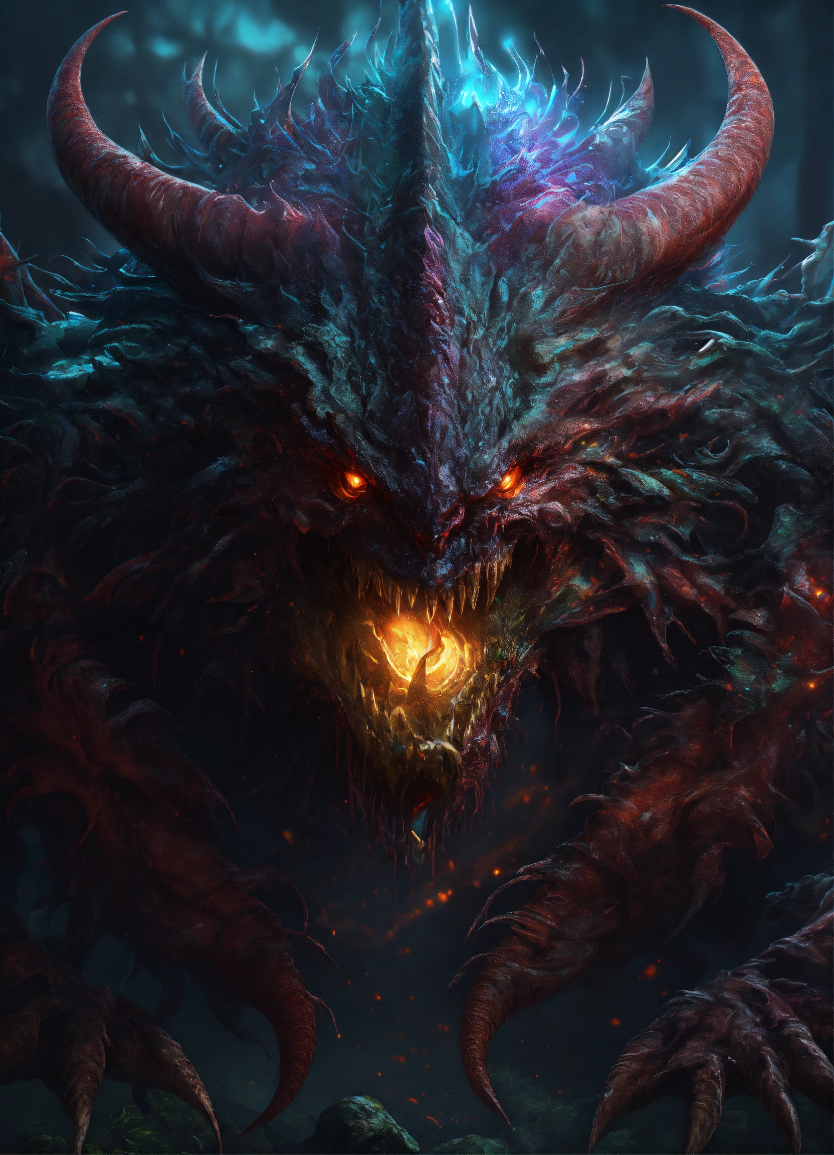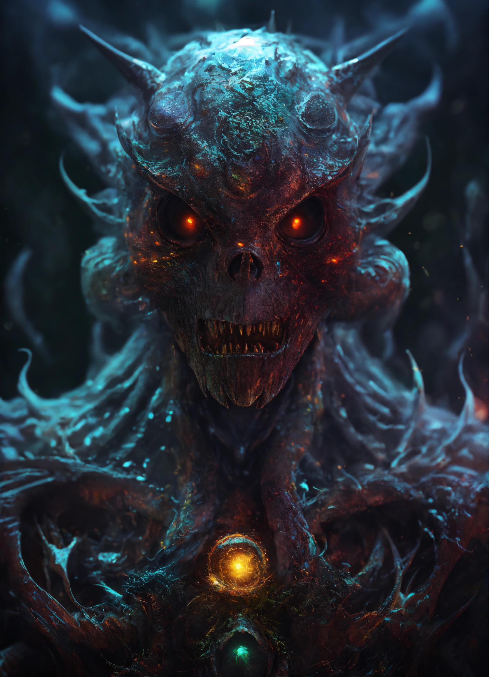 Dark monsters, digital painting, digital illustration, extreme detail, digital art, 4k, ultra hd, holographic, hyperdetailed, metaplasm, air brush, unreal engine