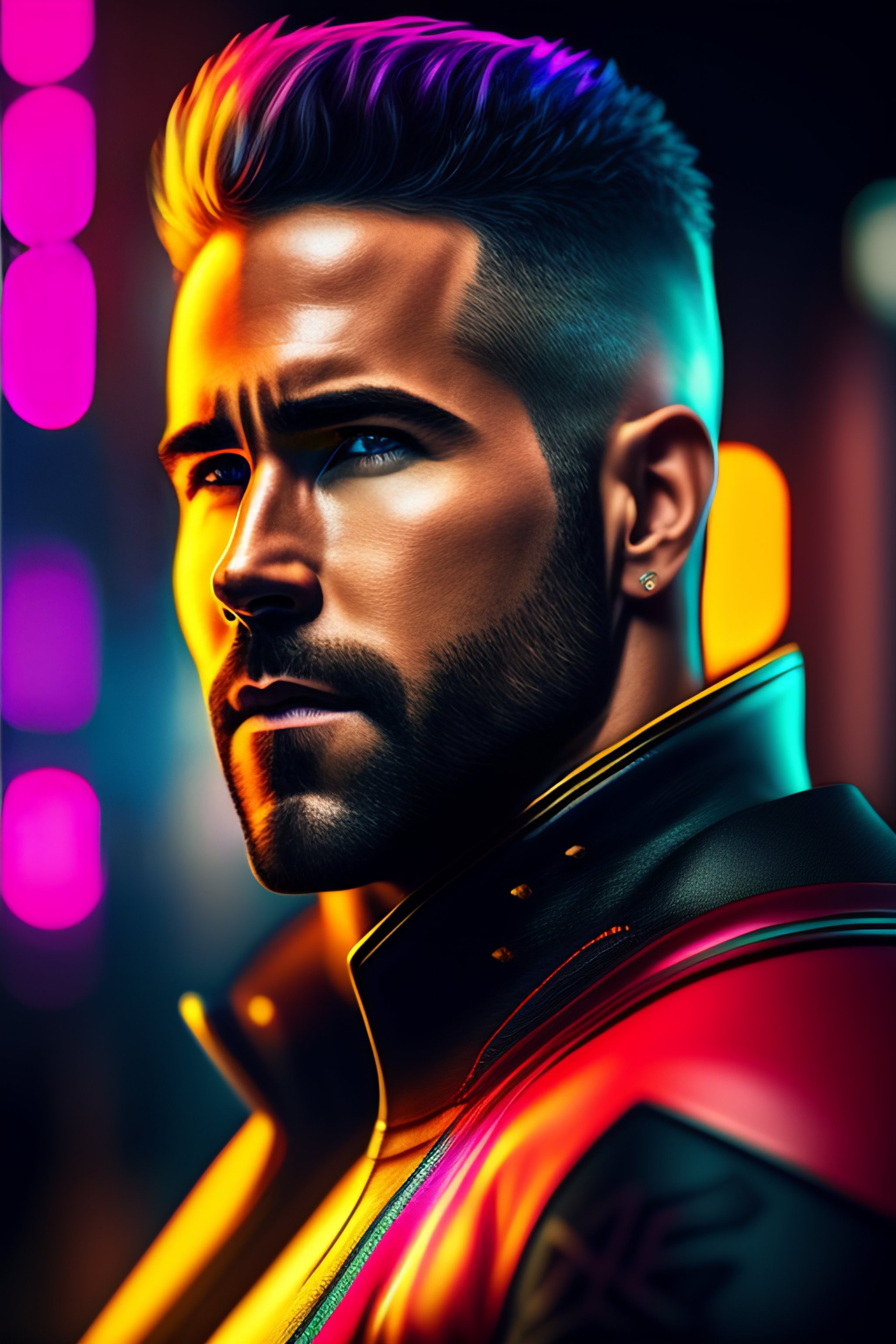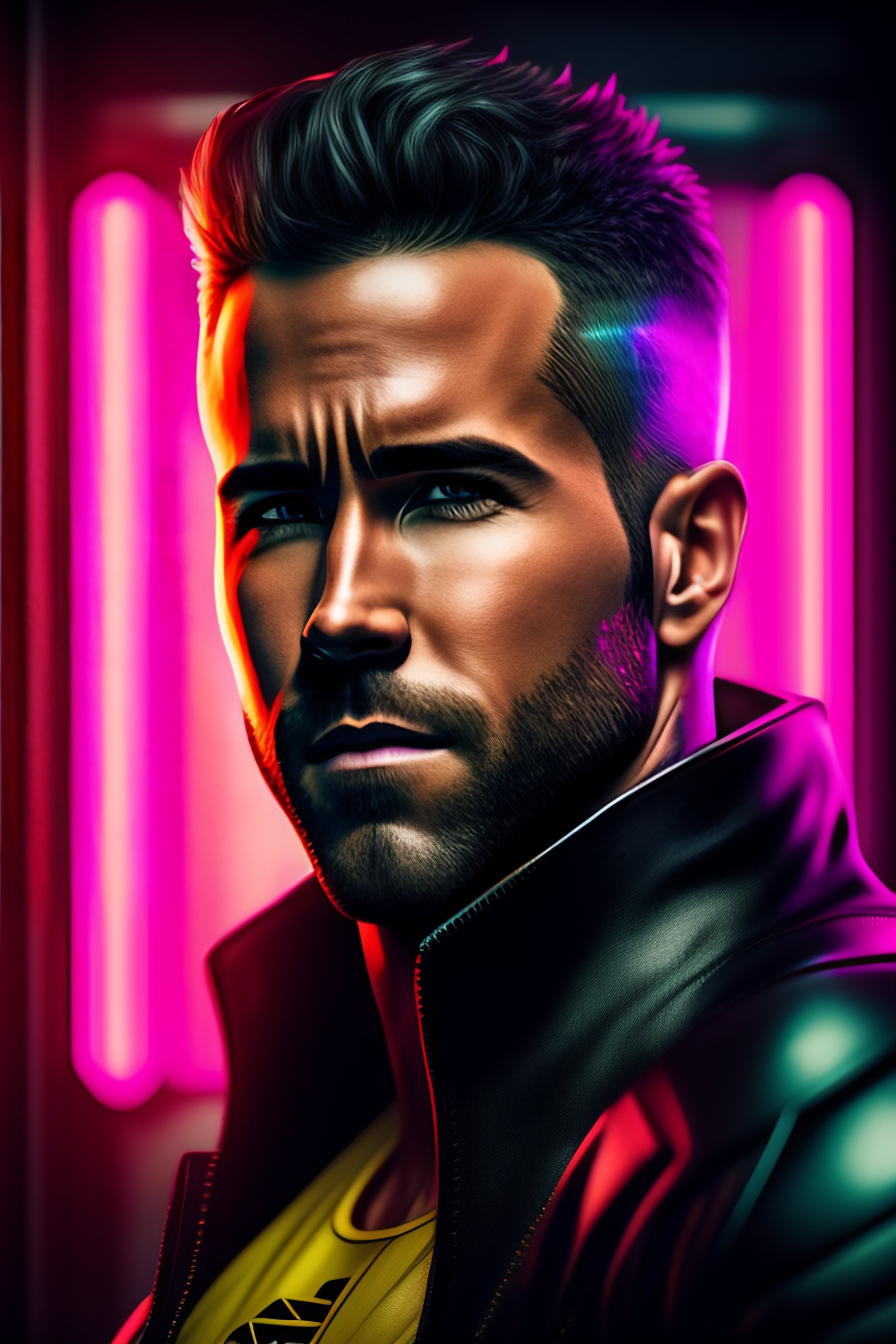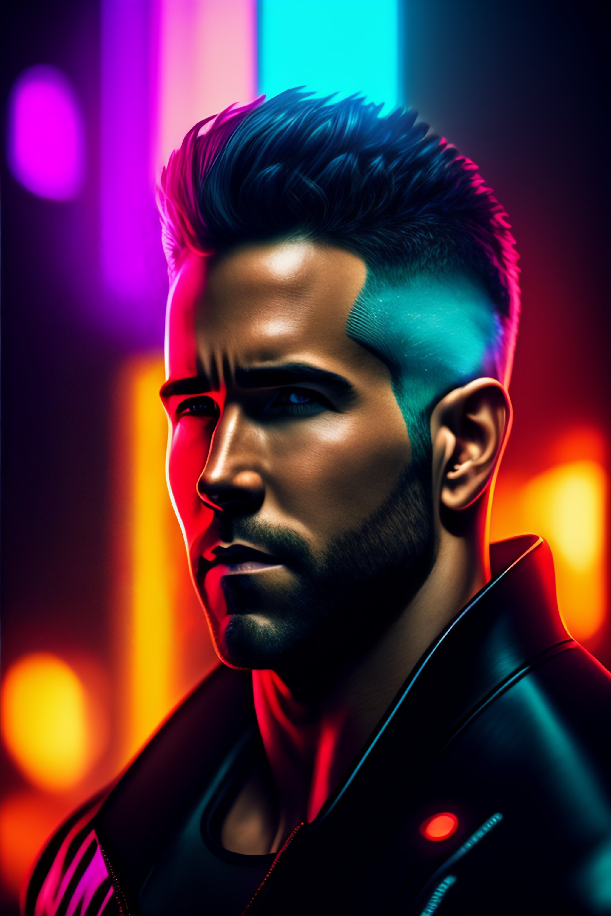 Ryan reynolds portrait, cyberpunk 2 0 7 7, cyberpunk judy alvarez, photorealistic, ultra detailed, neon, octane, bokeh, cinematic lighting, cyber, cyberpunk city, studio quality, feature, scars, cyberface, 8 k