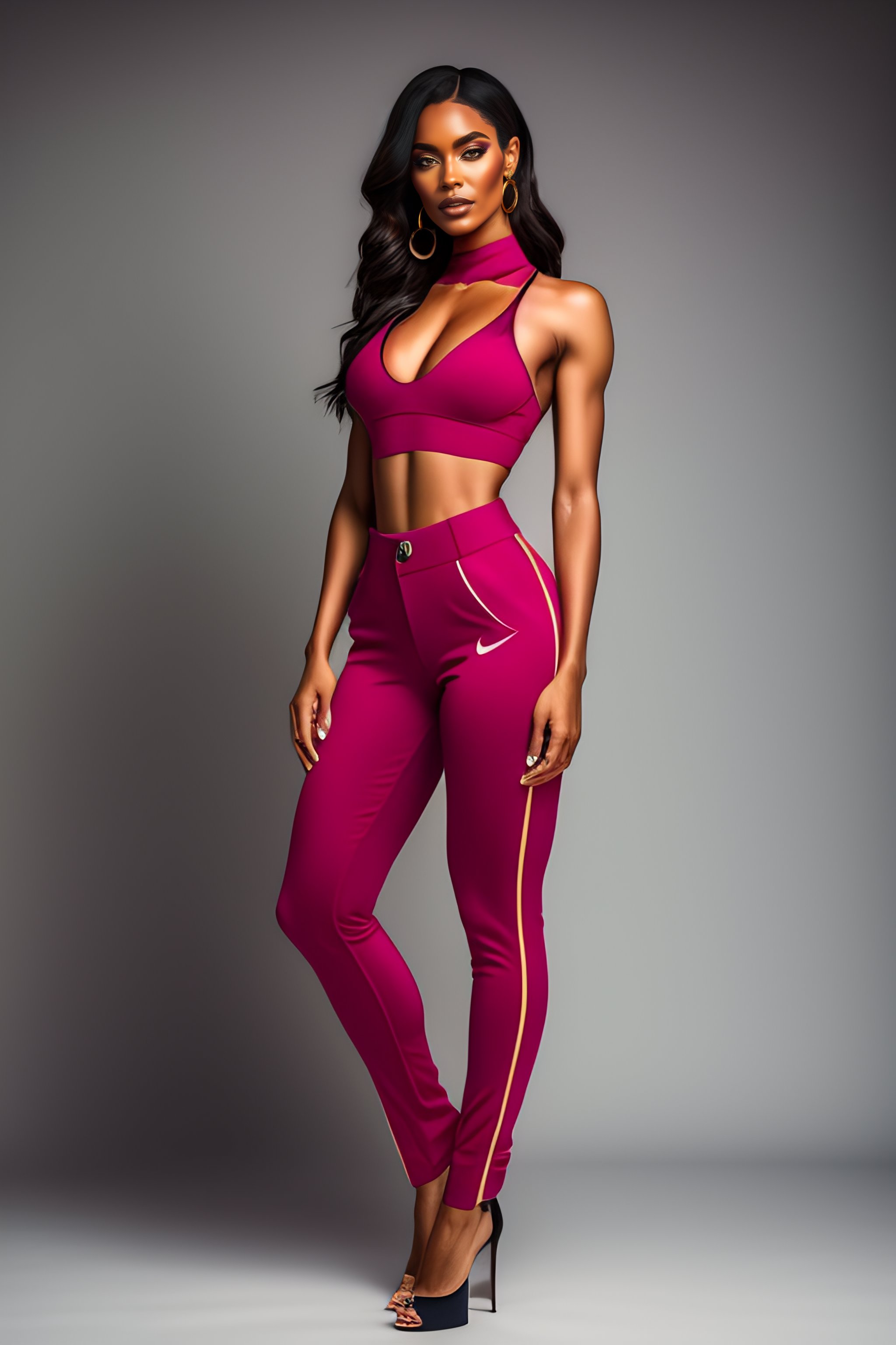Studio portrait of sexy woman wearing pants outfit, full body, 100% real, focused in cloths, natural light, studio background, fashion magazine, hyper realistic, ultra-detailed, no filter, depth of field, fashion, iso 400, photorealistic, 8k