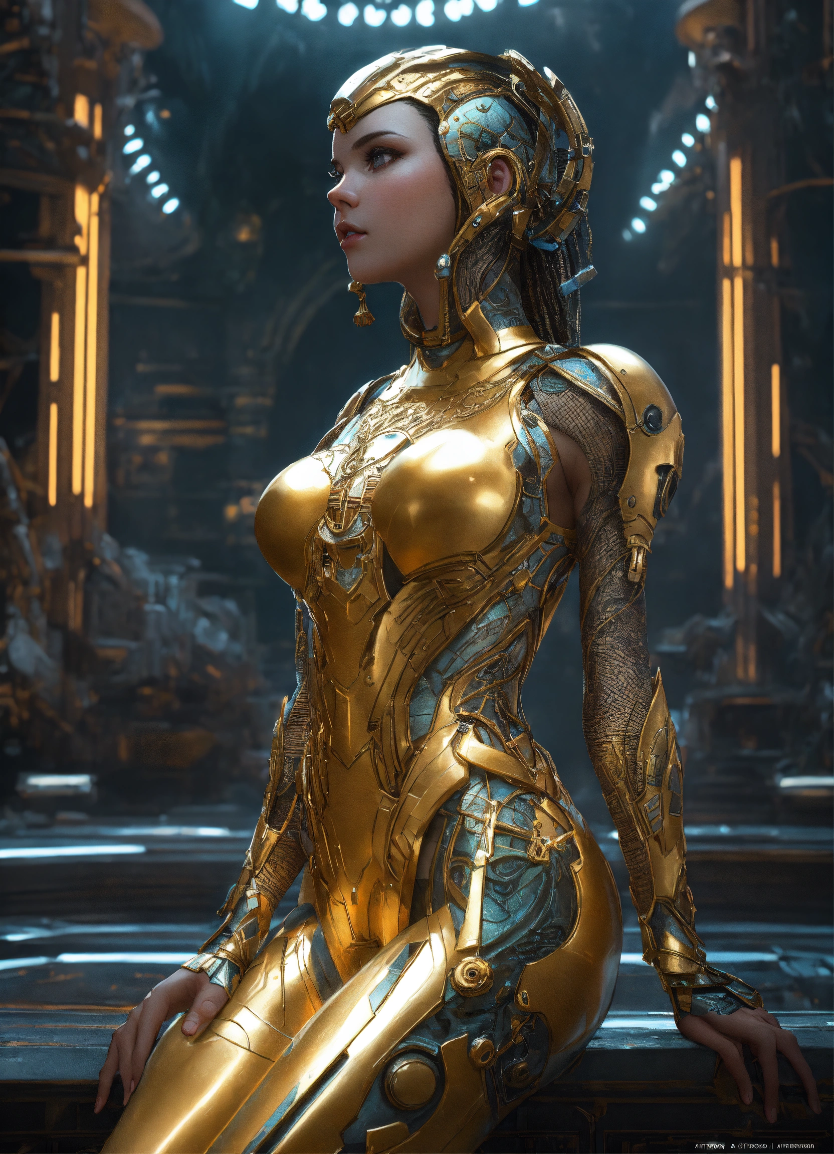 Artificial intelligence full body thinking about your existence in exotic alien planet, pale skin, sf, intricate artwork masterpiece, ominous, matte painting movie poster, soft beautiful colors, contrasting colors, golden ratio, trending on cgsociety, intricate, epic, trending on artstation, by artgerm, luis royo, giger and boris vallejo, highly detailed, vibrant, natural volumetric lights, masterpiece, production cinematic character render, ultra high quality model, trending on artstation, sharp focus, studio photo, intricate details, highly detailed, by greg rutkowski, artgerm, 16k