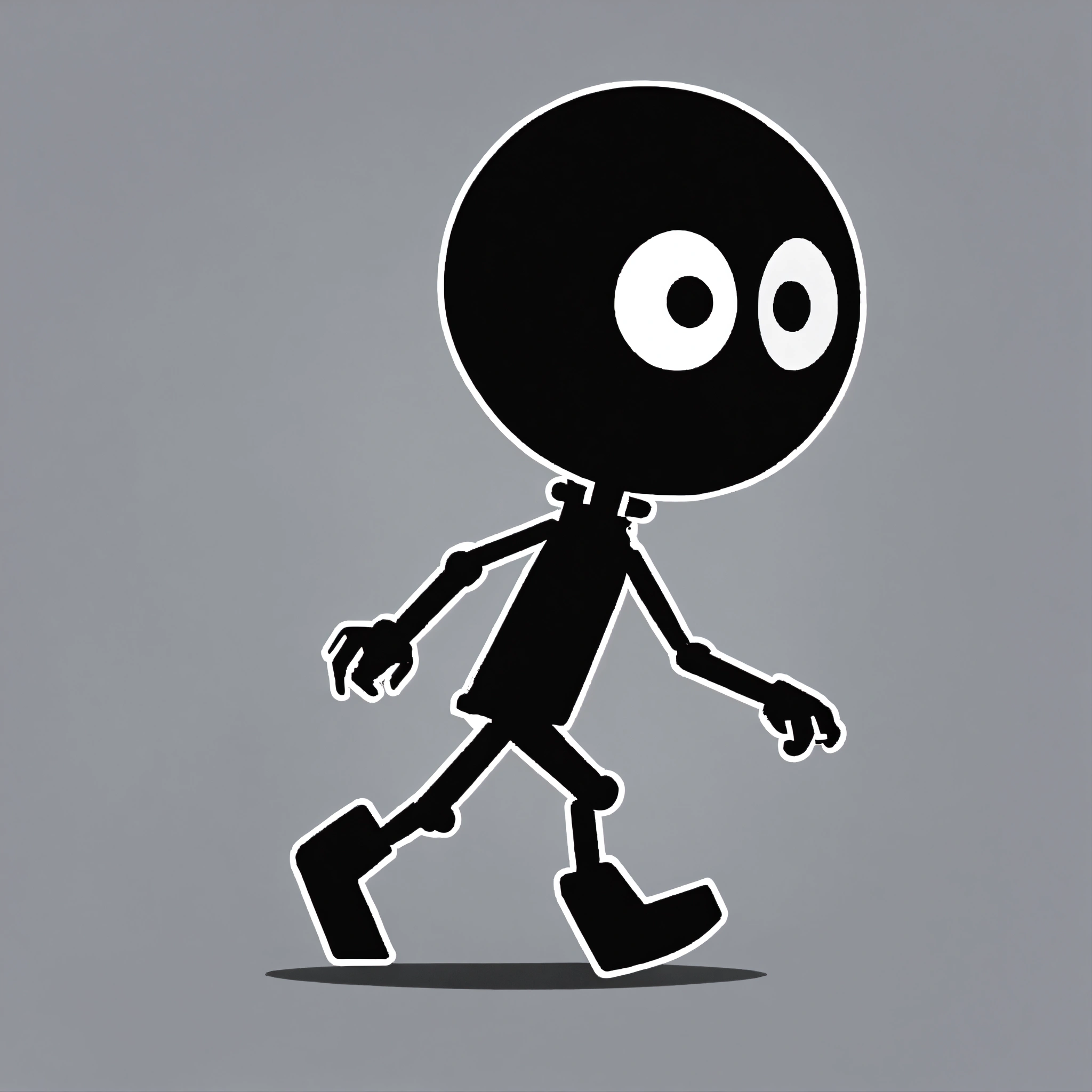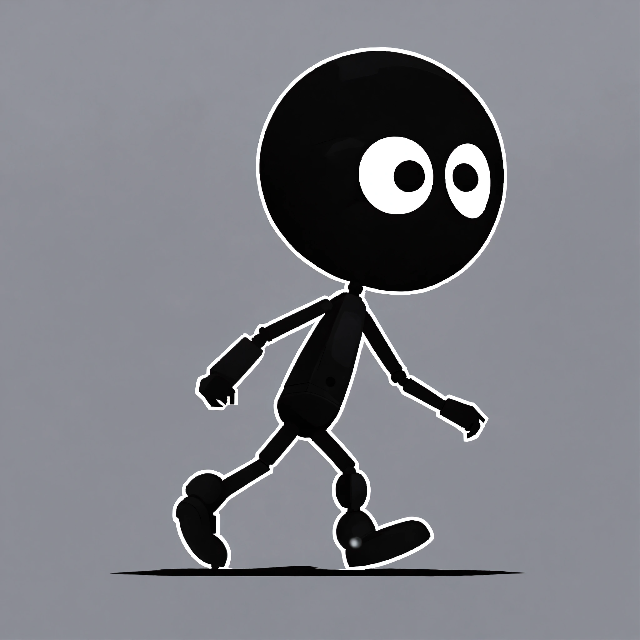 Stickman robot enemy, black and white colors, comic theme, big eyes, game asset for a 2d platformer game, right side view, transparent background