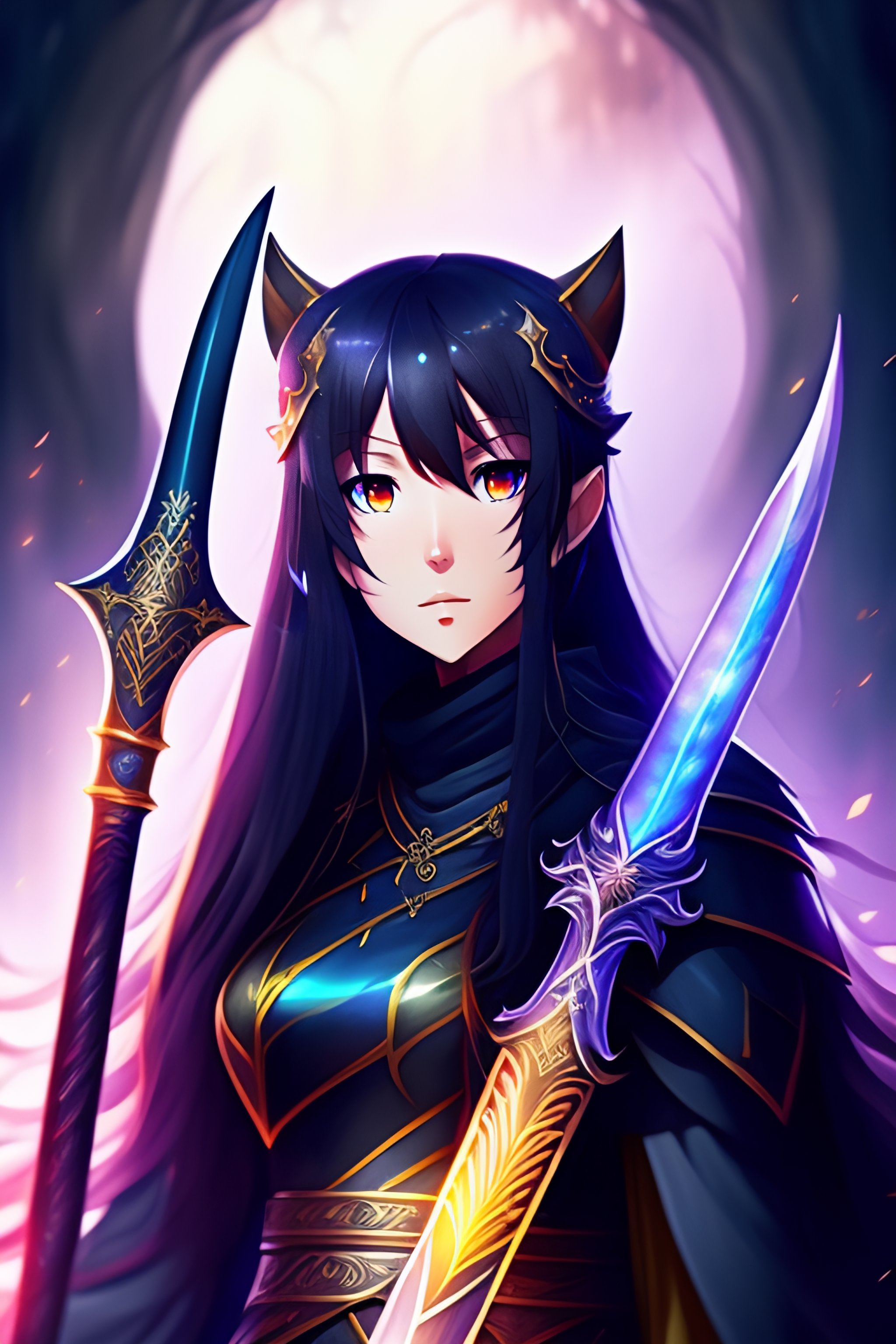 A fantasy warrior, holding black sword, glowing sword, mystical forest, anime style, ((sword art online)), reki kawahara, illustration by abec, young woman, ((amazonian)), (light robes), intrincate, pointy ears, (watercolor), digital art, trending on artstation