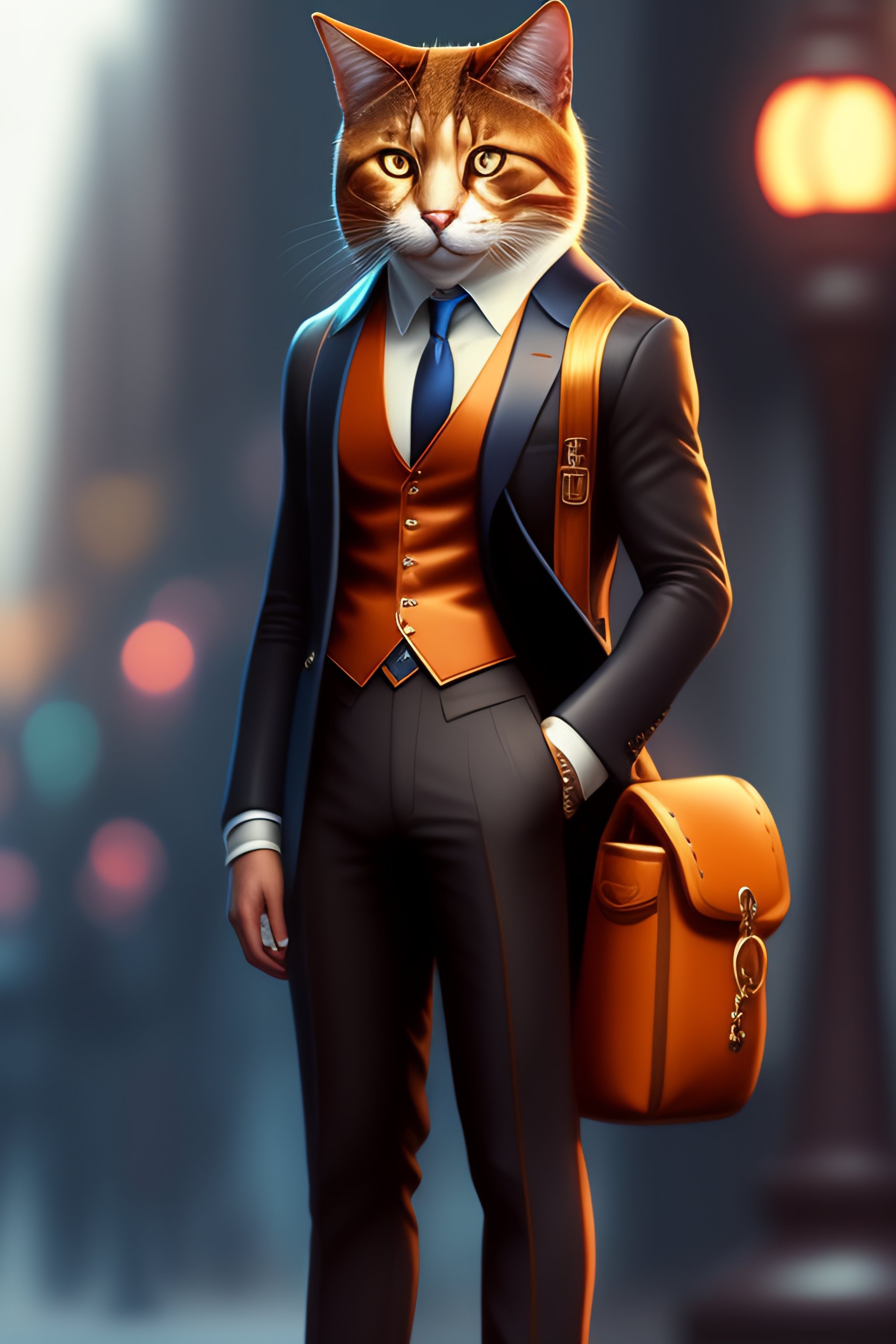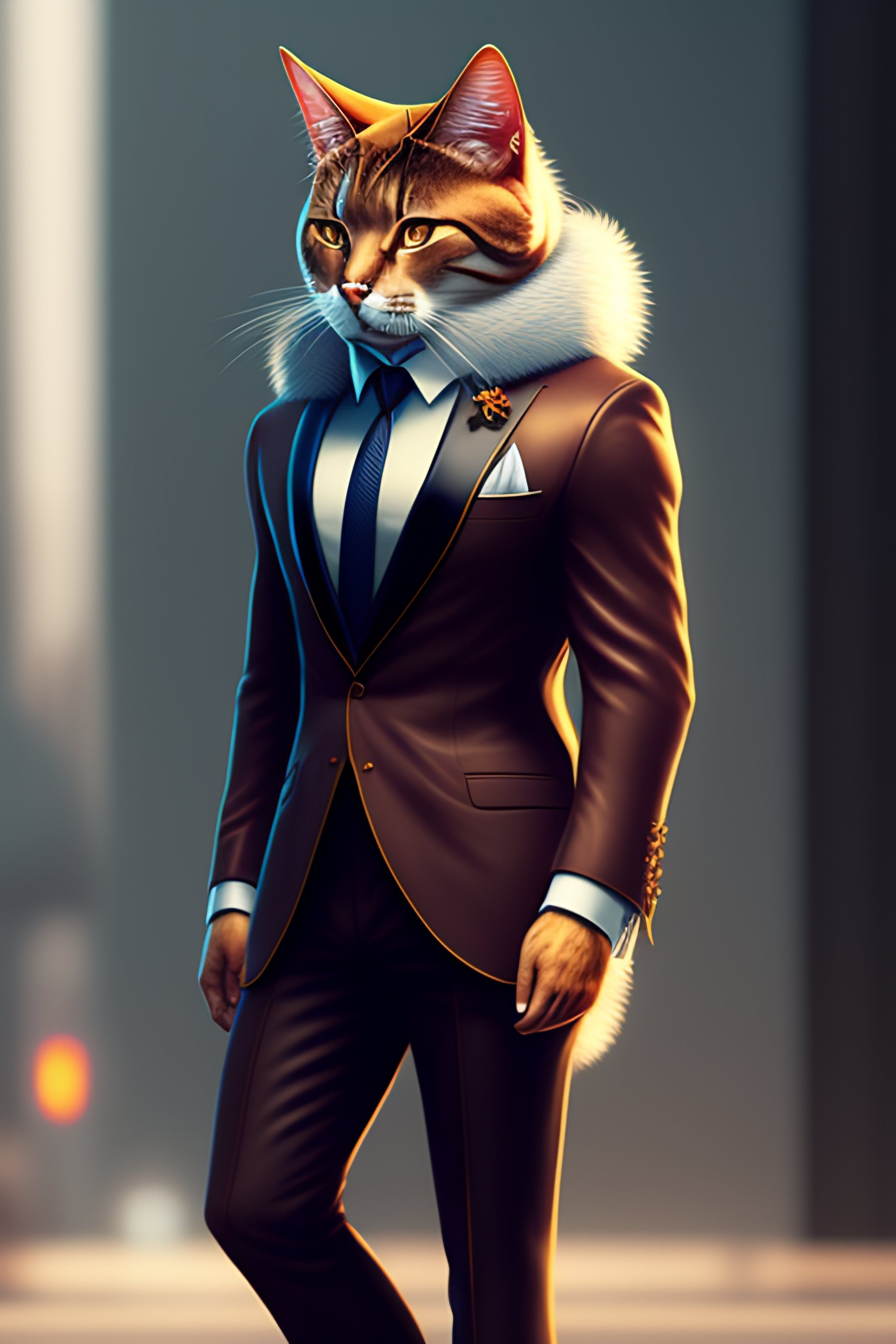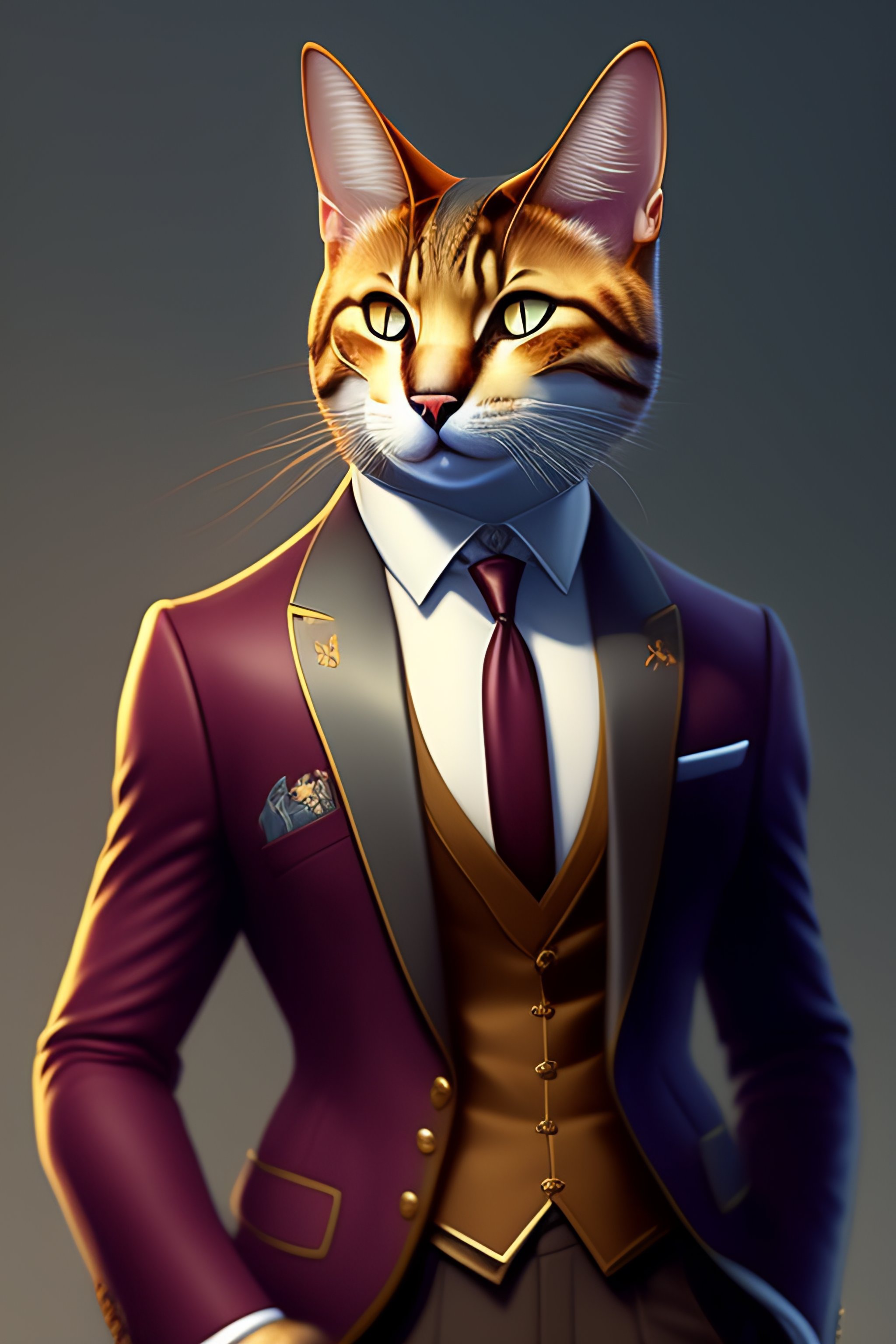 Anthro furry humanoid cat, three piece suit, checking watch, character concept design, painting, detailed, vivid, trending on artstation
