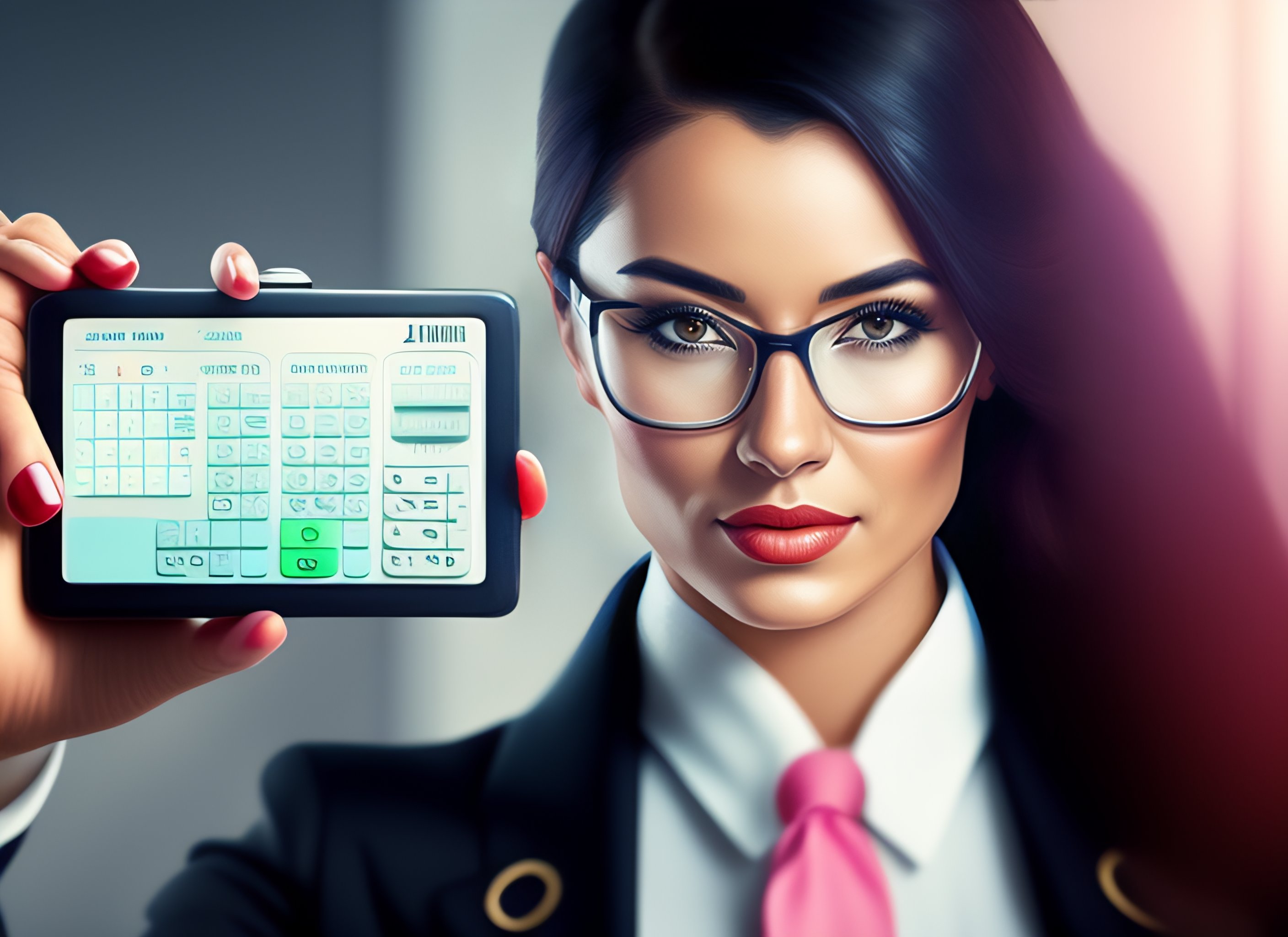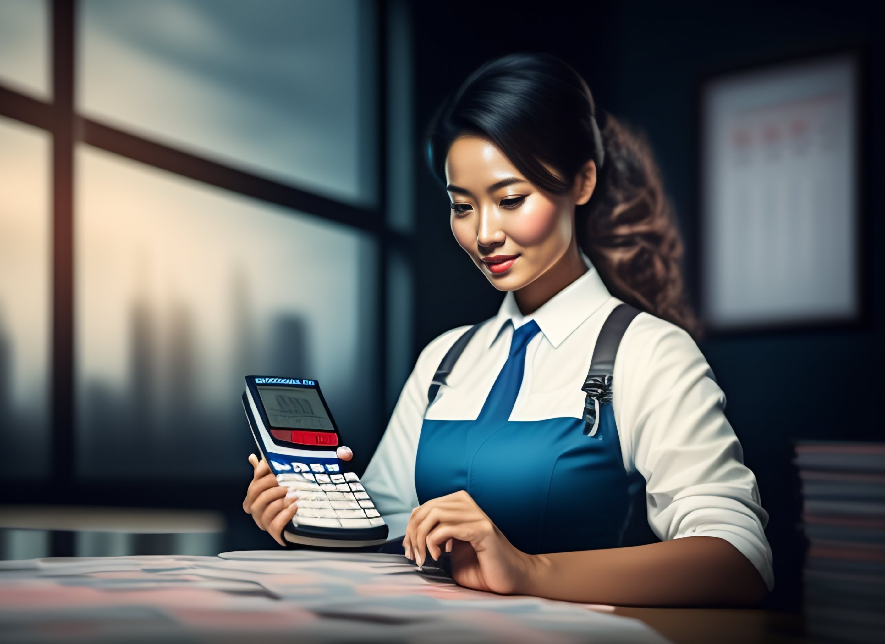 A female accountant holds a calculator in each hand to calculate the amount of money, concept art, illustrations