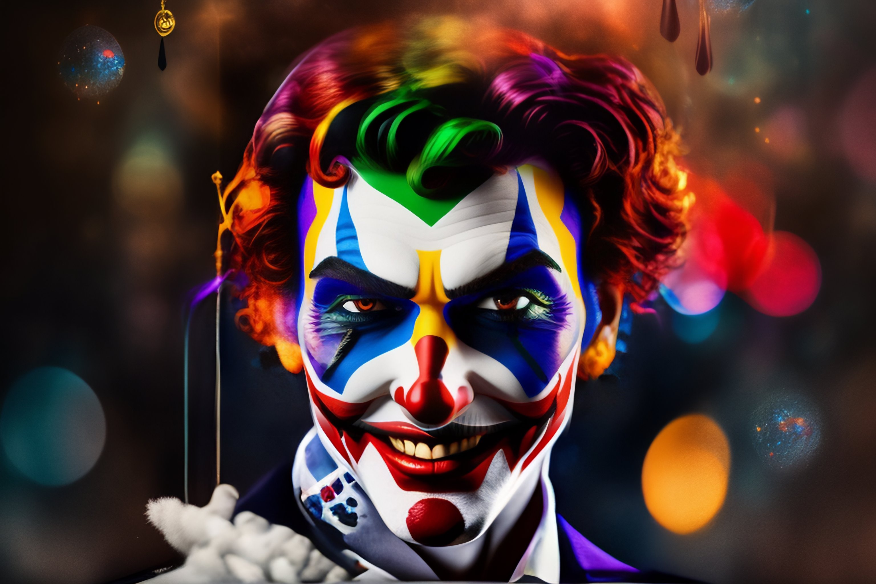 Joker, a close up of a person wearing a clown makeup, poster art by dong kingman, behance, hyperrealism, character, behance hd, epic
