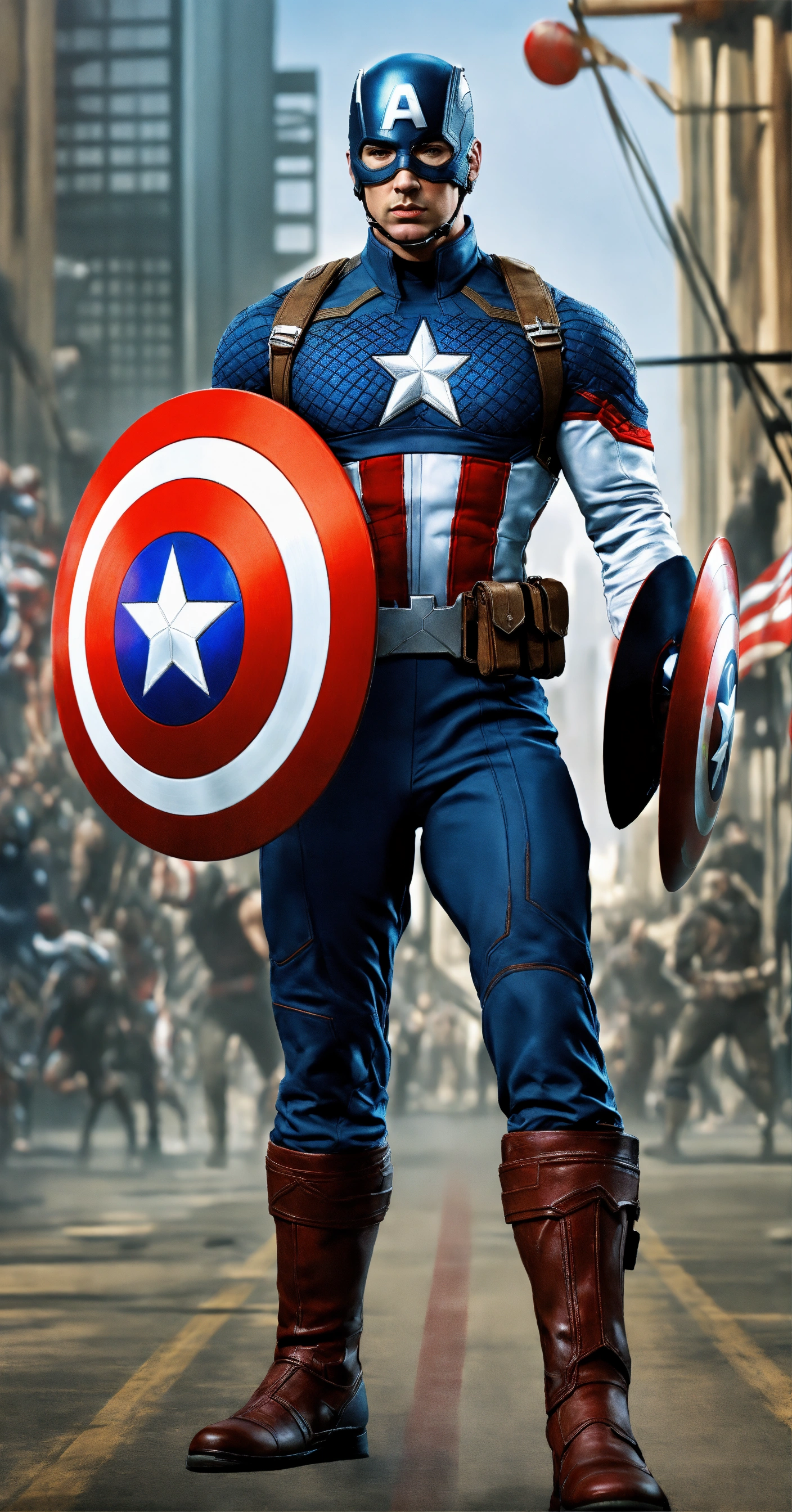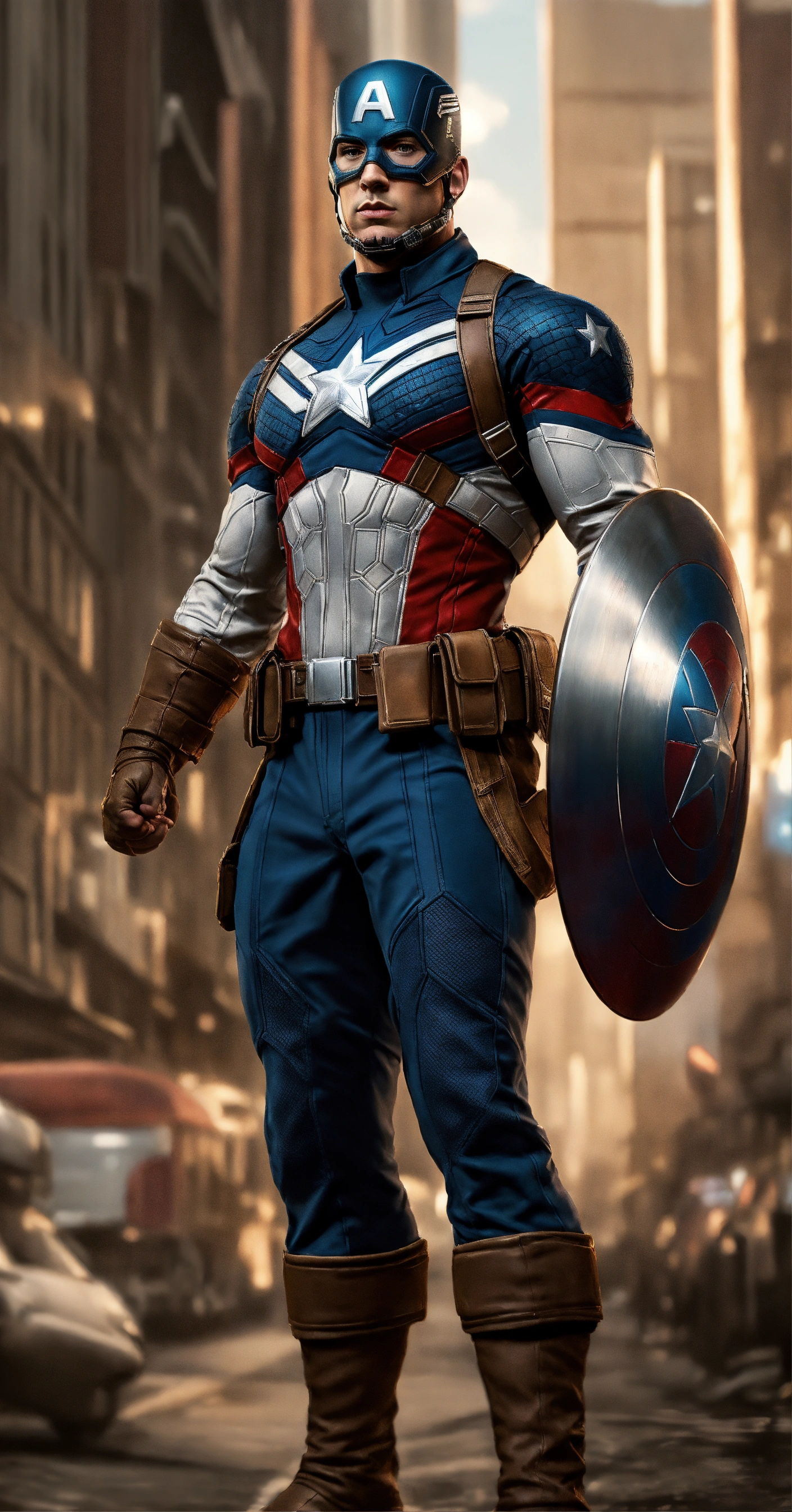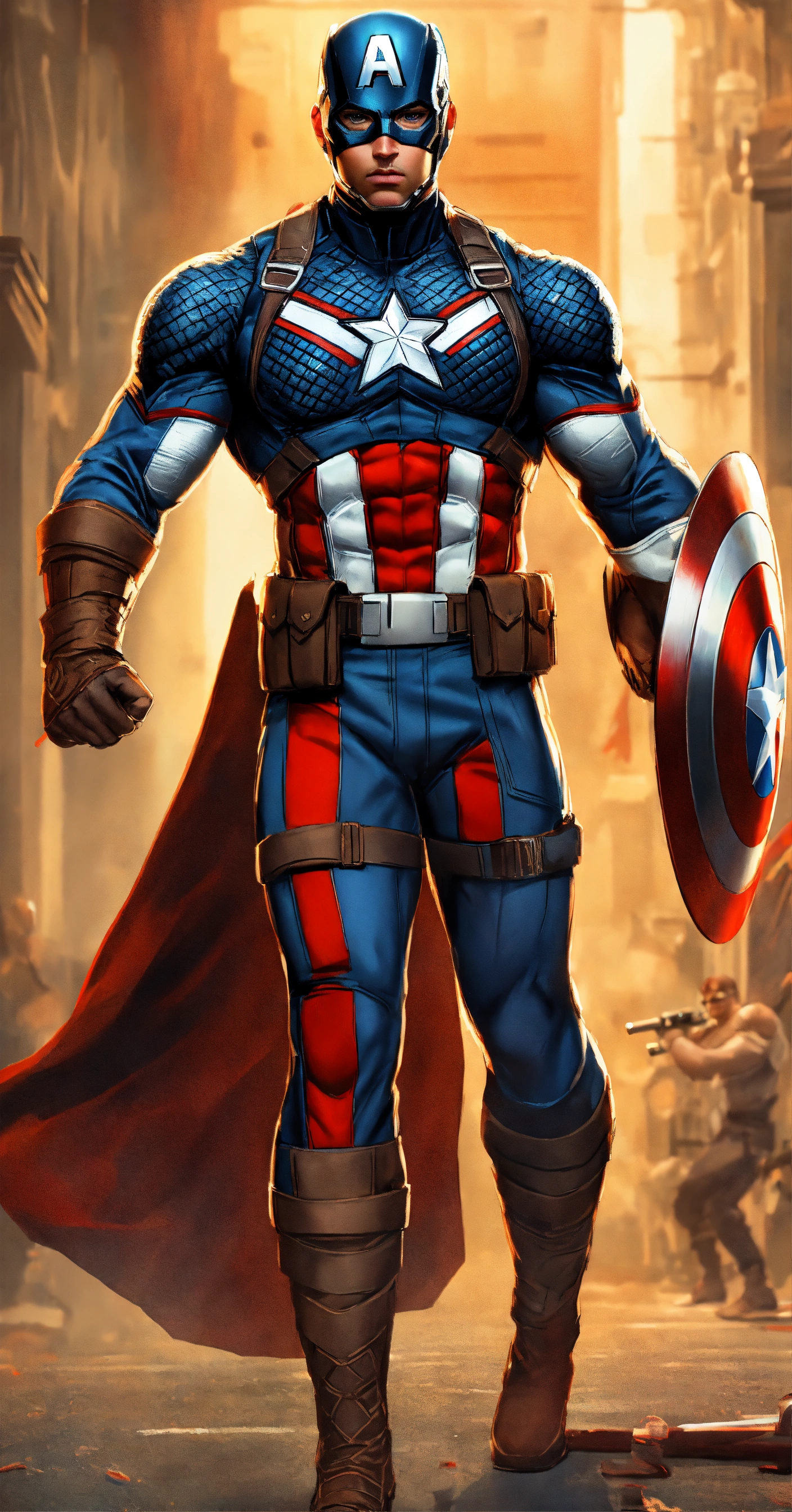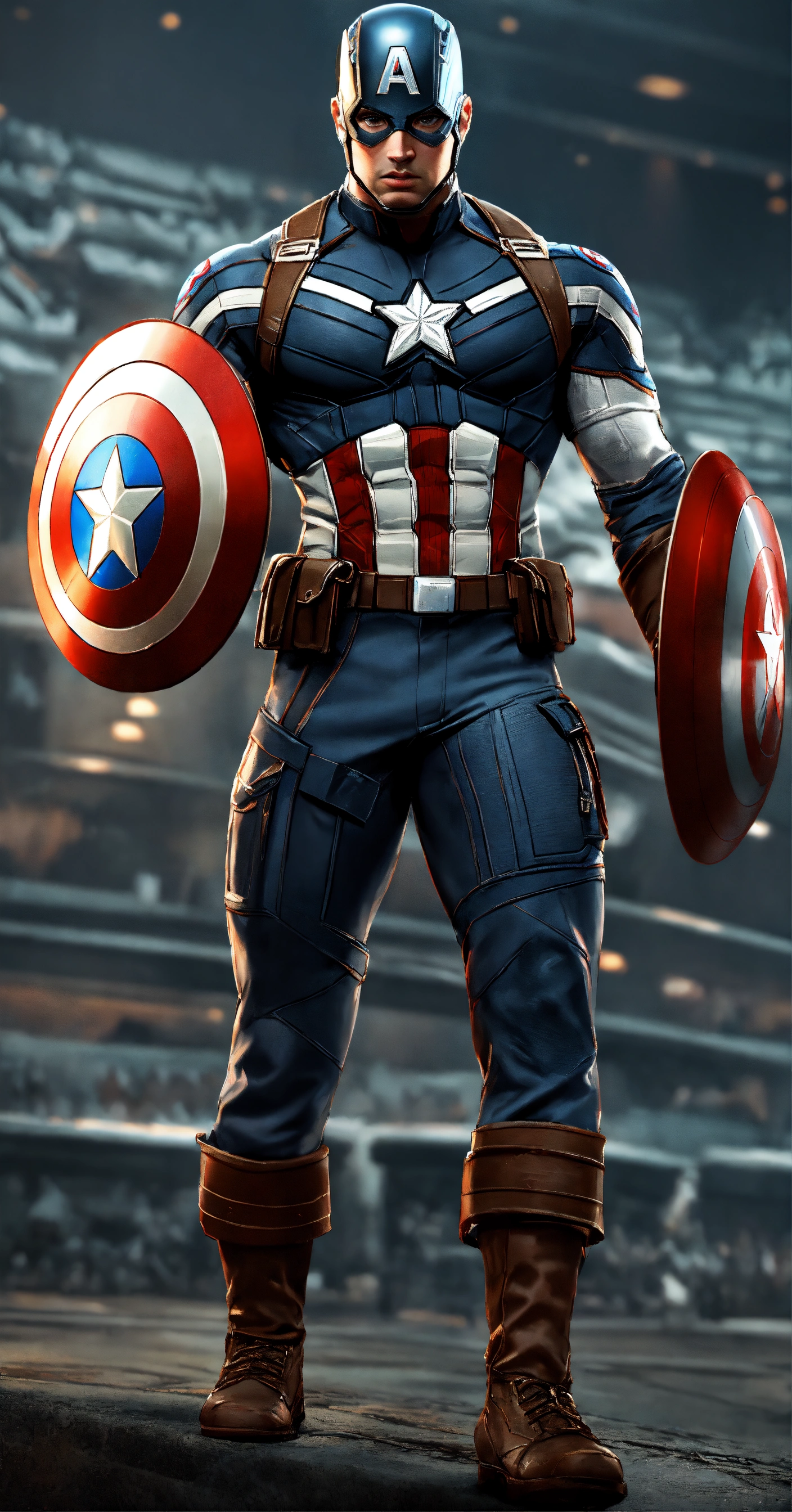 A highly detailed highly realistic image of short platinum captain america wearing mma dresss, heroic american stance pose, muscular, intricate, elegant, highly detailed, centered, artstation, concept art, smooth, sharp focus, marvel cinematic concept art
