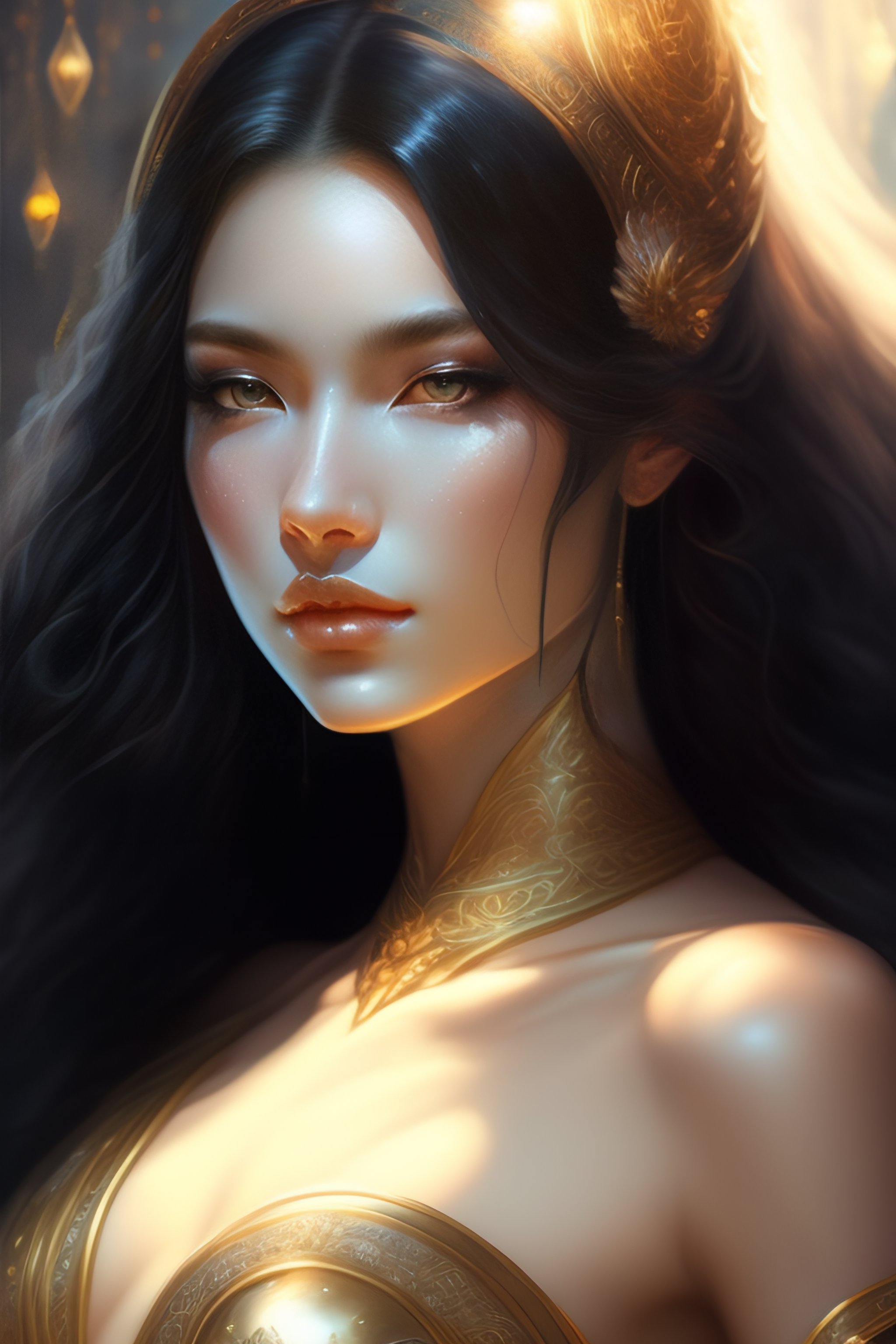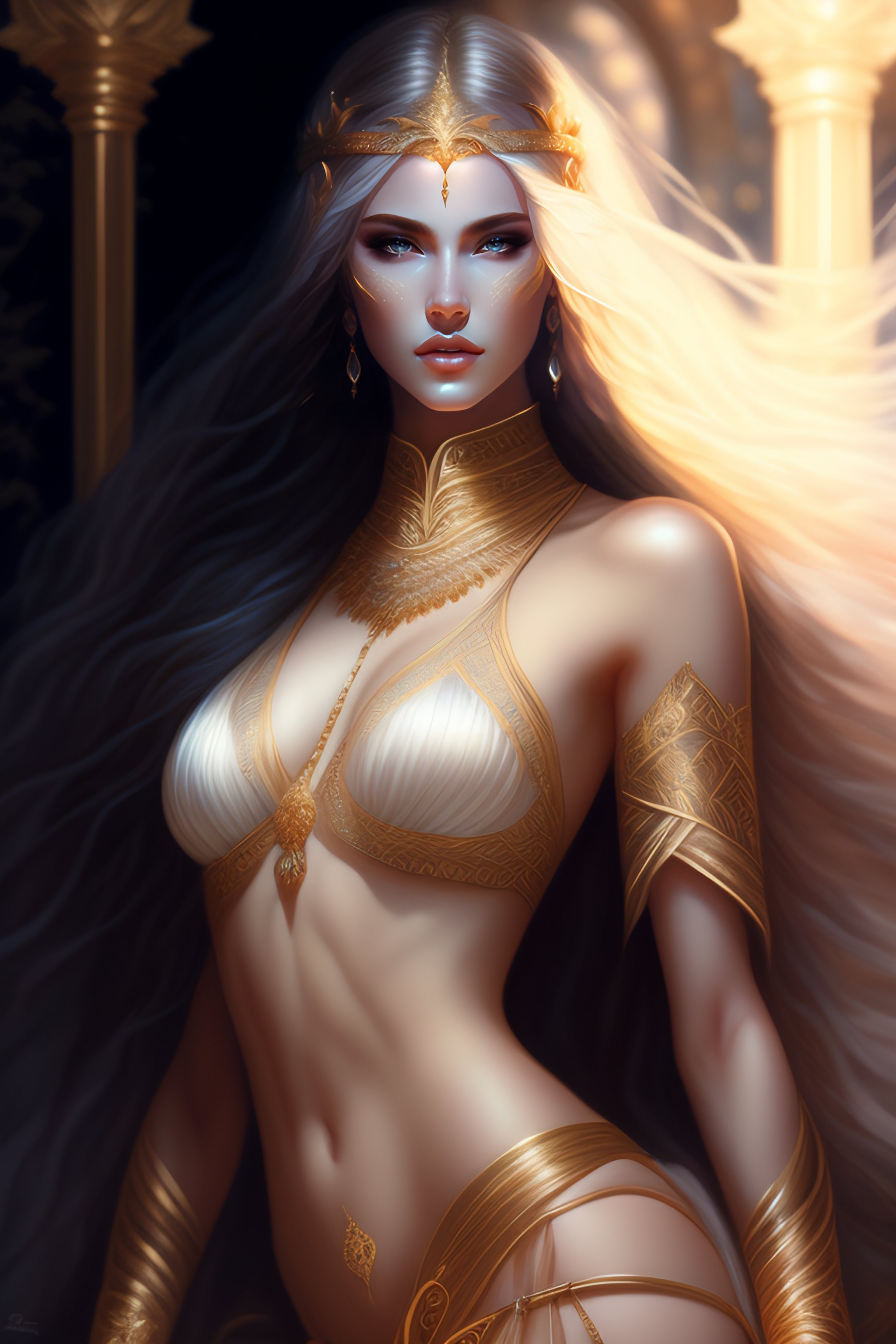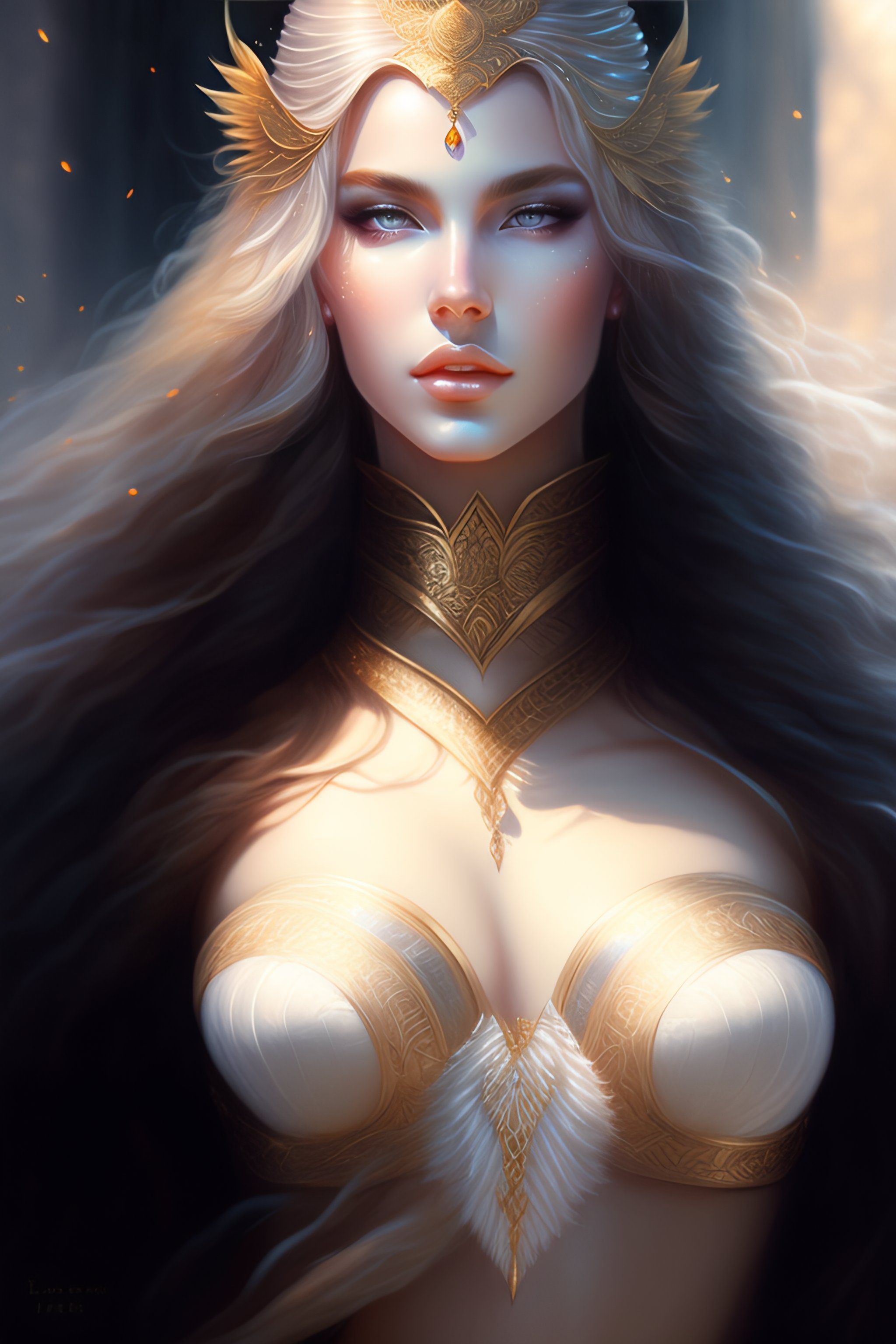 Goddess, recornation of souls, pale skin, fantasy, sharp focus, intricate, elegant, illustration, ambient lighting, art by stefanie law, qistina khalidah, tranding on artstation, art by luis royo higly detailed studio lighting