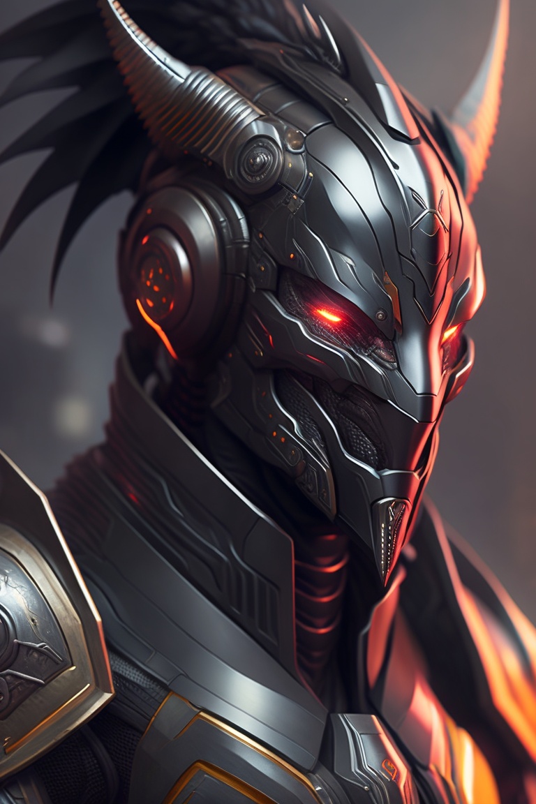 Portrait of a cybernetic black dragon humanoid, full body, dreadful face with power armor, ultra realistic, concept art, intricate details, eerie, highly detailed, photorealistic, octane render, 32 k, unreal engine. art by artgerm and greg rutkowski and alphonse mucha and tayyip erdoğan