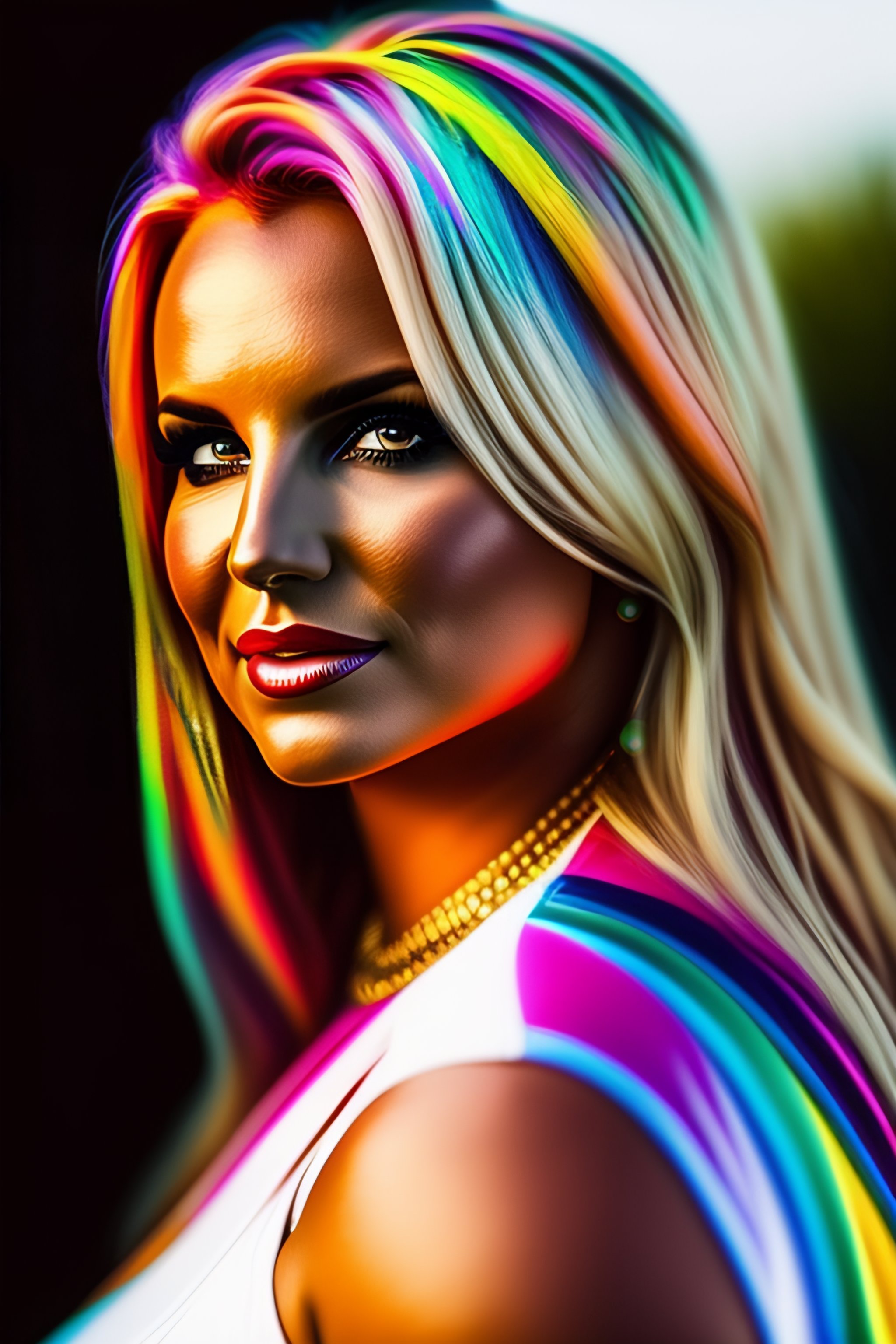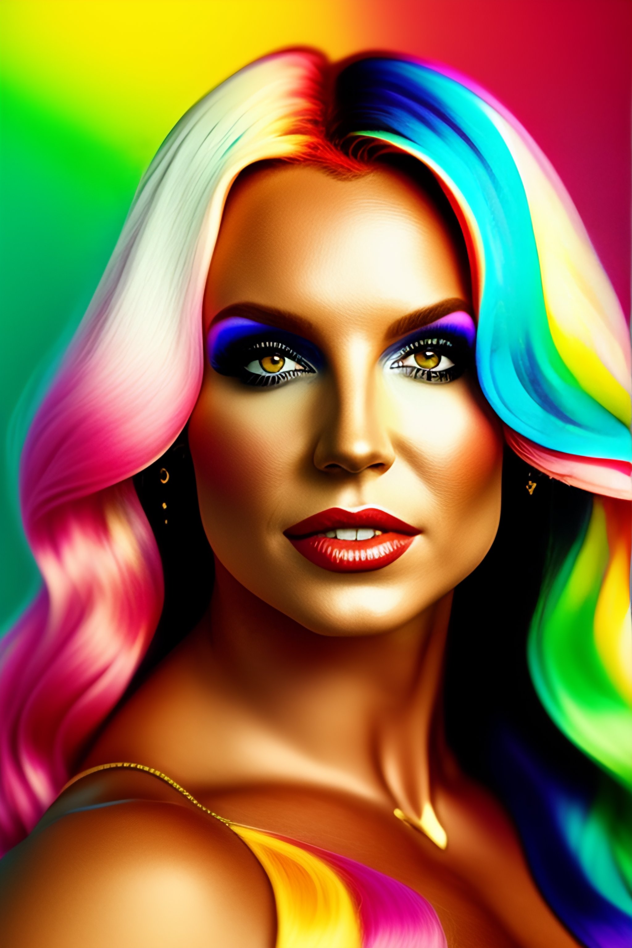 Britney spears rainbow make up plus size model white skin woman rainbow random skin race