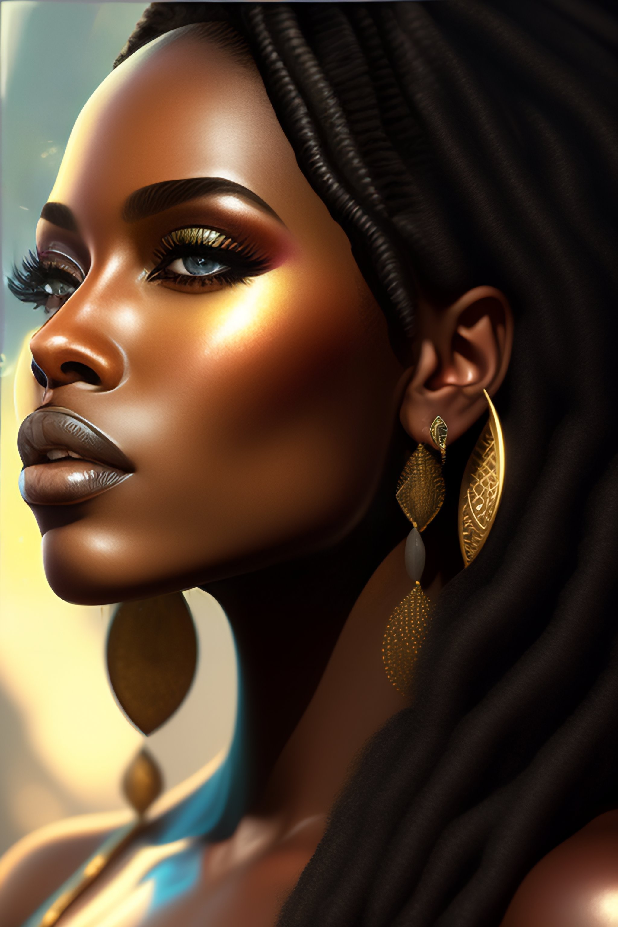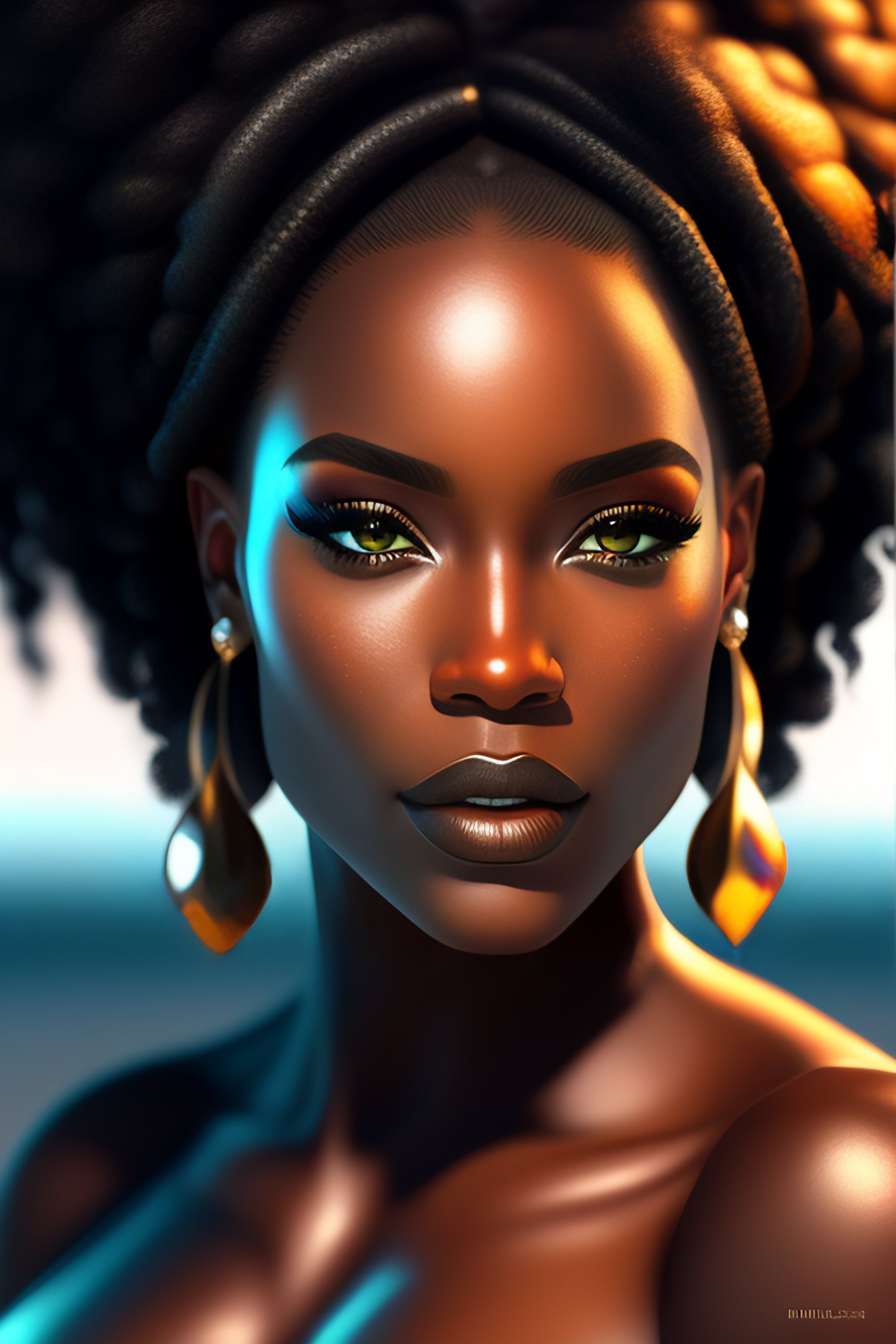 A beautiful black female mermaid detailed face, fantasy art, illustration, epic, fantasy, intricate, hyper detailed, smooth, sharp focus, ray tracing, full body 4k cartooned