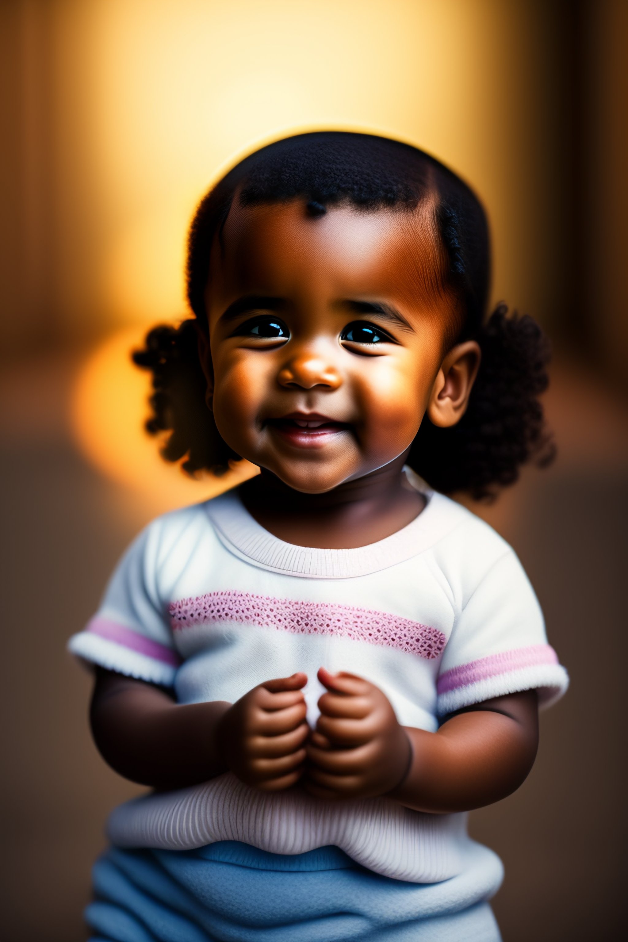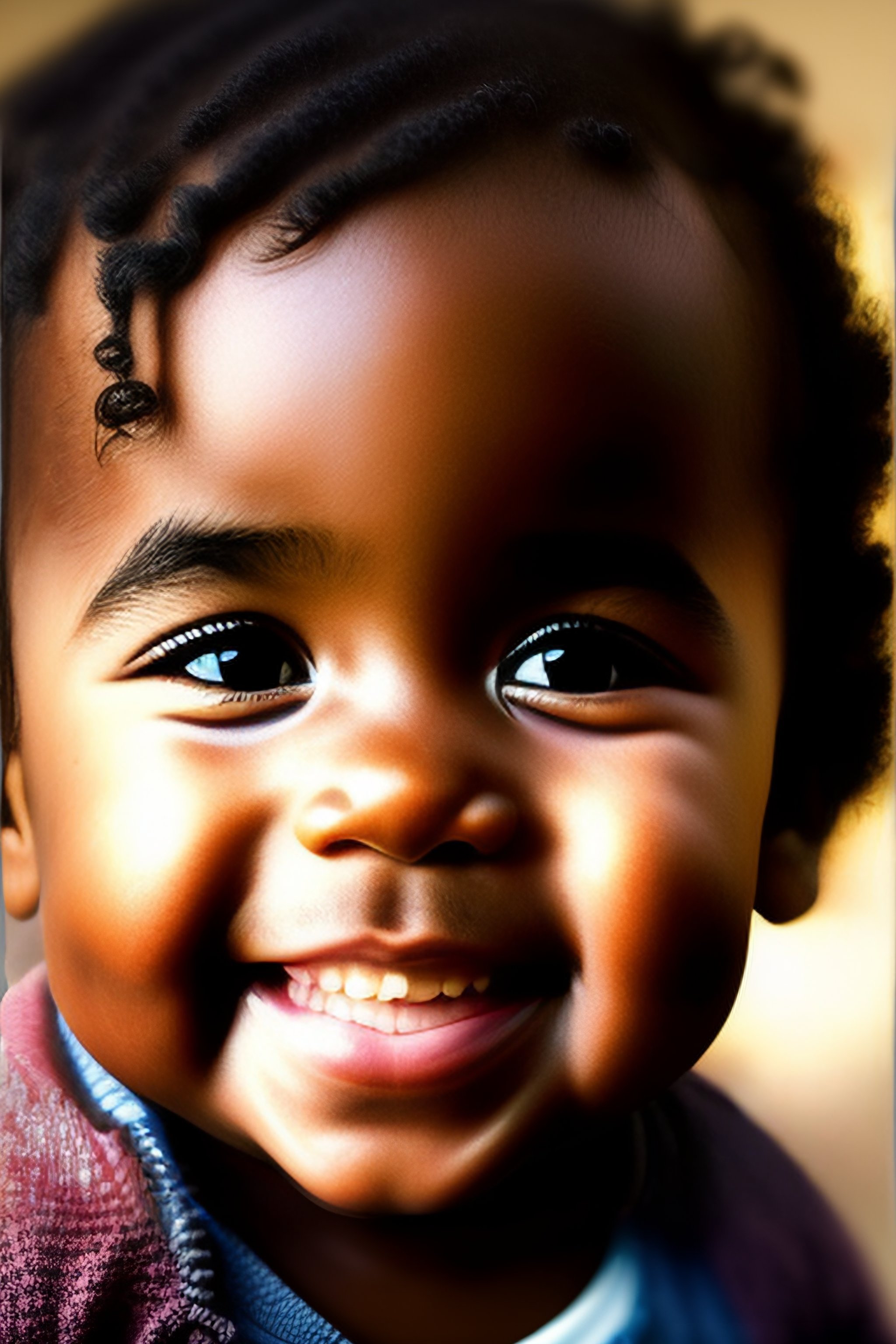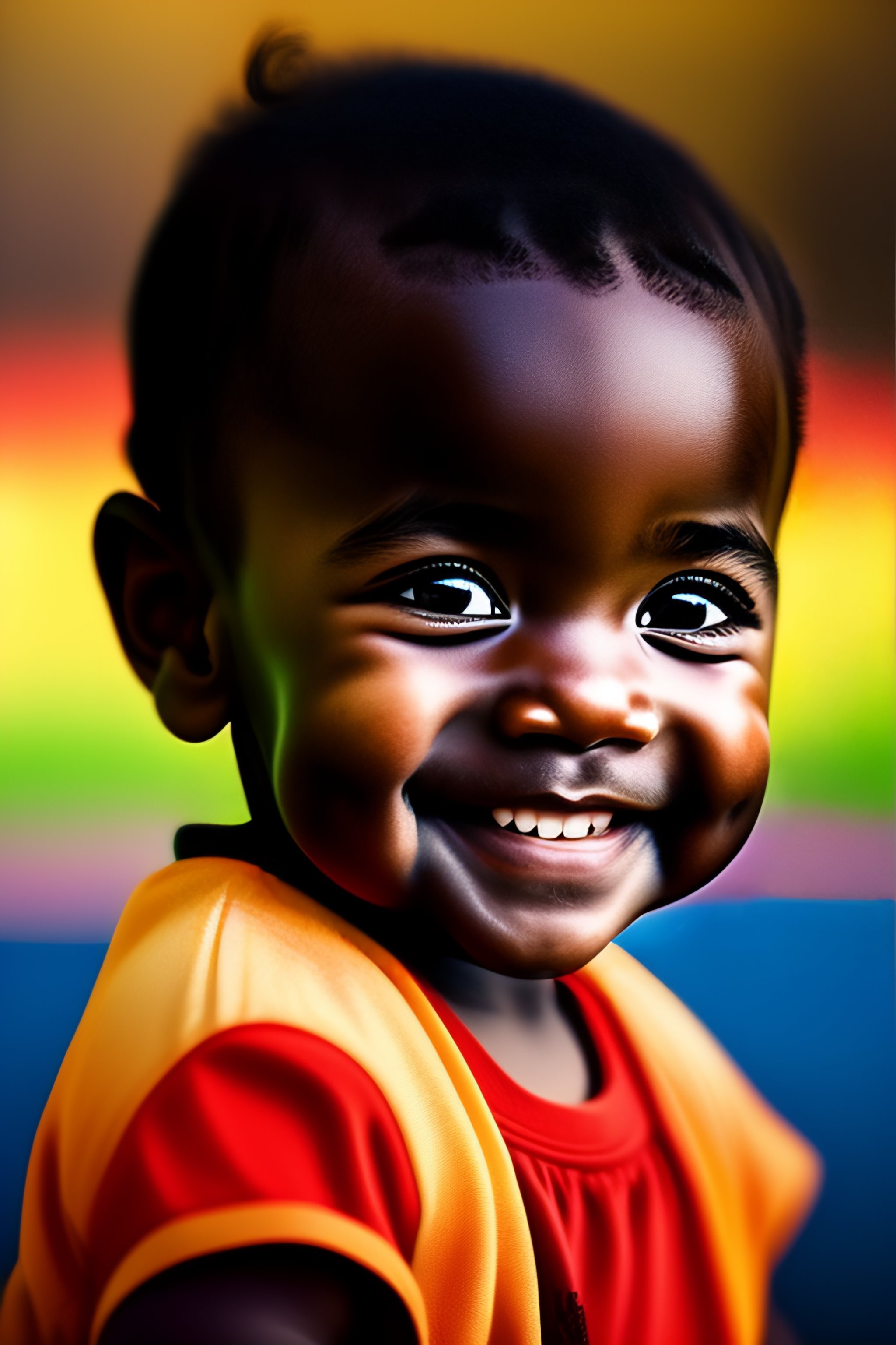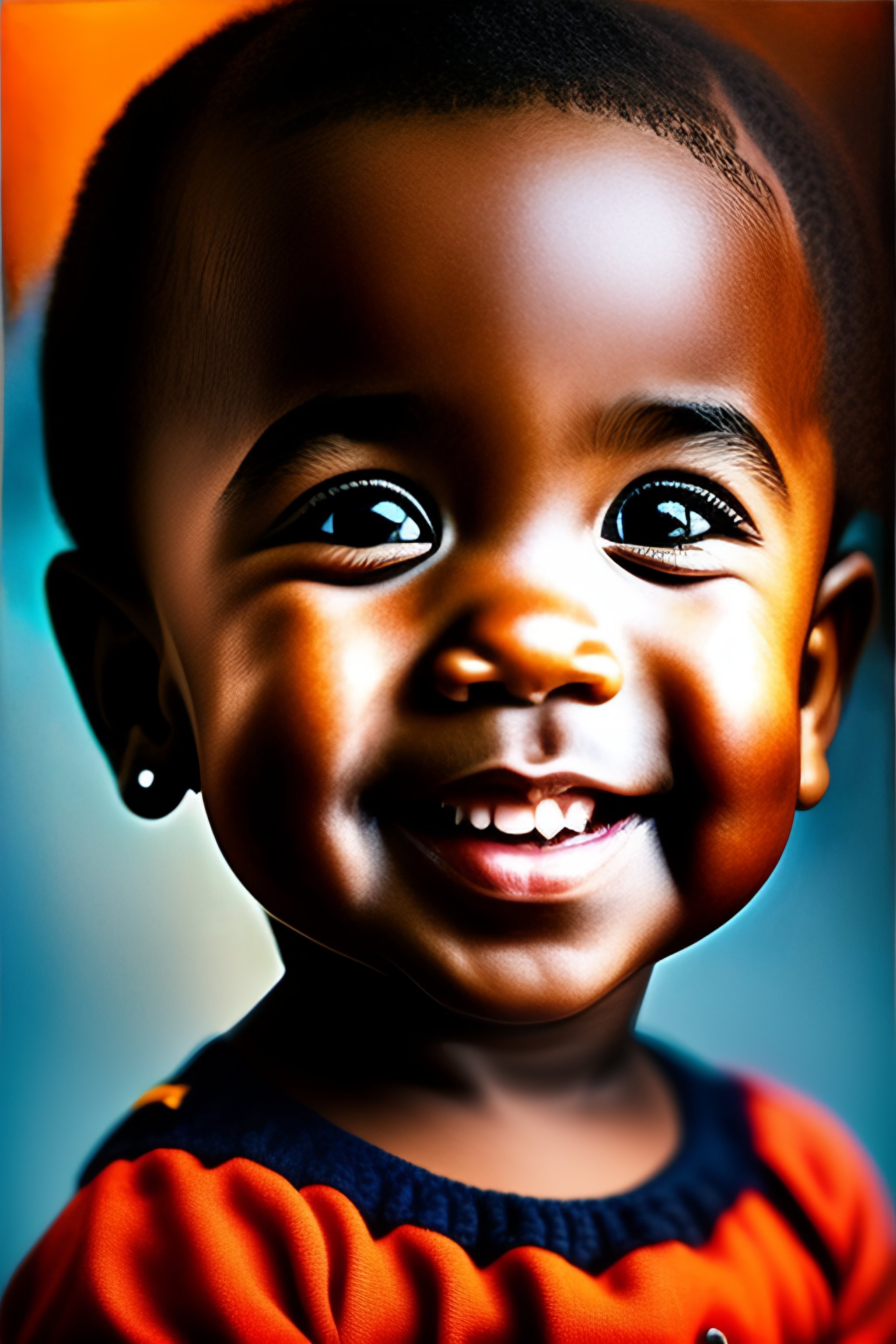 Smiling baby with big eyes and dark hairs