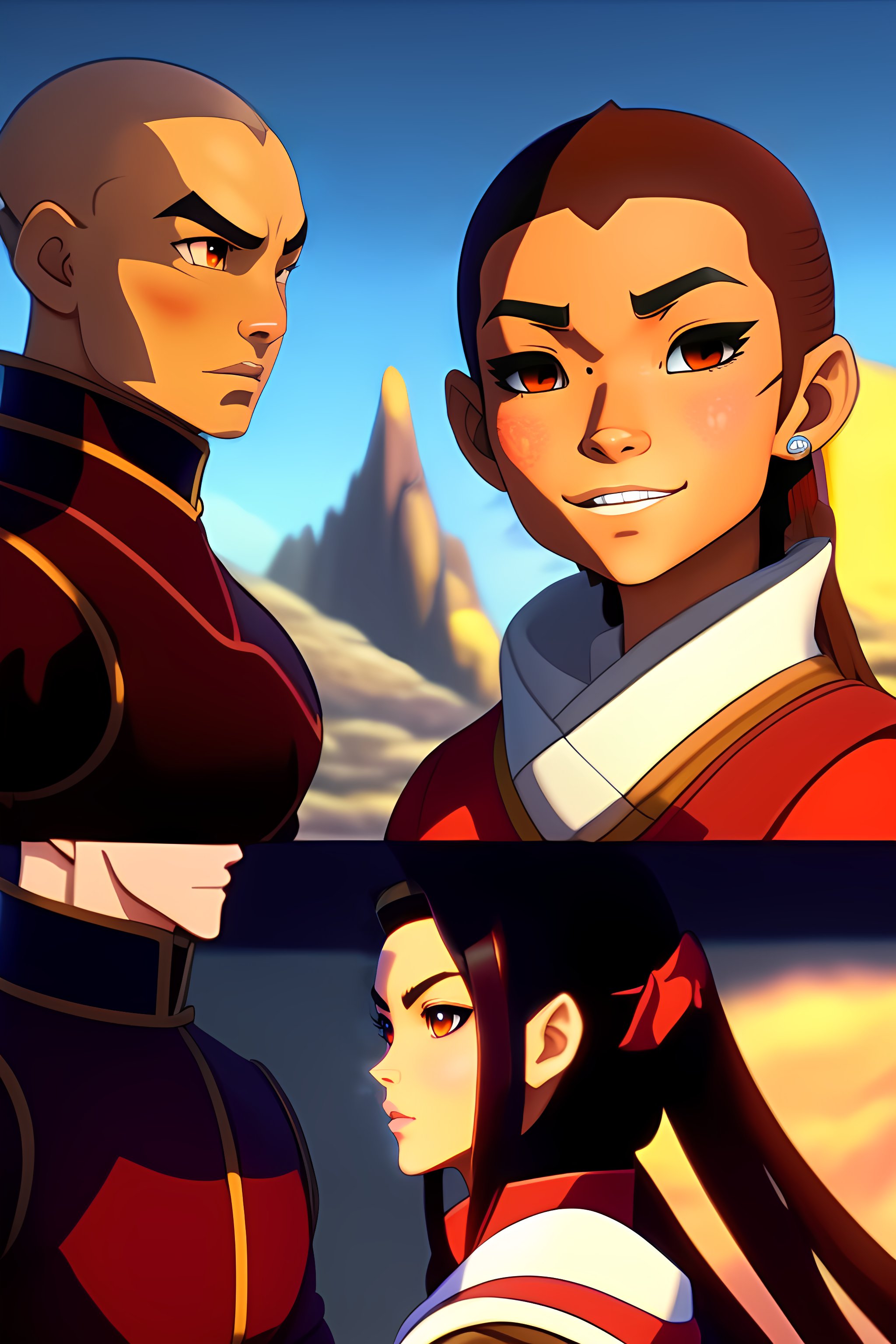 ((aang jealous of zuko and katara)) art style of disney the tv show avatar and the last airbender