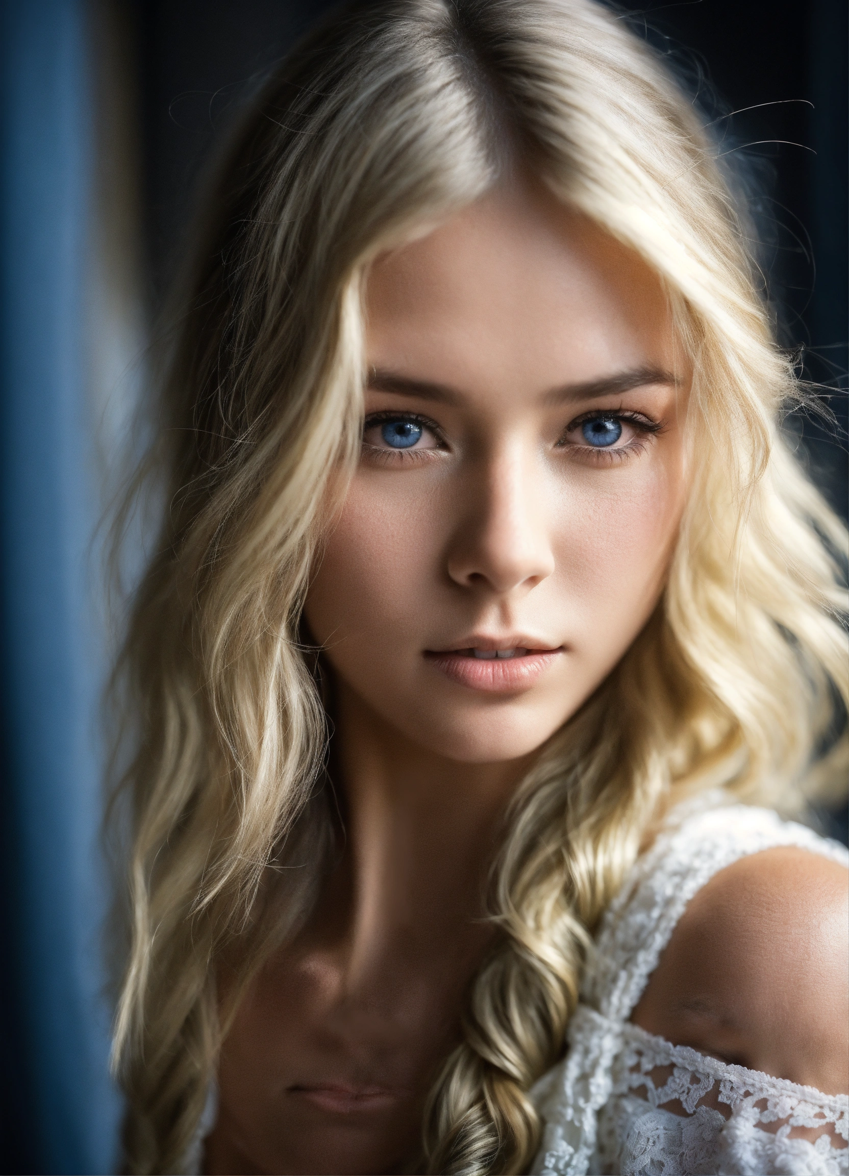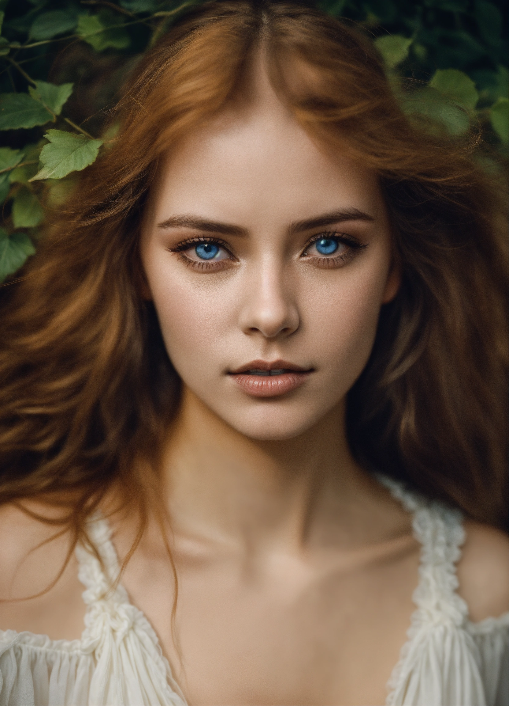 Femme jeune cheveux blancs sorcière yeux blancs sans pupille mystérieuse antiquité format irréel