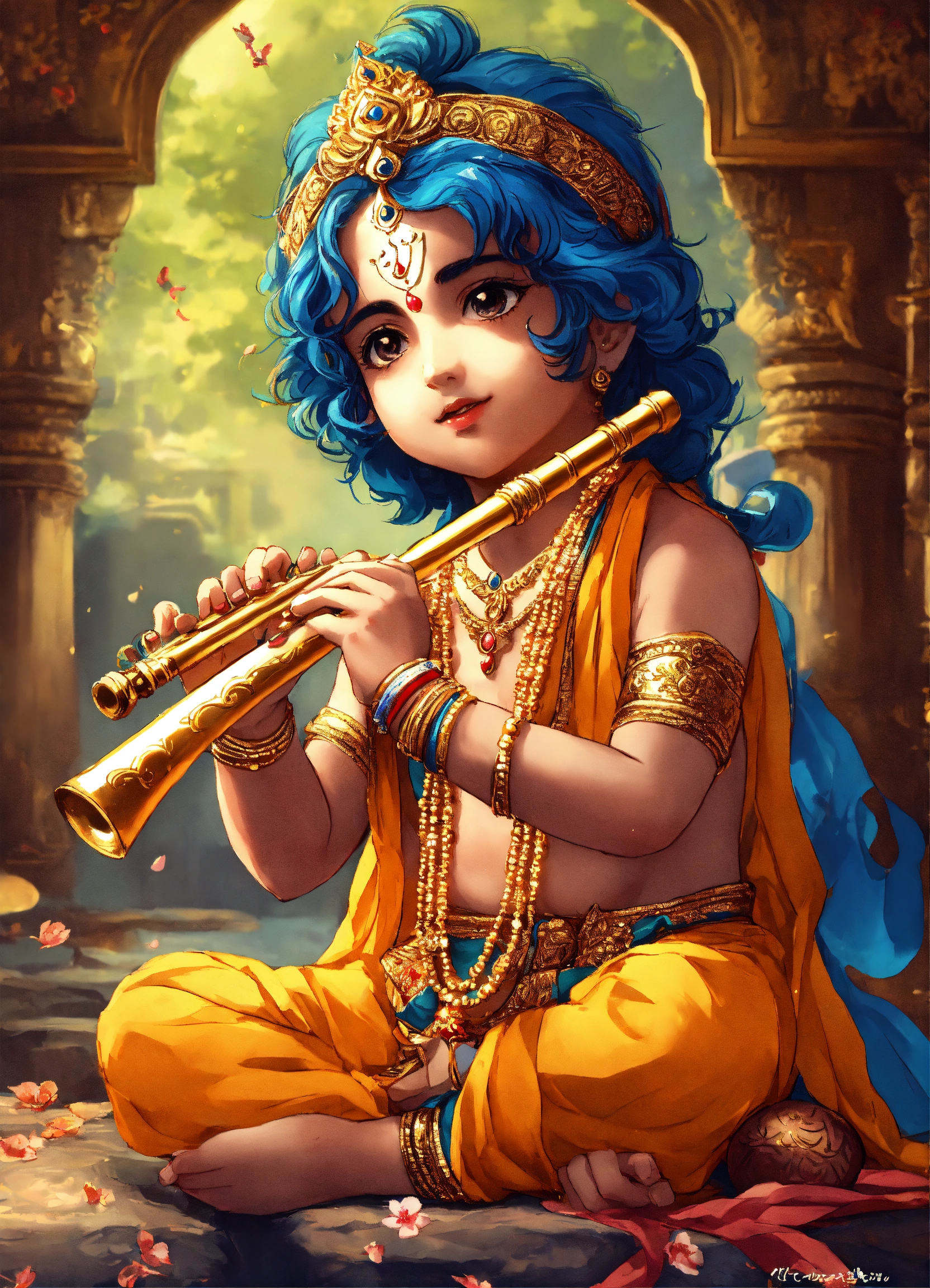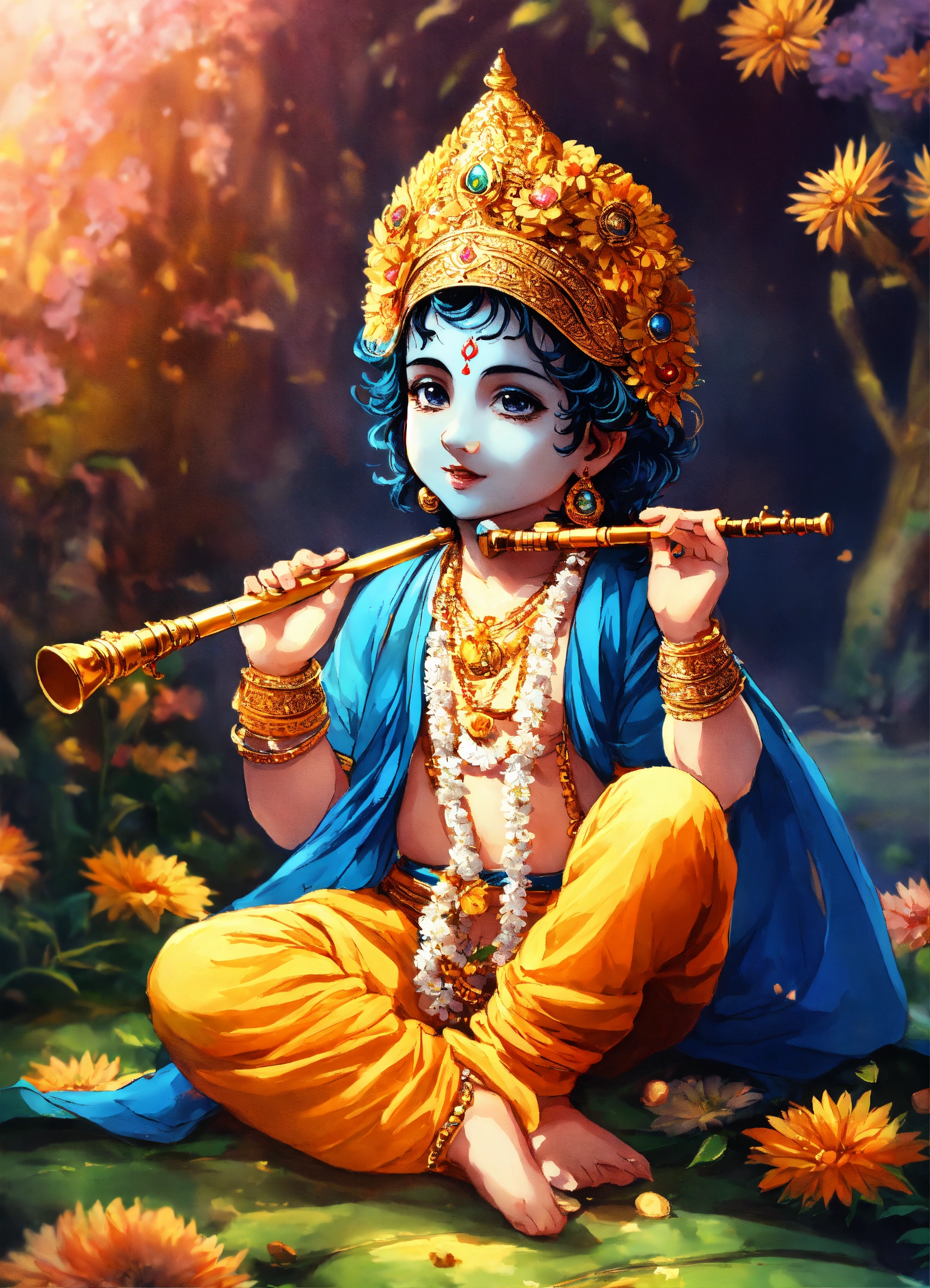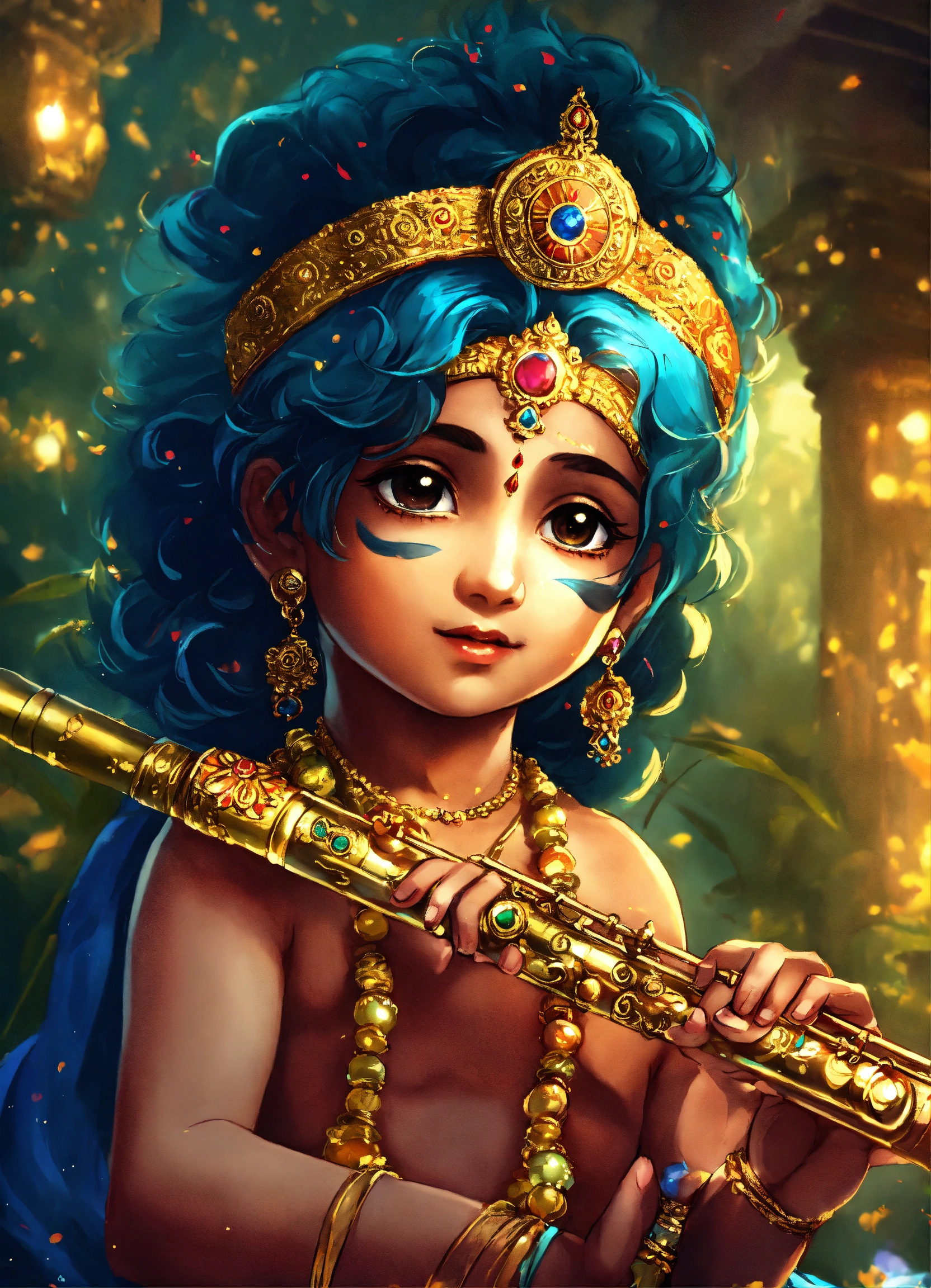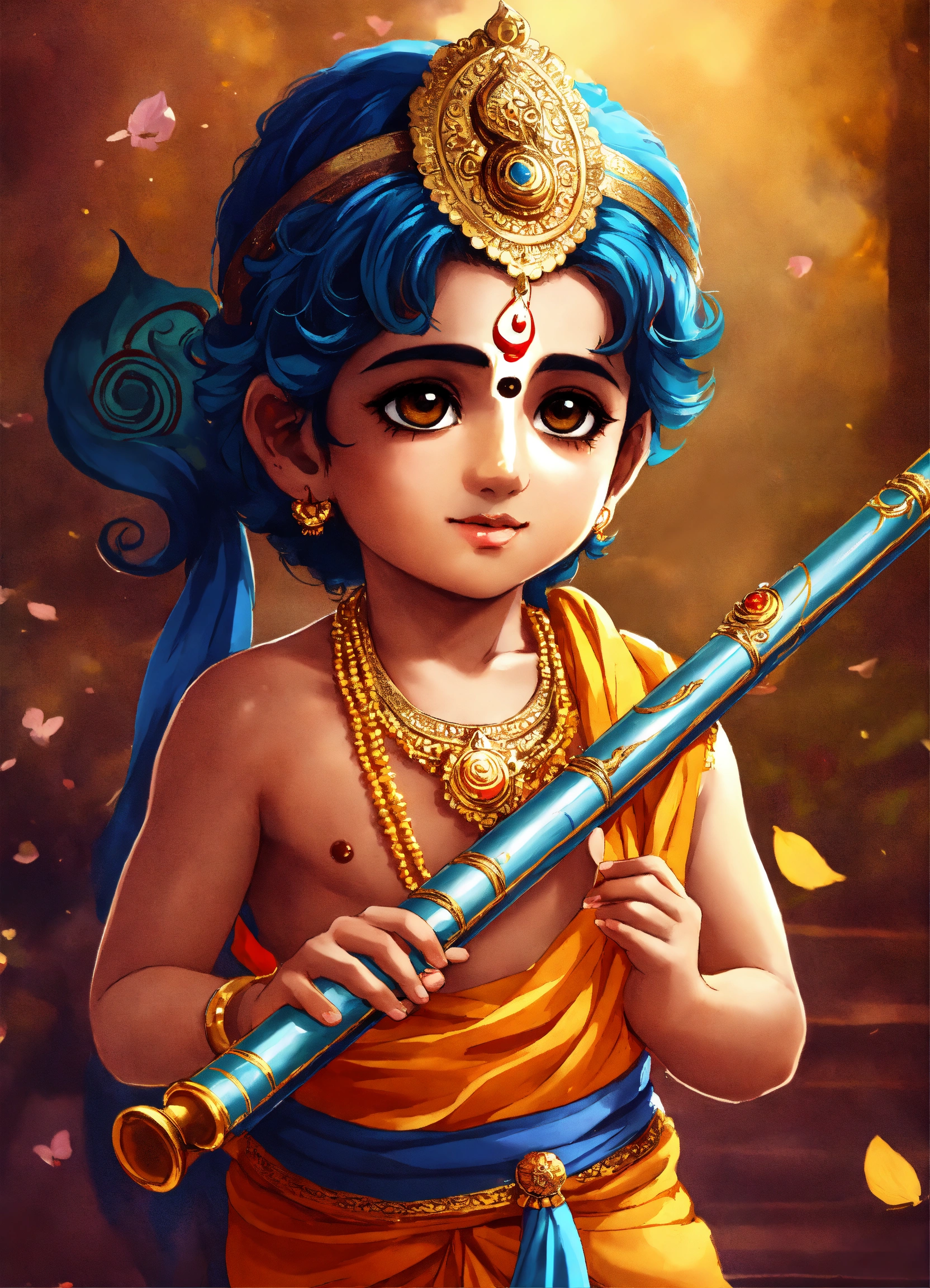 Lord krishna anime cute kid image with flute