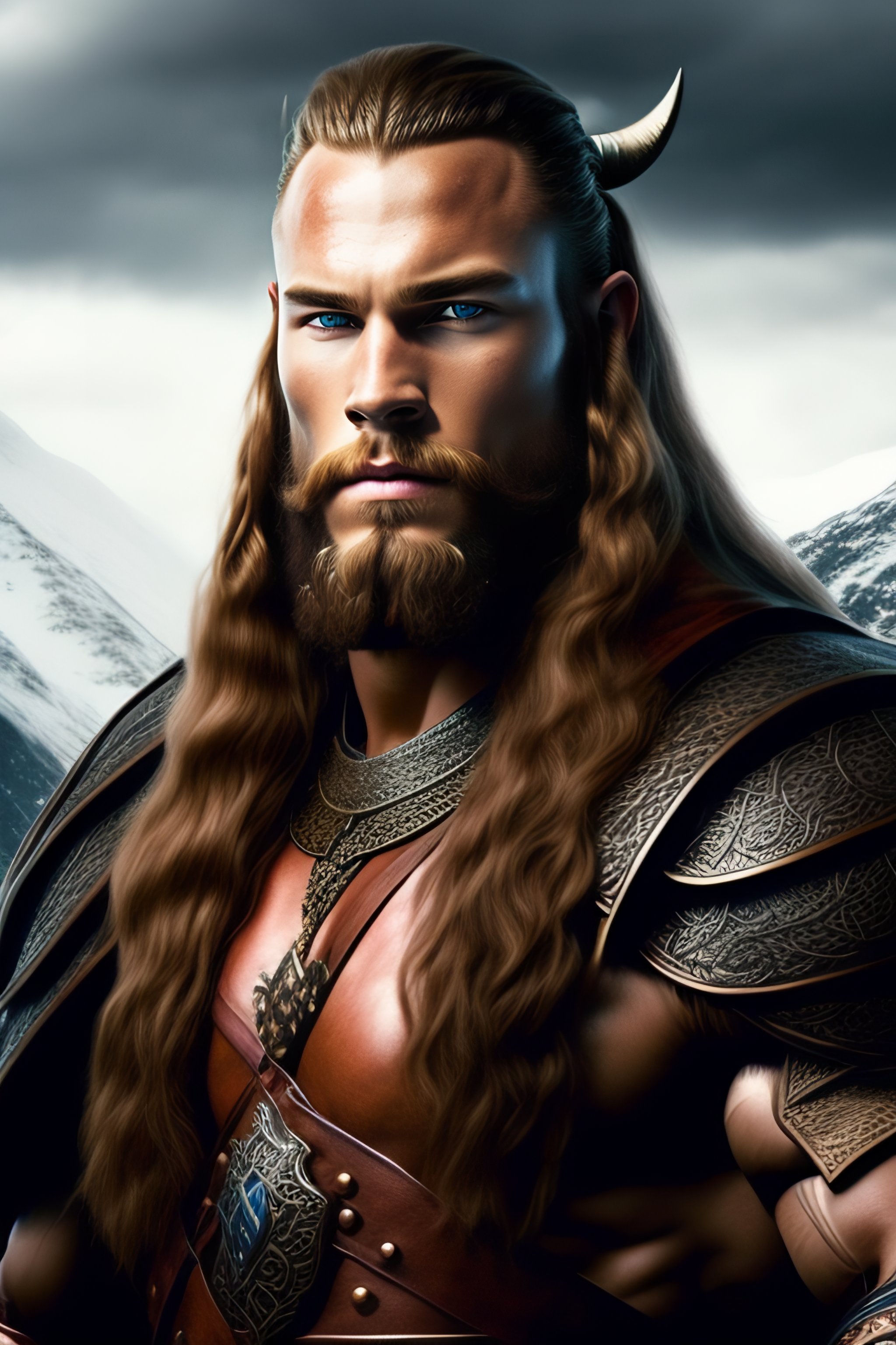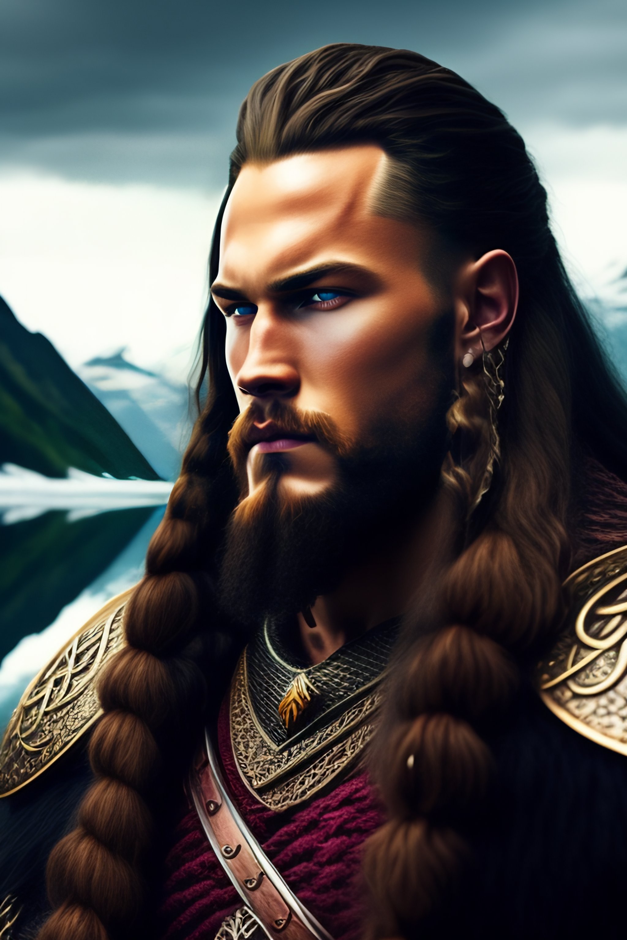 Arnold schwarzzeneger beast like a real viking, lord of the rings, norway lake, elden ring style, ragnar lothbrook valhalla