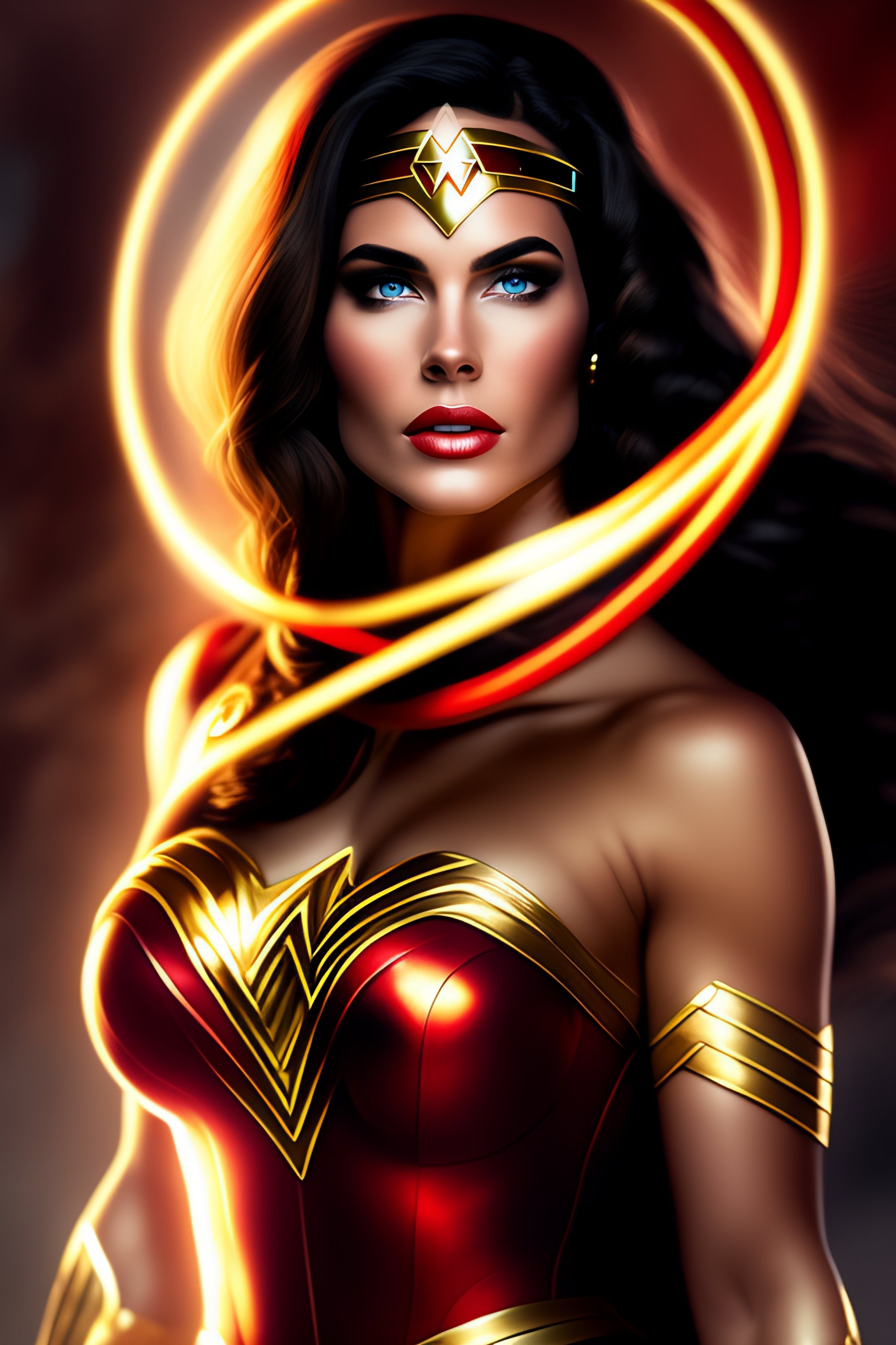 Hyper beautiful portrait of wonder woman with the lasso of truth