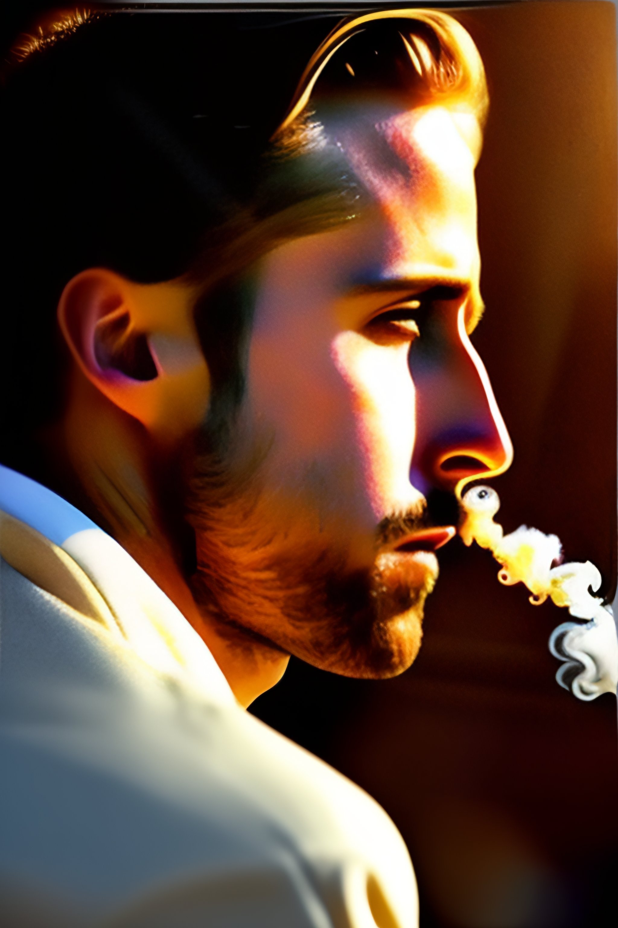 Ryan gosling smoking a cigarette