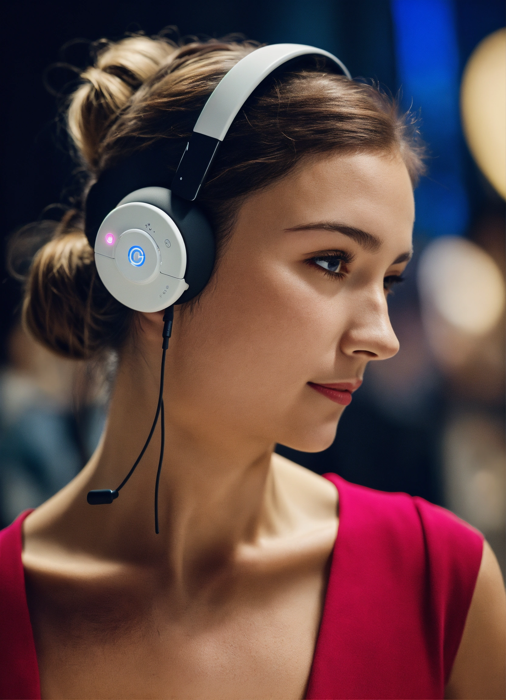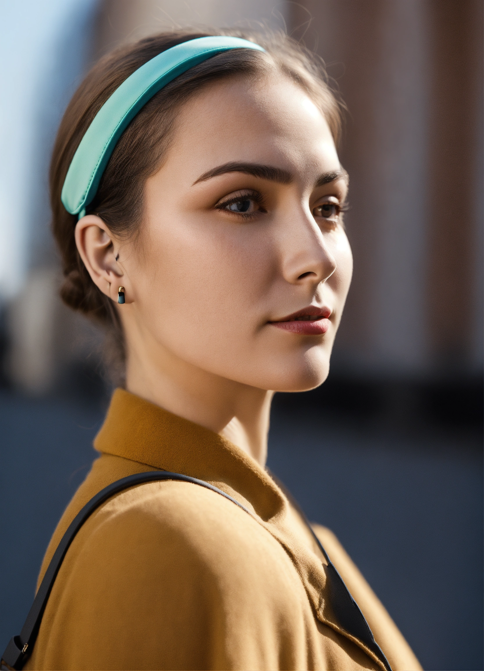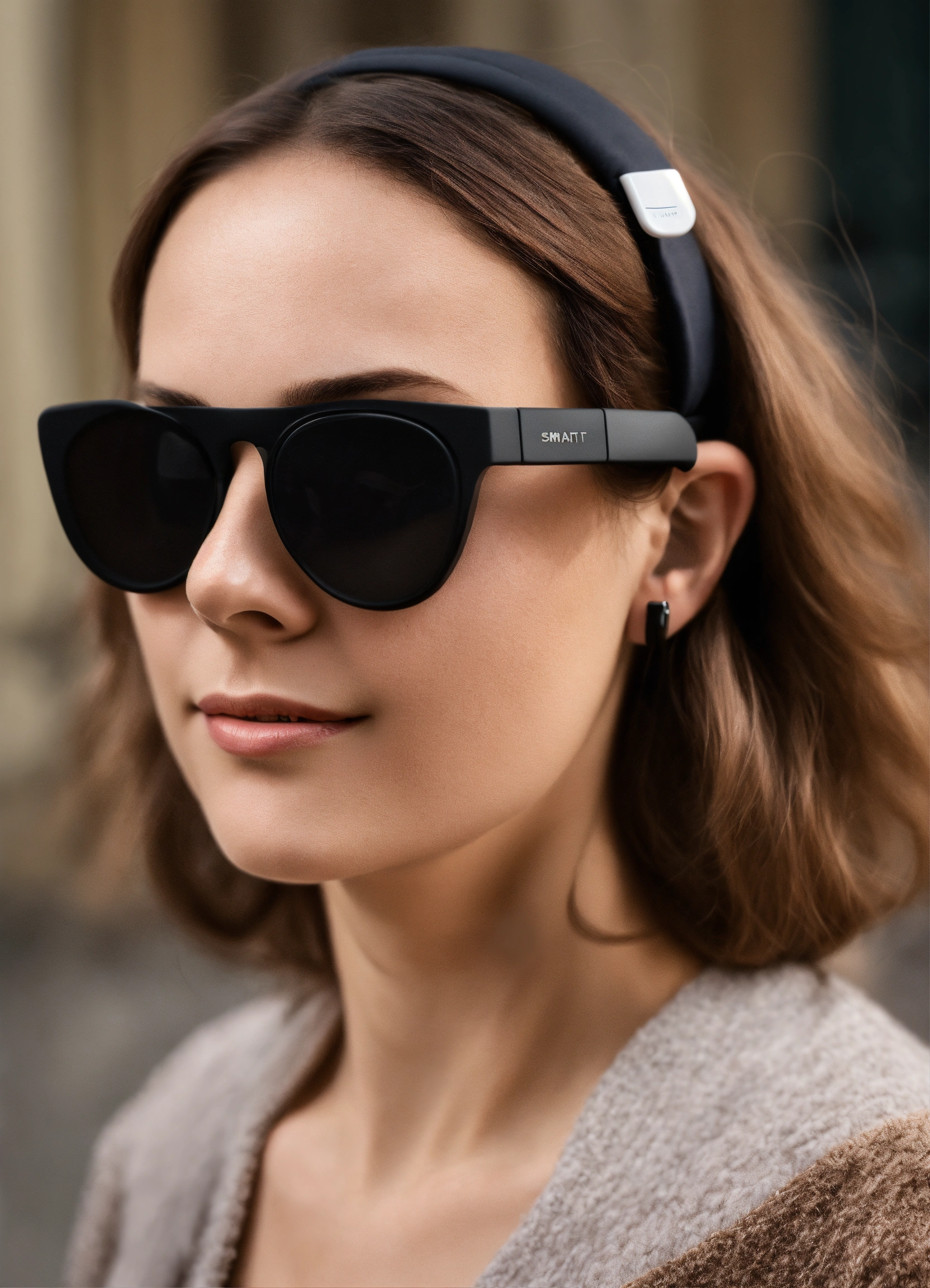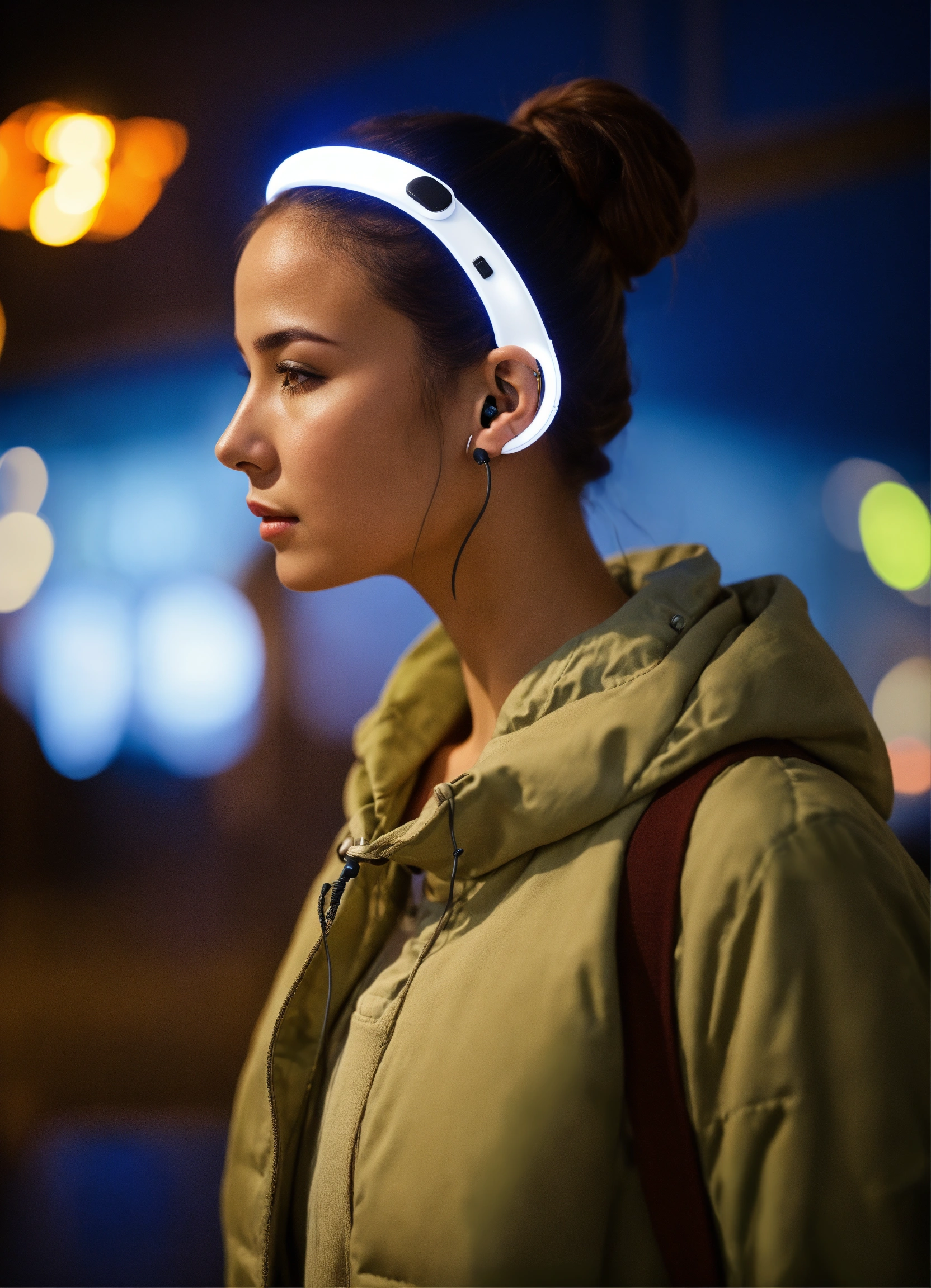 Smart elegant small headband on partially sighted individual with side and forward facing small cameras and small earpods