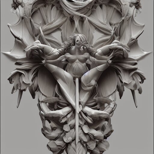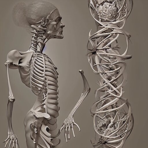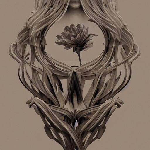 Beautiful classical decorative ornament, anatomy, energy, geometry, magnolia, bones, petals, stems, fibonacci rhythm, artstation, art germ, wlop