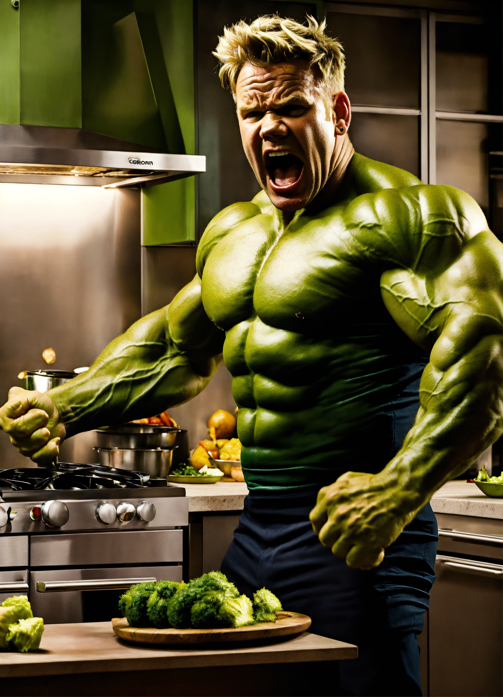 Gordon ramsay screaming at hulk in a kitchen