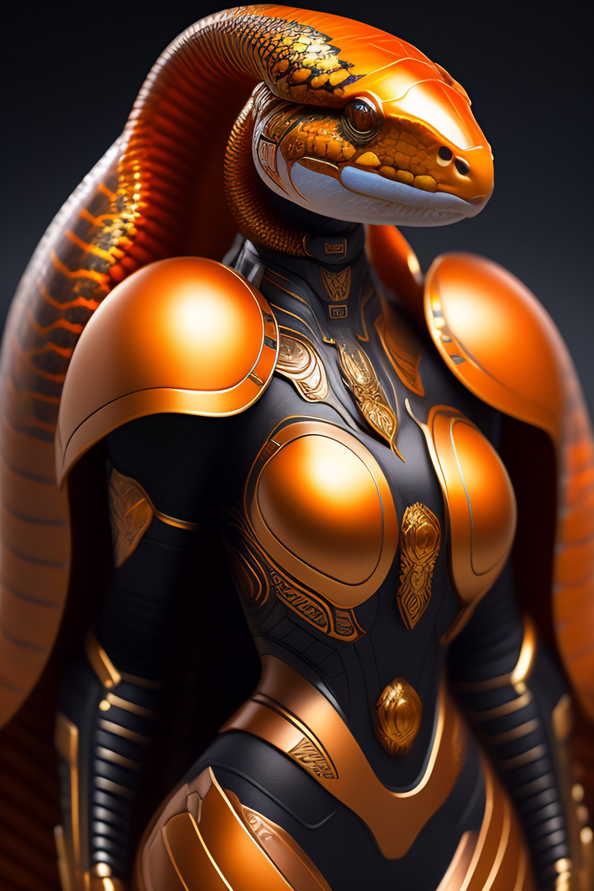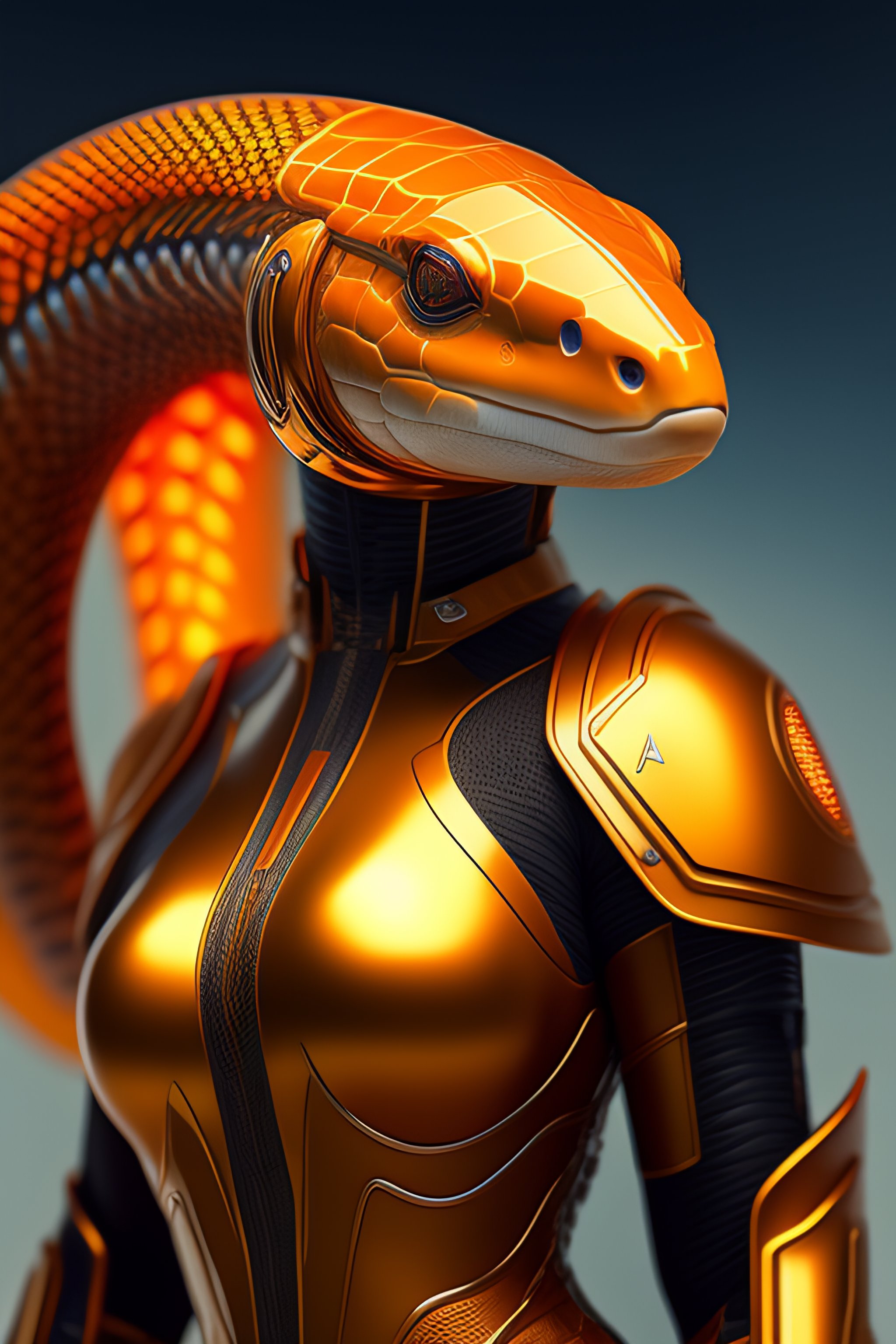 Portrait of a cybernetic orange snake a spiritual full body tortoise, sunburst arround head, deadly face with power armor, ultra realistic, concept art, intricate details, eerie, highly detailed, photorealistic, octane render, 8 k, unreal engine. art by artgerm and greg rutkowski and alphonse mucha