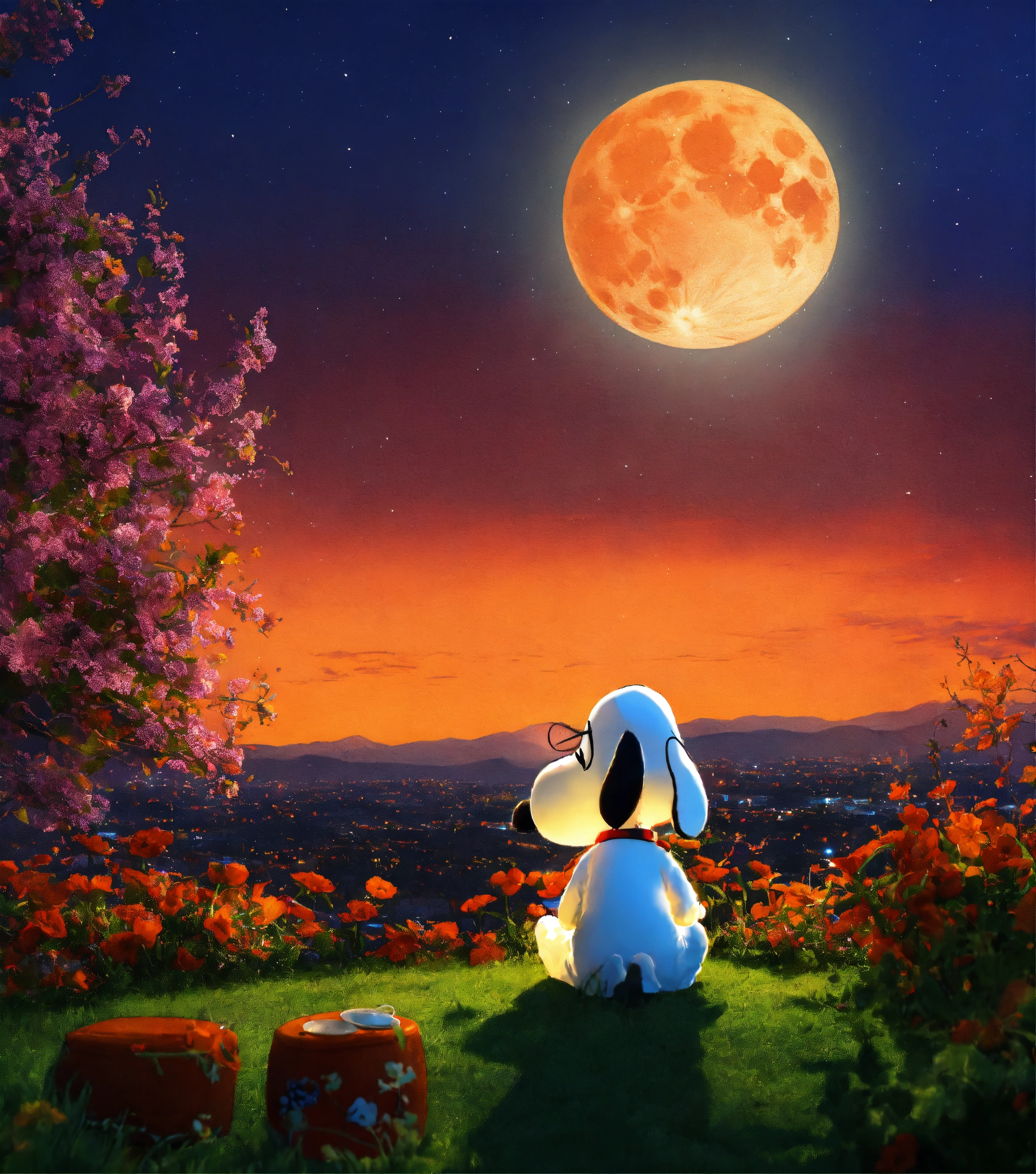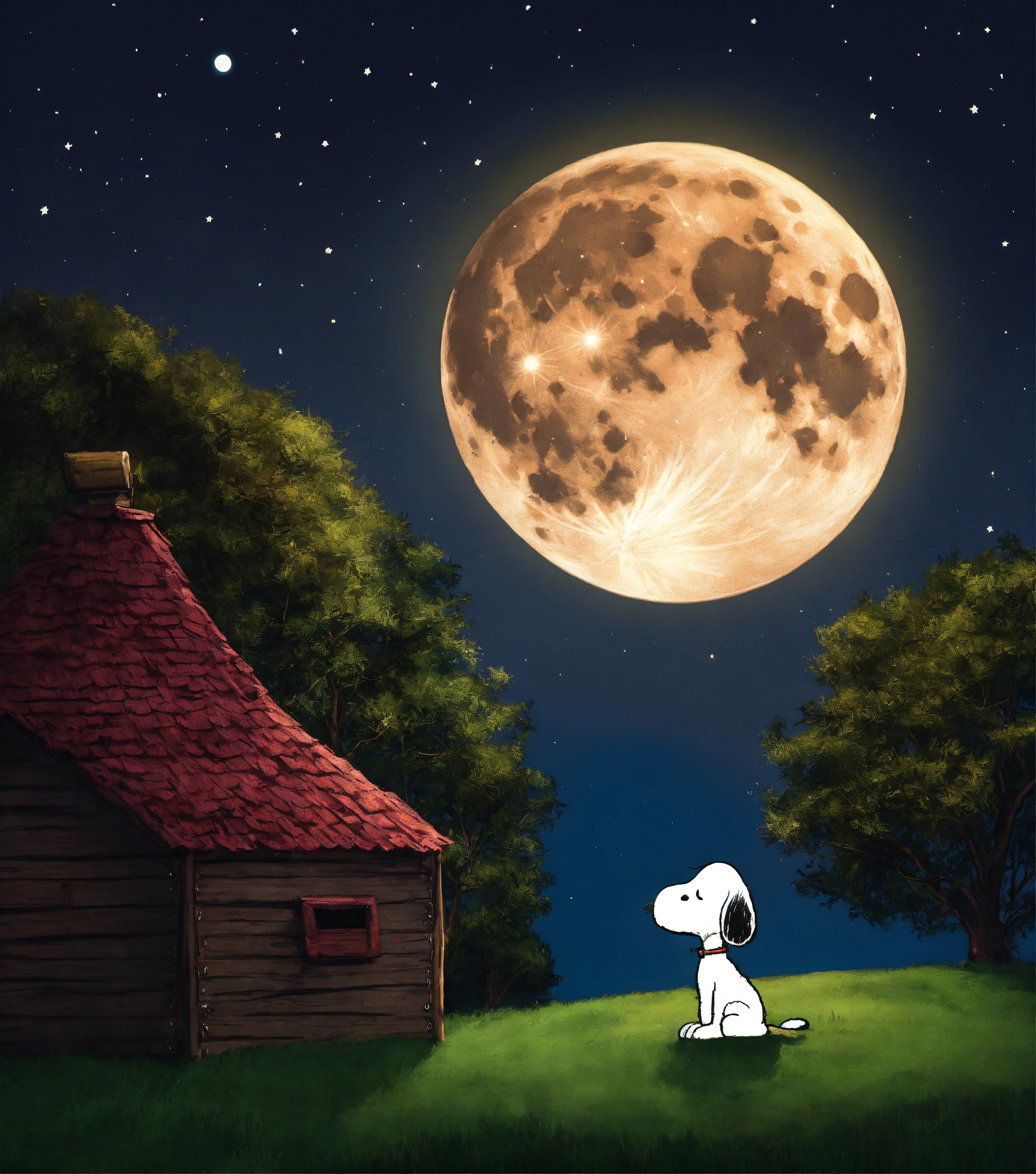 Snoopy under a full moon
