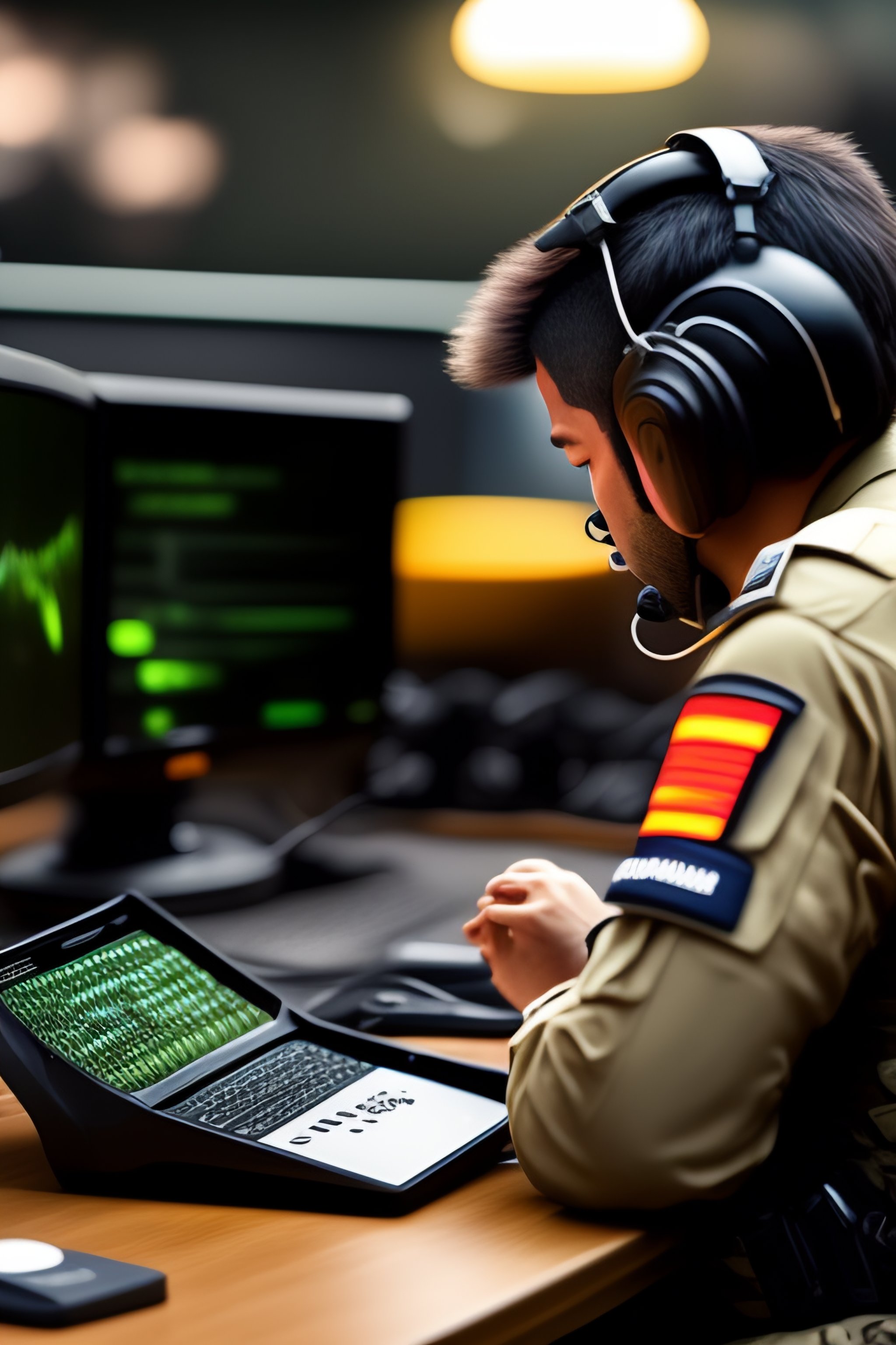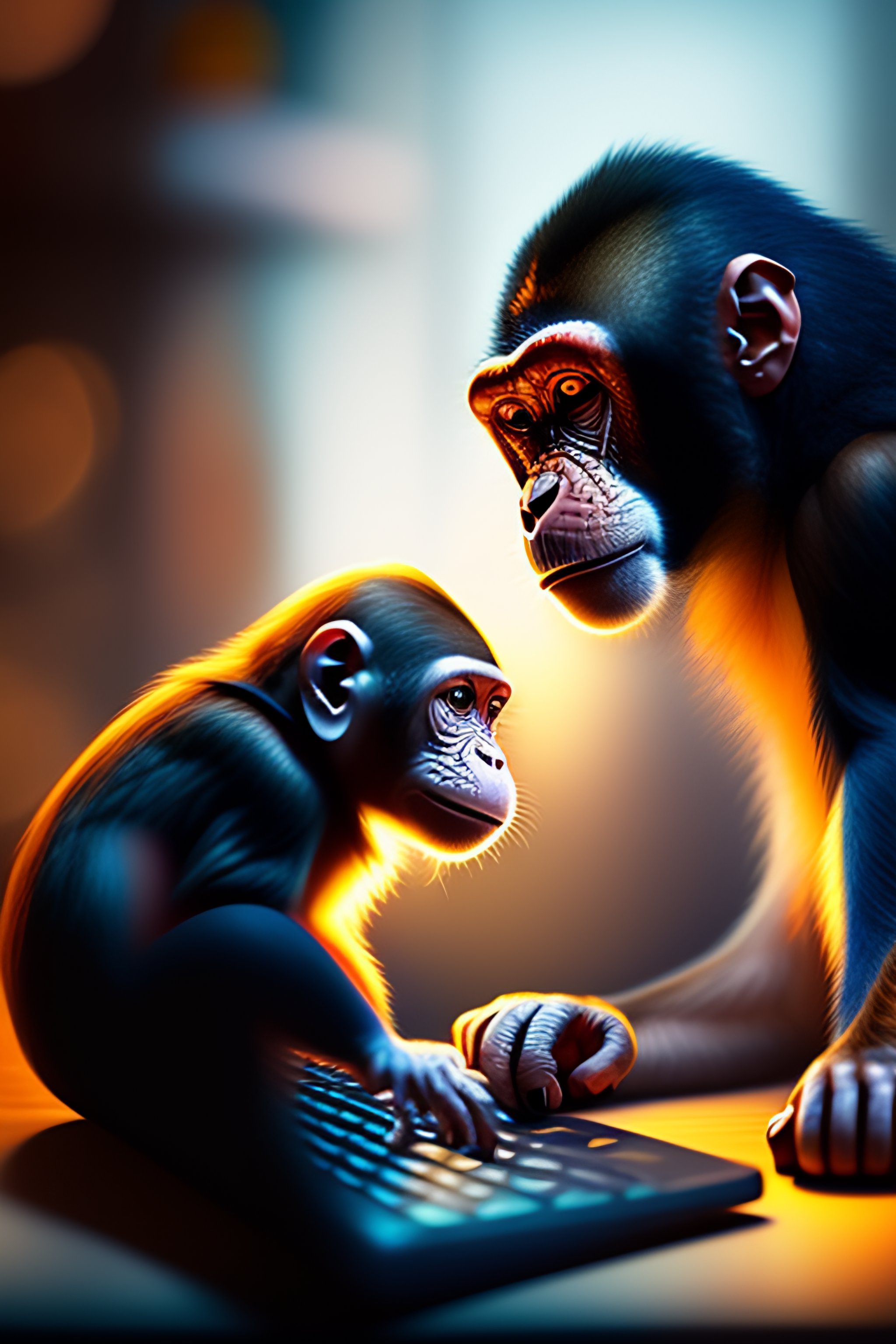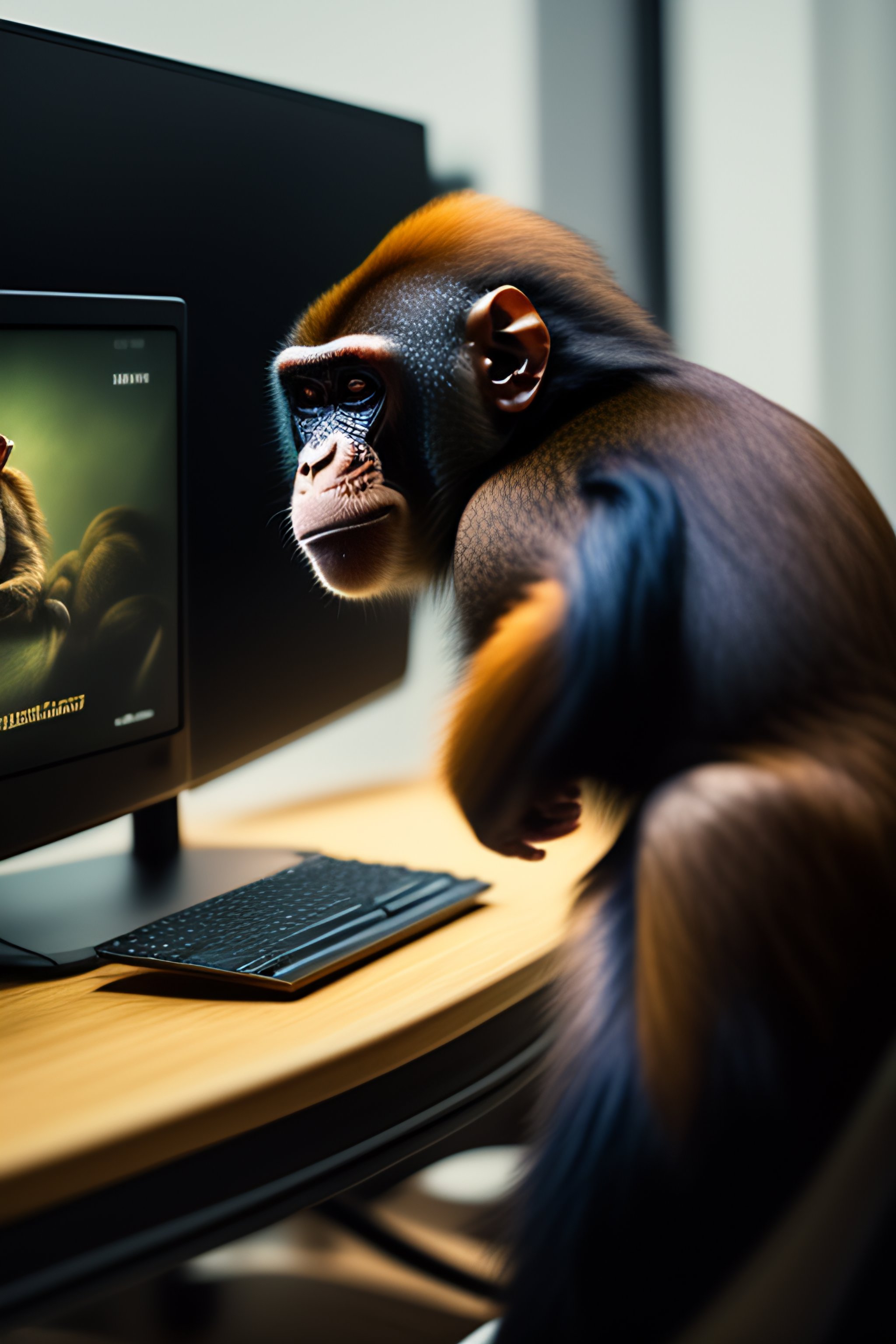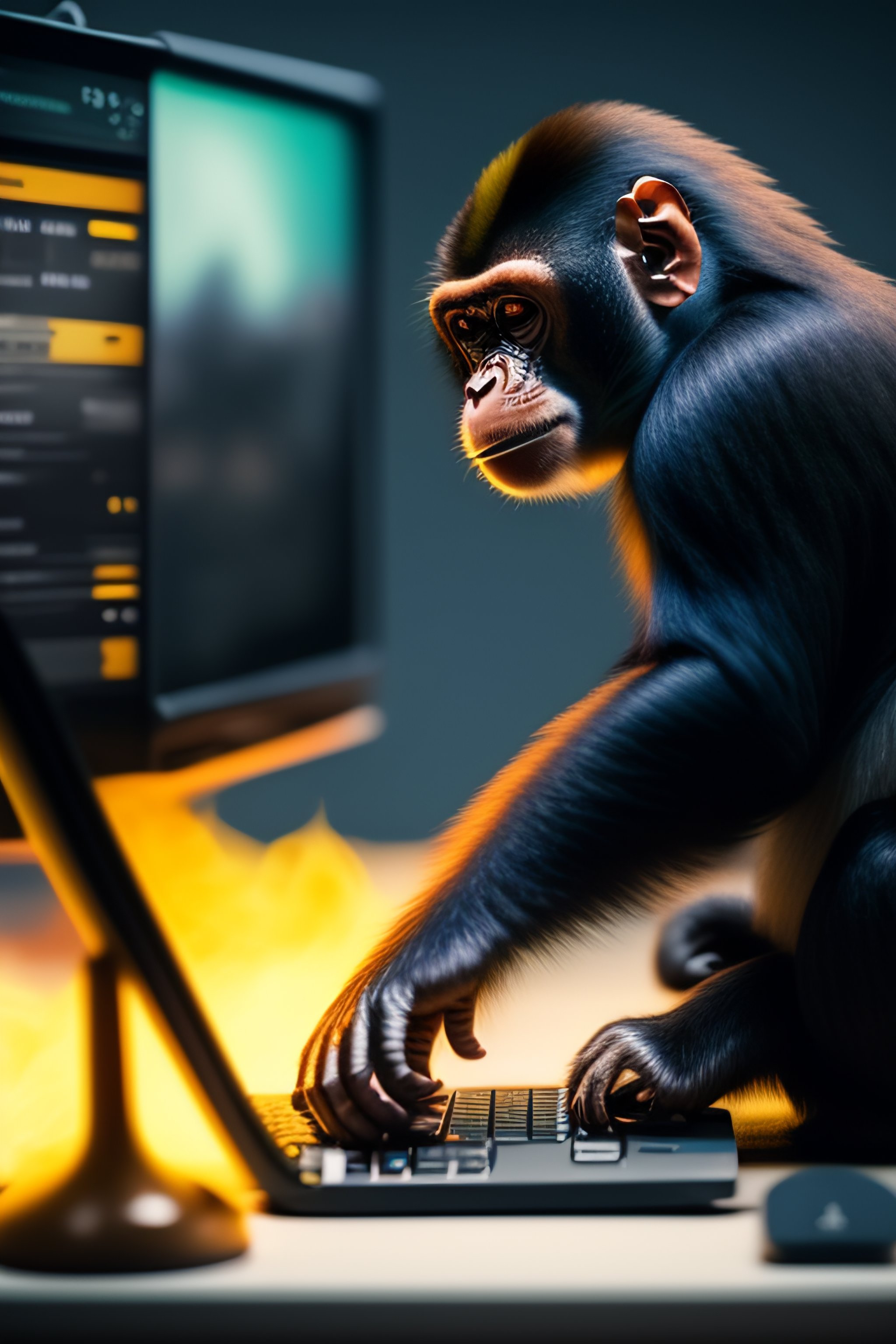 A monkey with a pschent playing counter-strike on computer