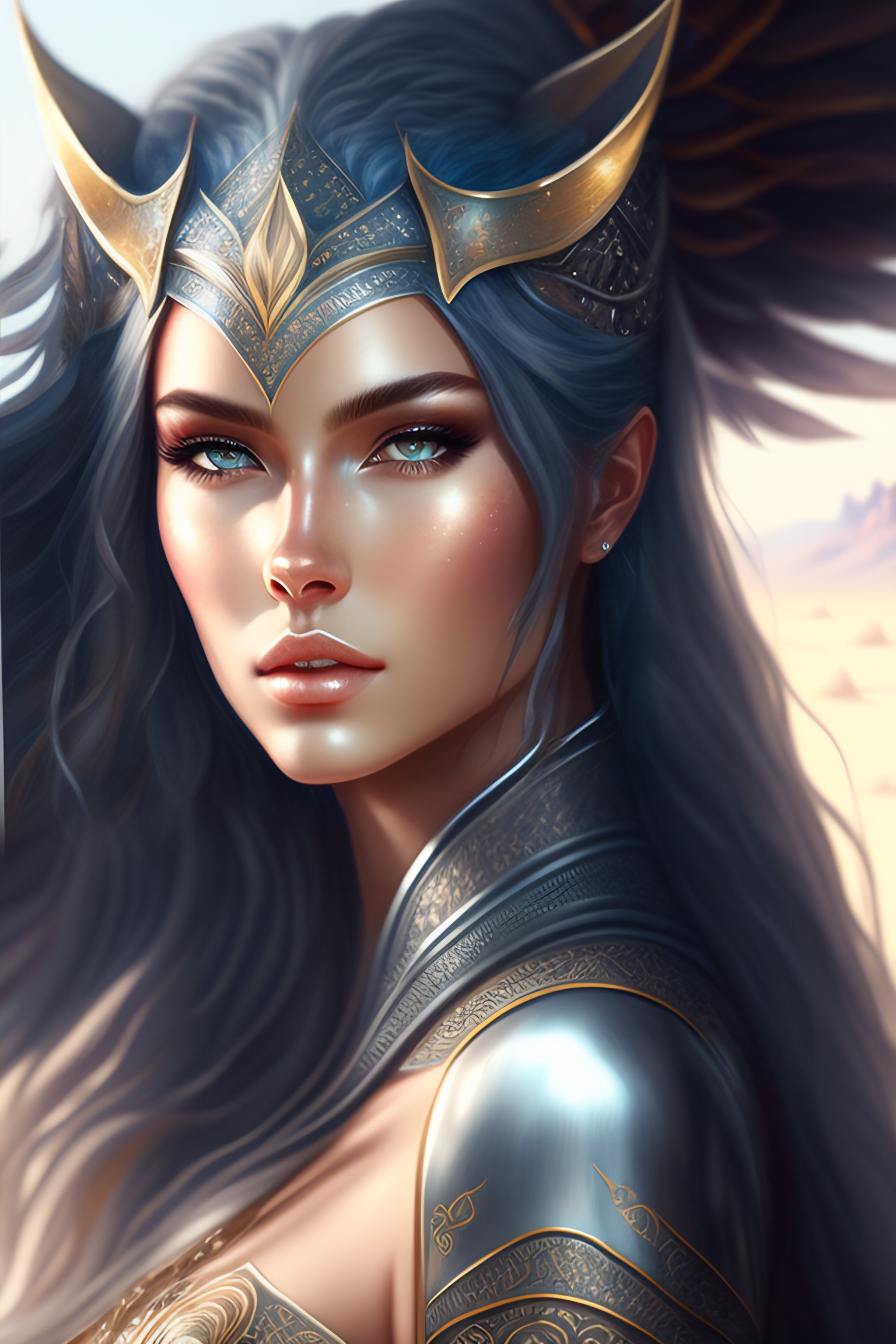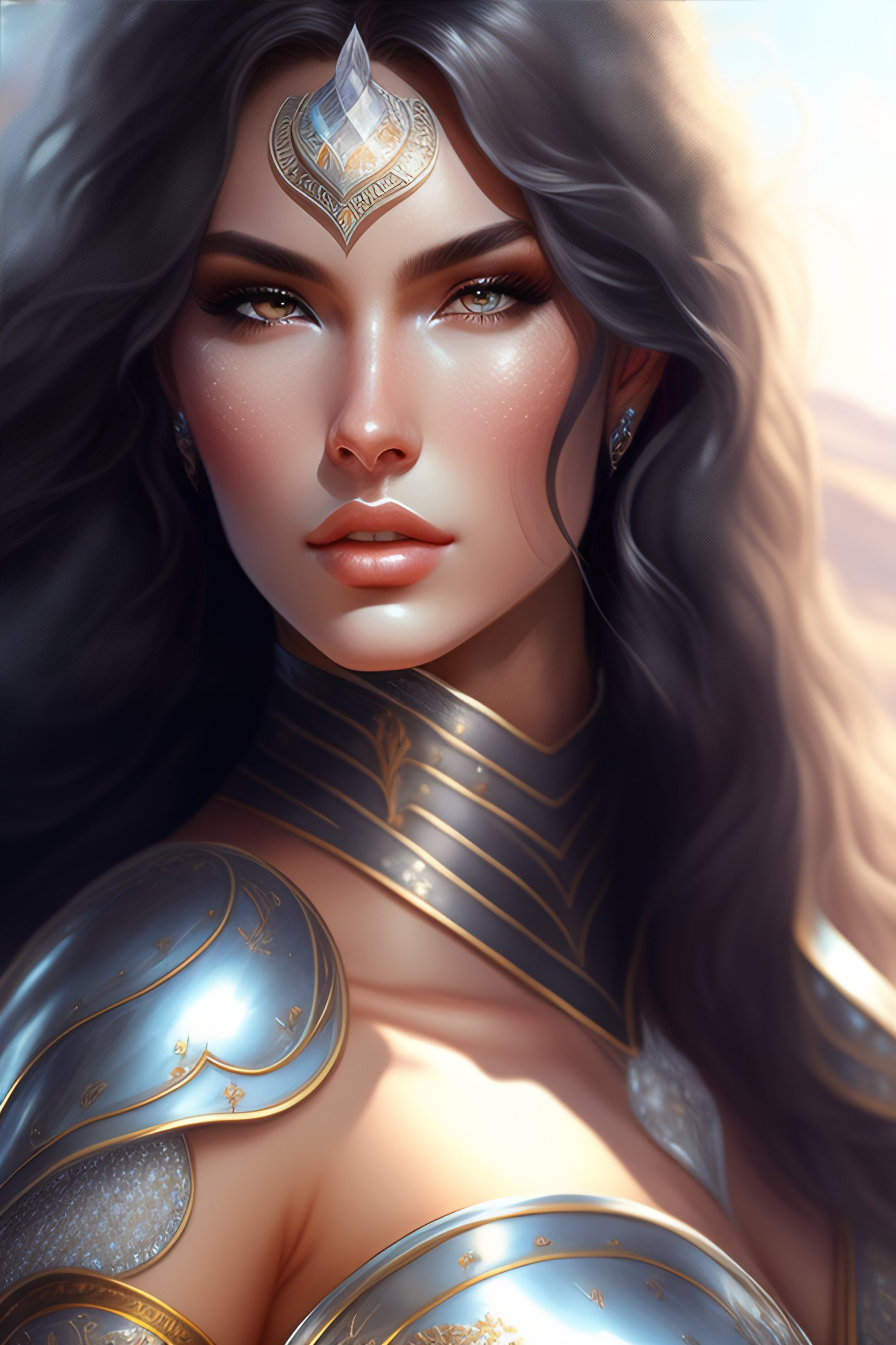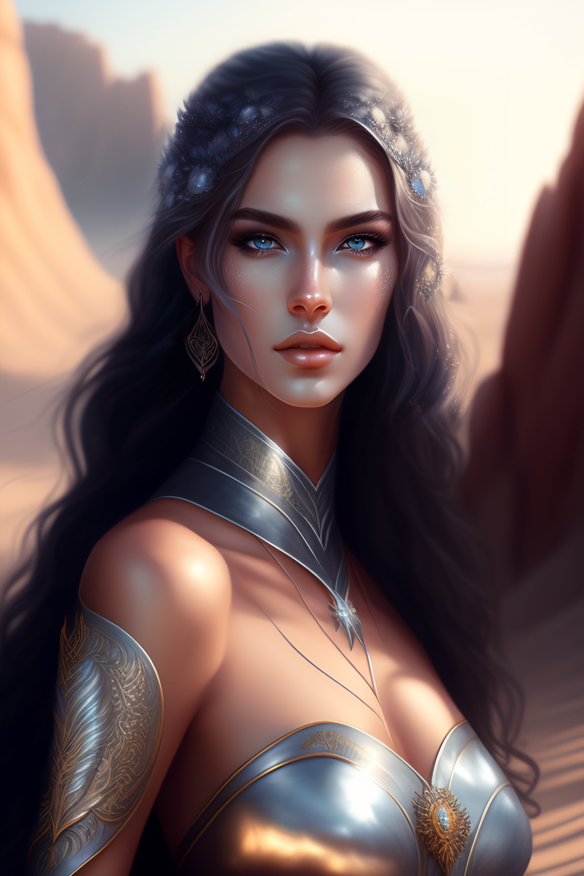 Beautiful fair skinned female, silver intricately detailed shining armor, fantasy, sharp focus, digital painting, art by wlop, desert background