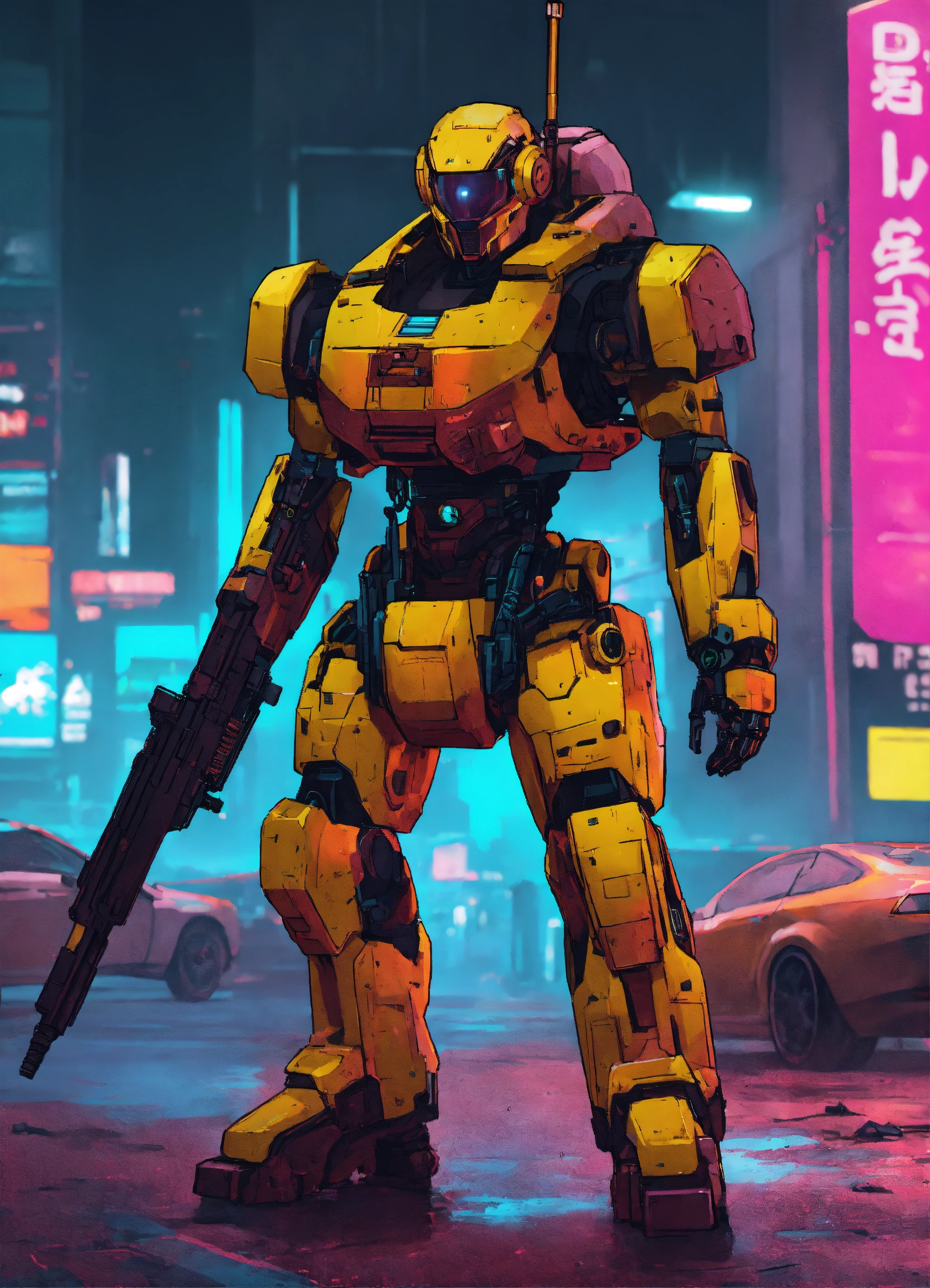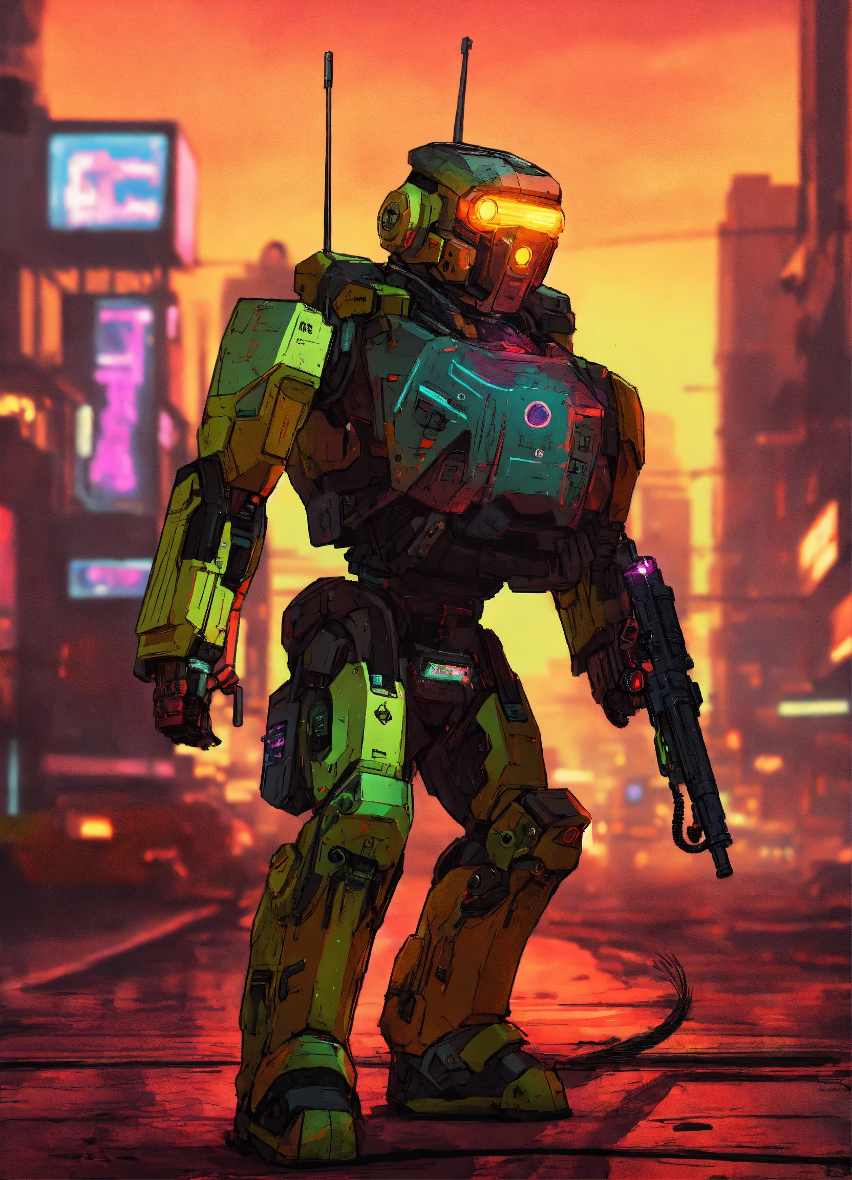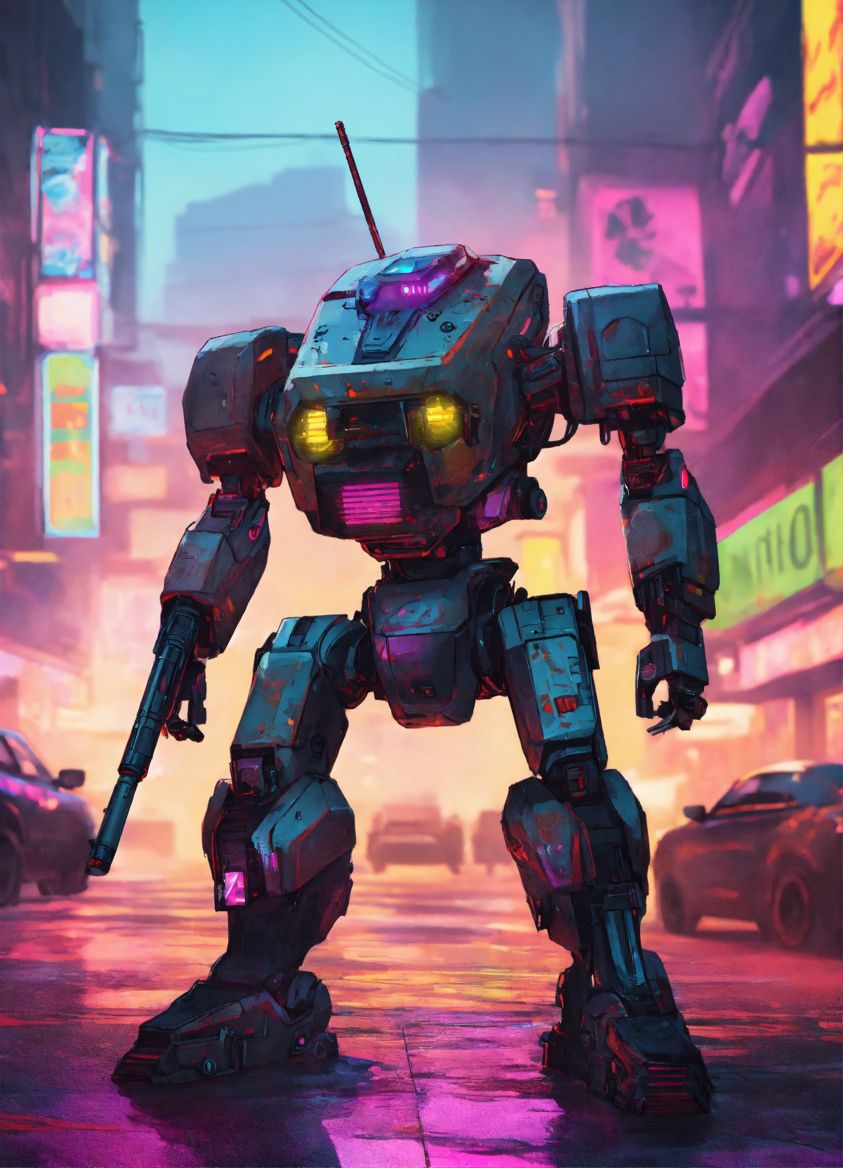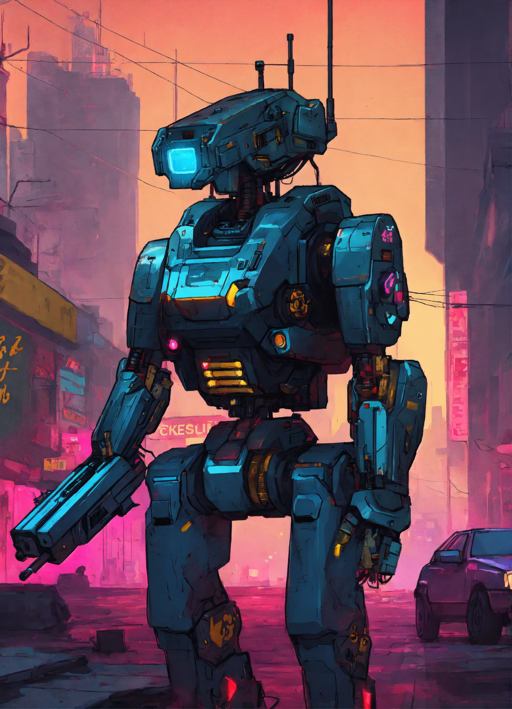 Cyberpunk combat robot done in gta art style