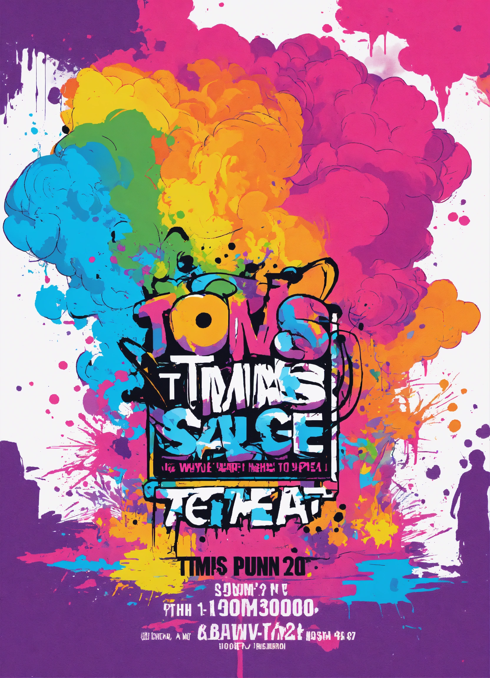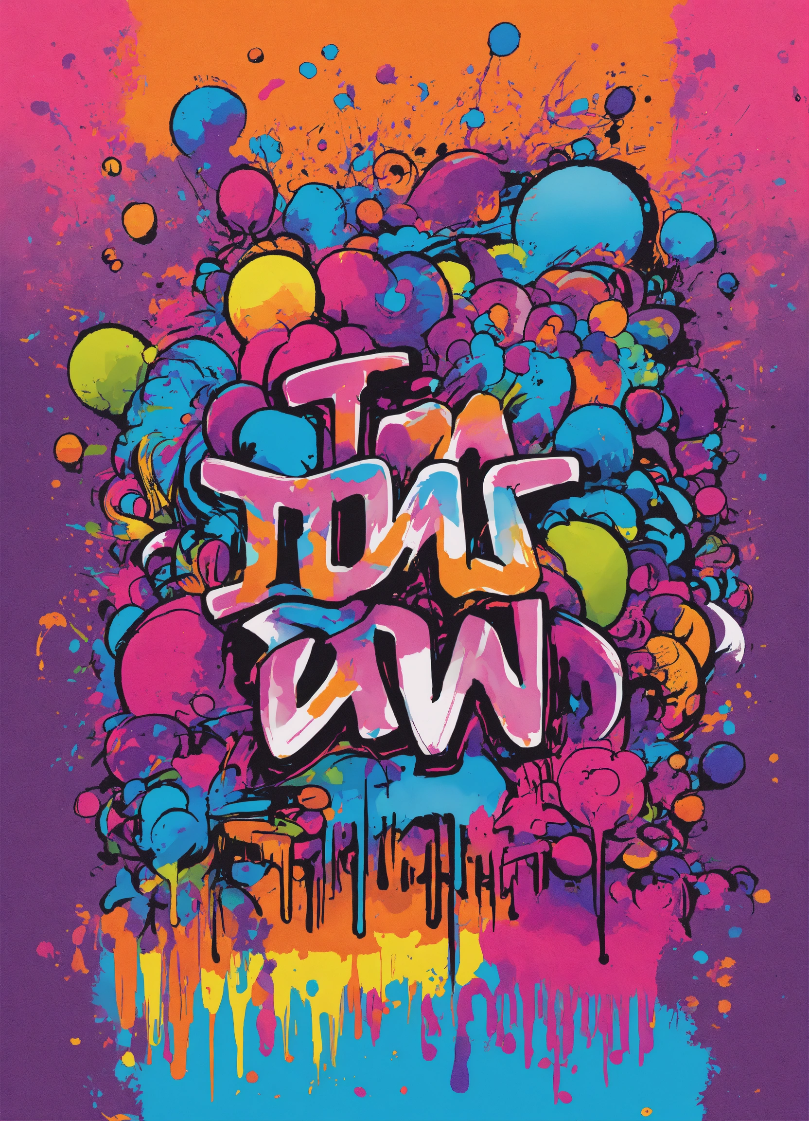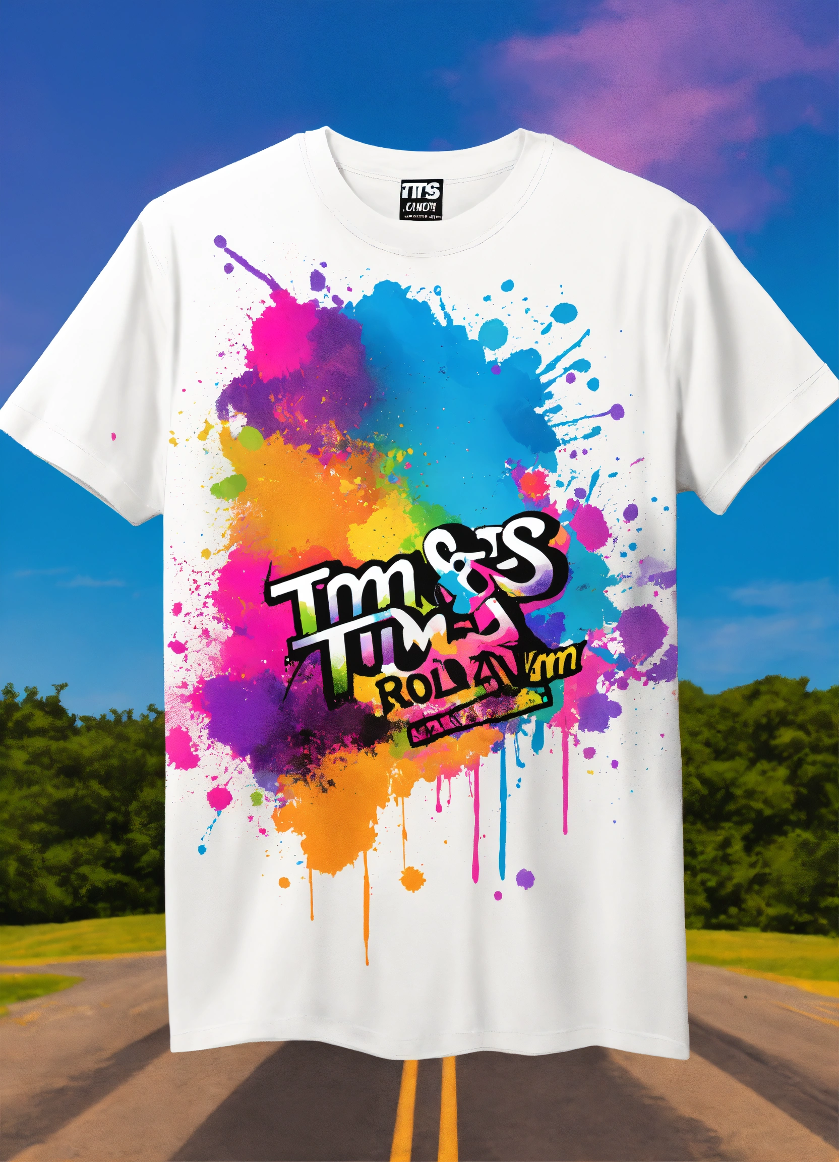 T-shirt design for a color run event. on a white t-shirt, with black, pink, blue, orange and purple colors. text on the shirt should say tms on top and colorpalooza underneath it. theme should be graffitti