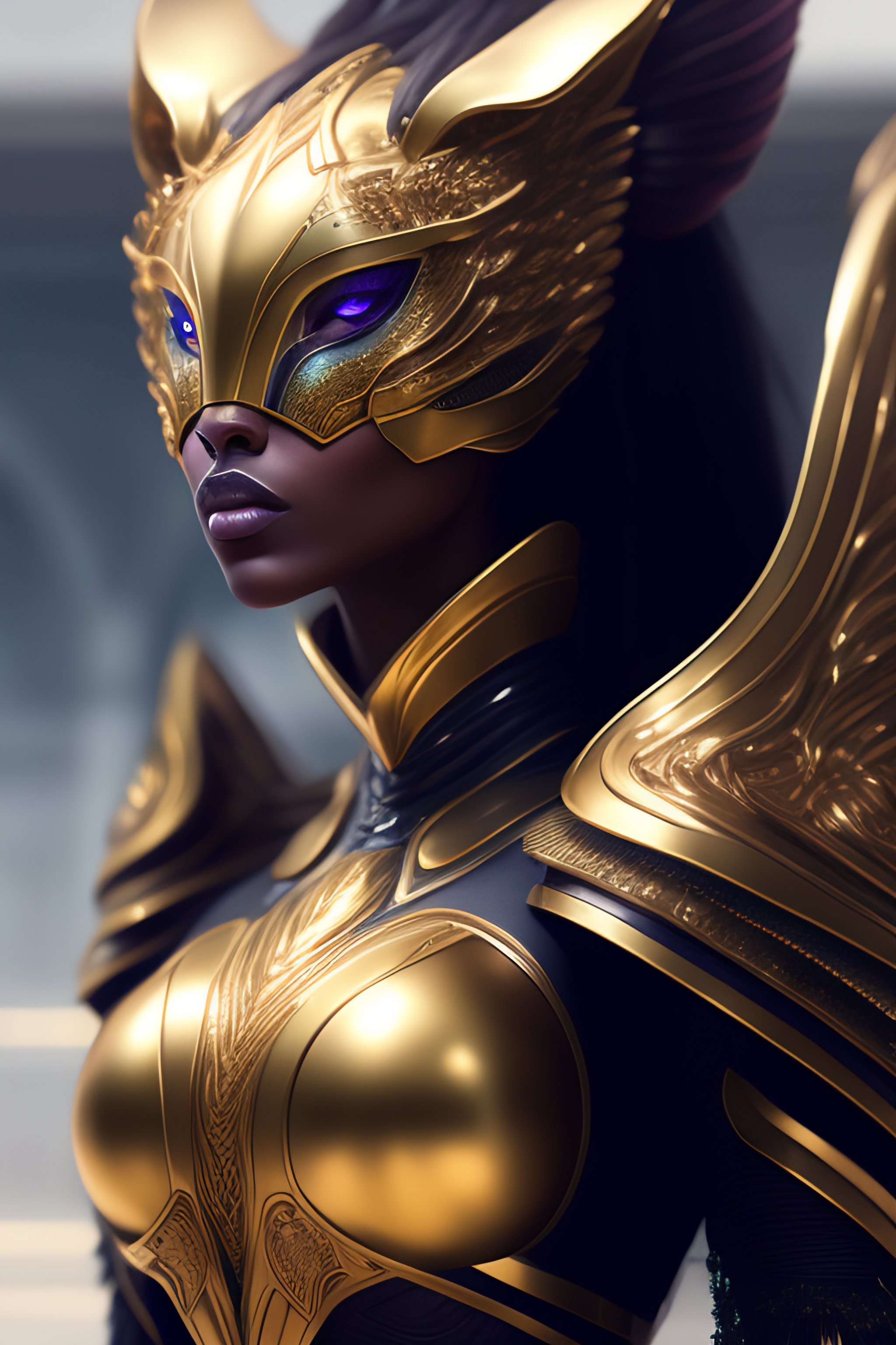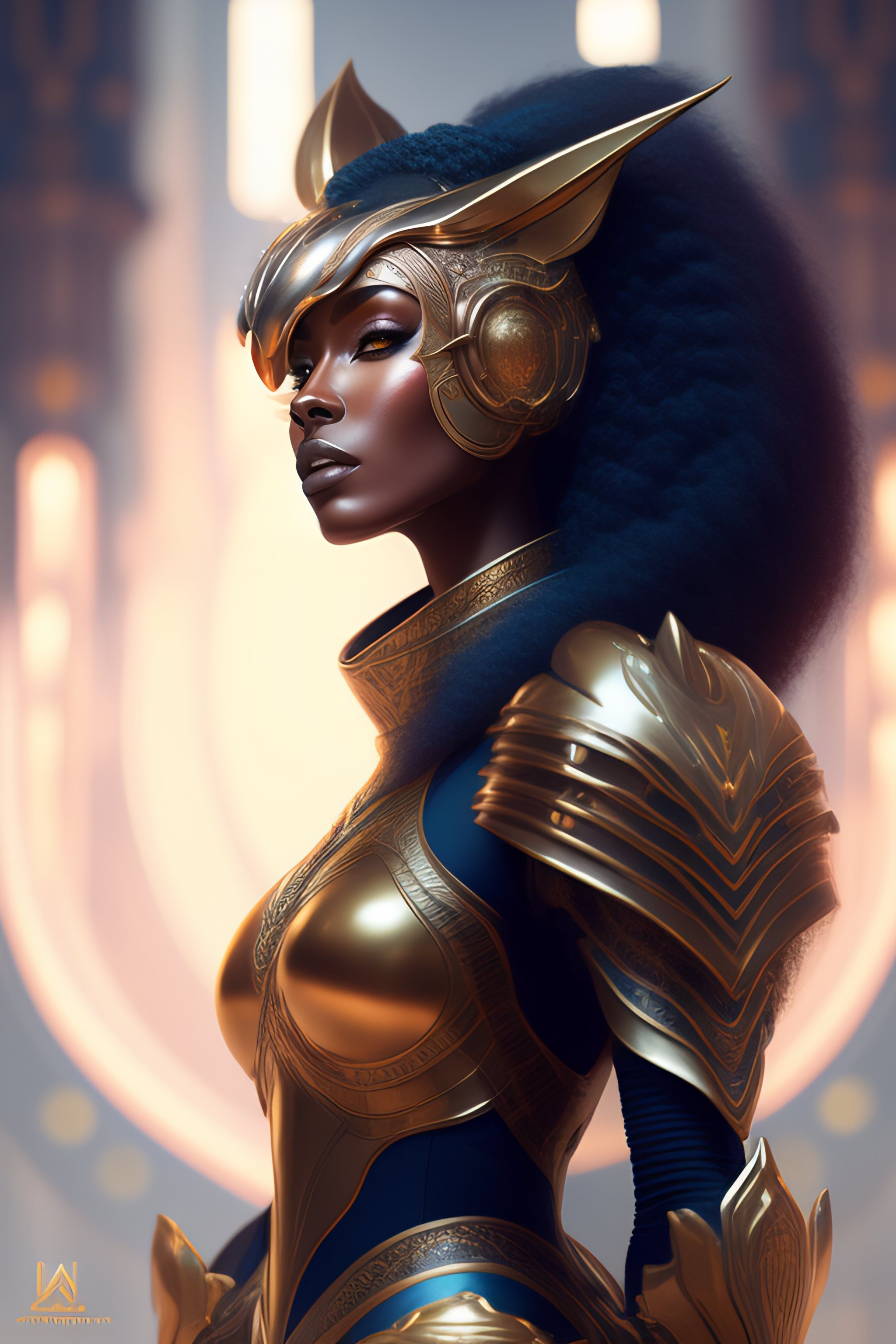 Alien lion in futuristic armor, portrait, fantasy, intricate, elegant, highly detailed, digital painting, artstation, concept art, smooth, sharp focus, illustration, art by artgerm and greg rutkowski and alphonse mucha