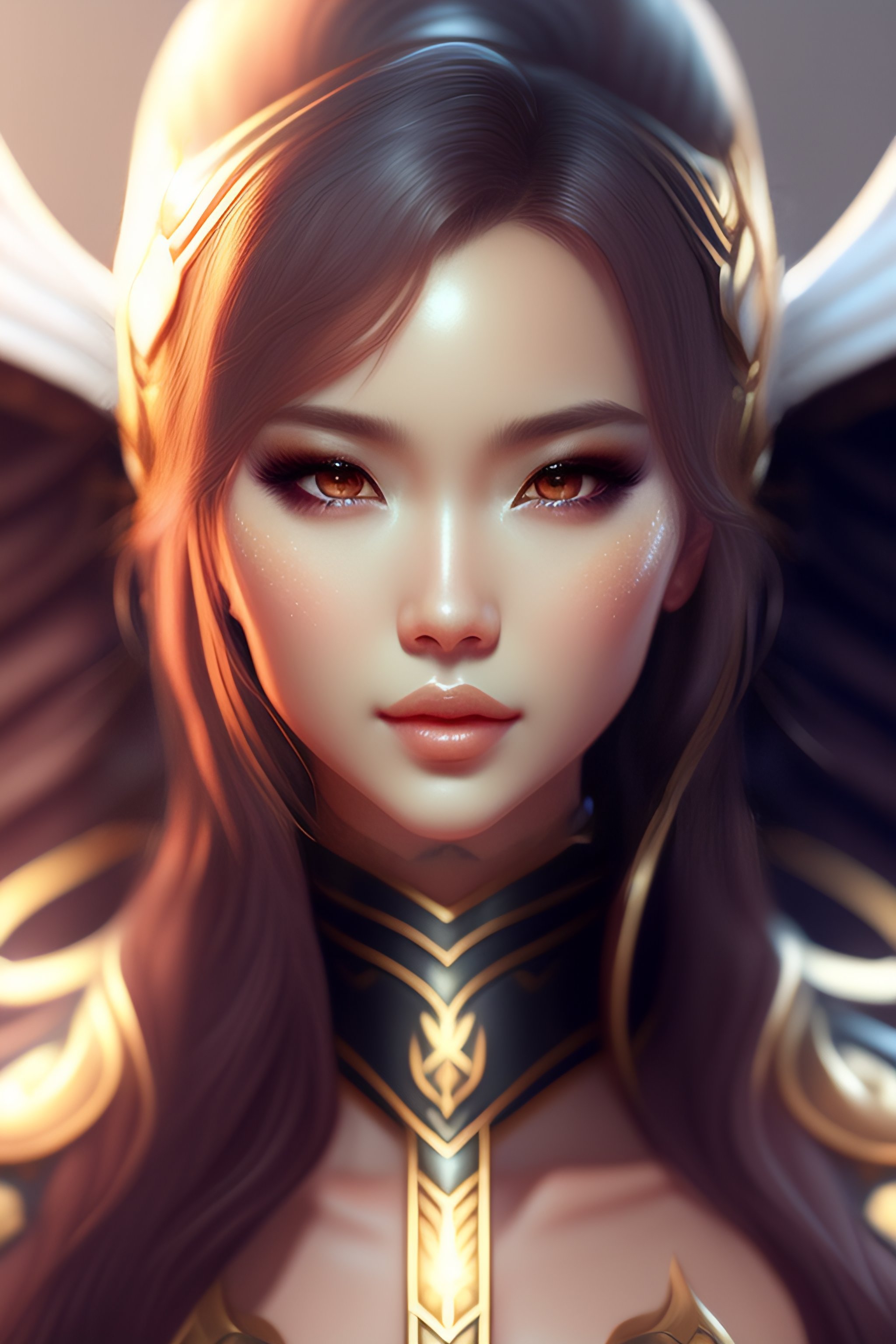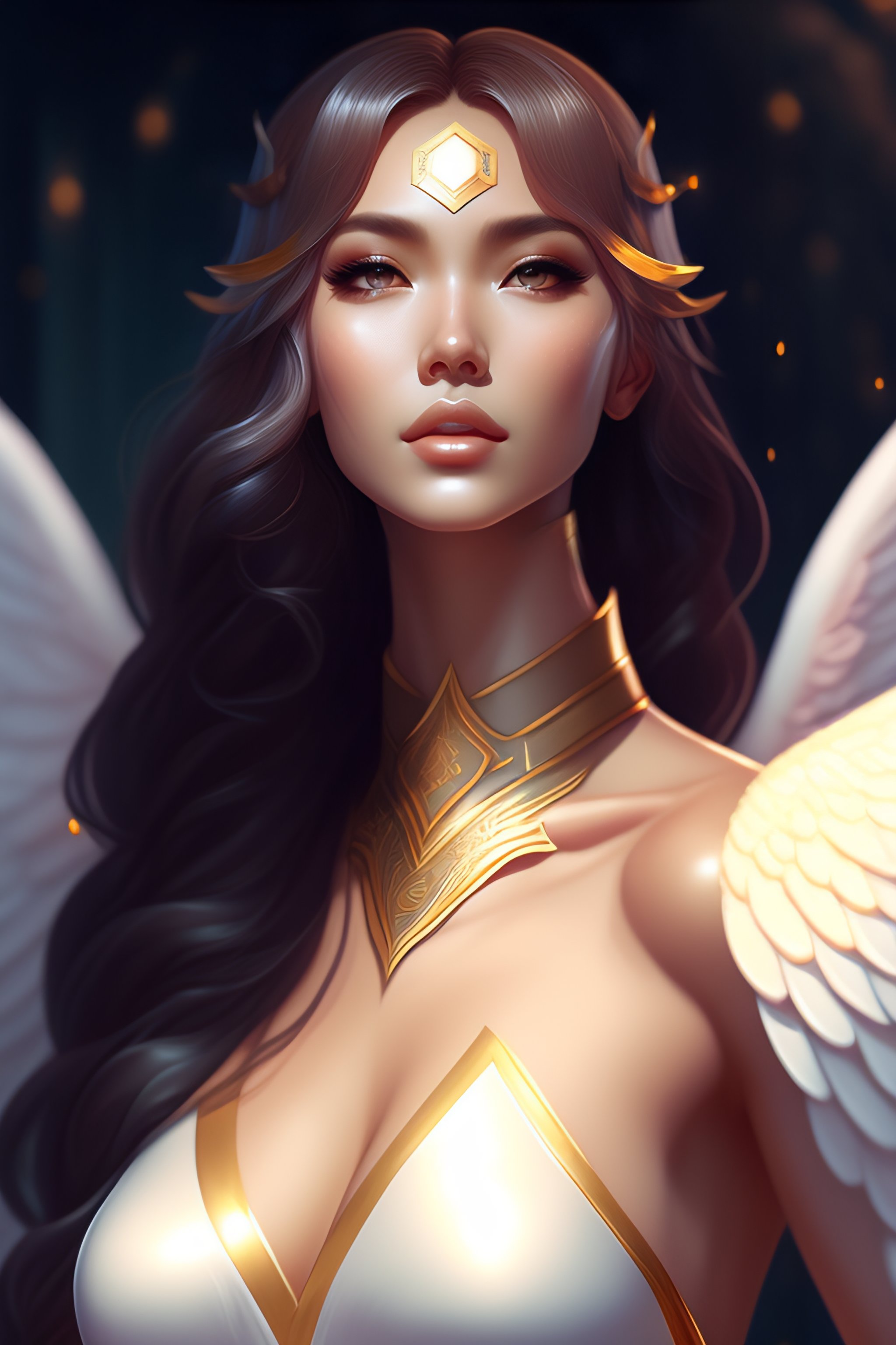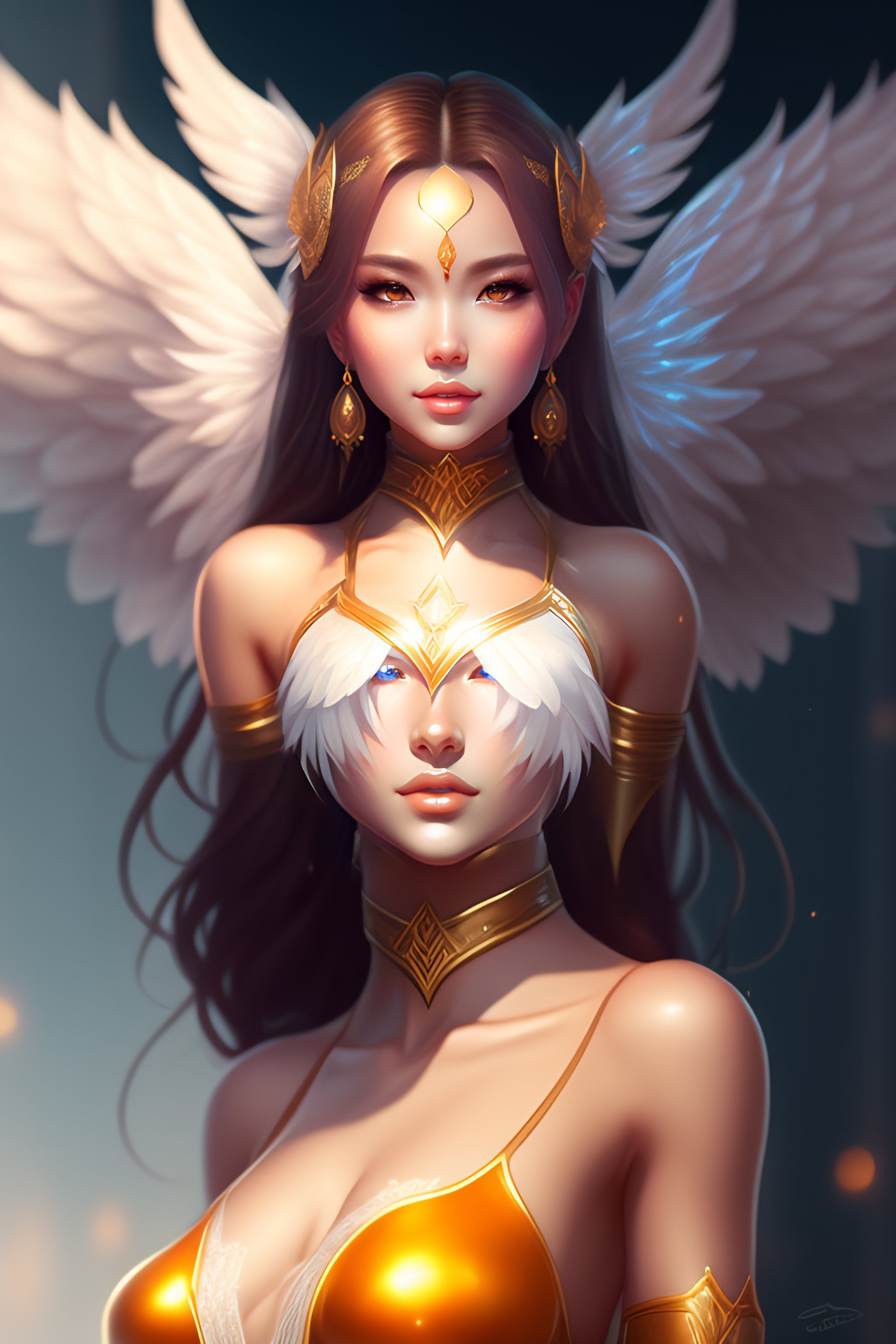 Fantasy female angel, custom character art, digital drawing, character drawing, artstation, concept art, 8k, symmetry, symmetrical, symmetric, full body portrait, highly detailed, complete body composition, fanart, realistic, rossdraws style. wlop style, pixiv