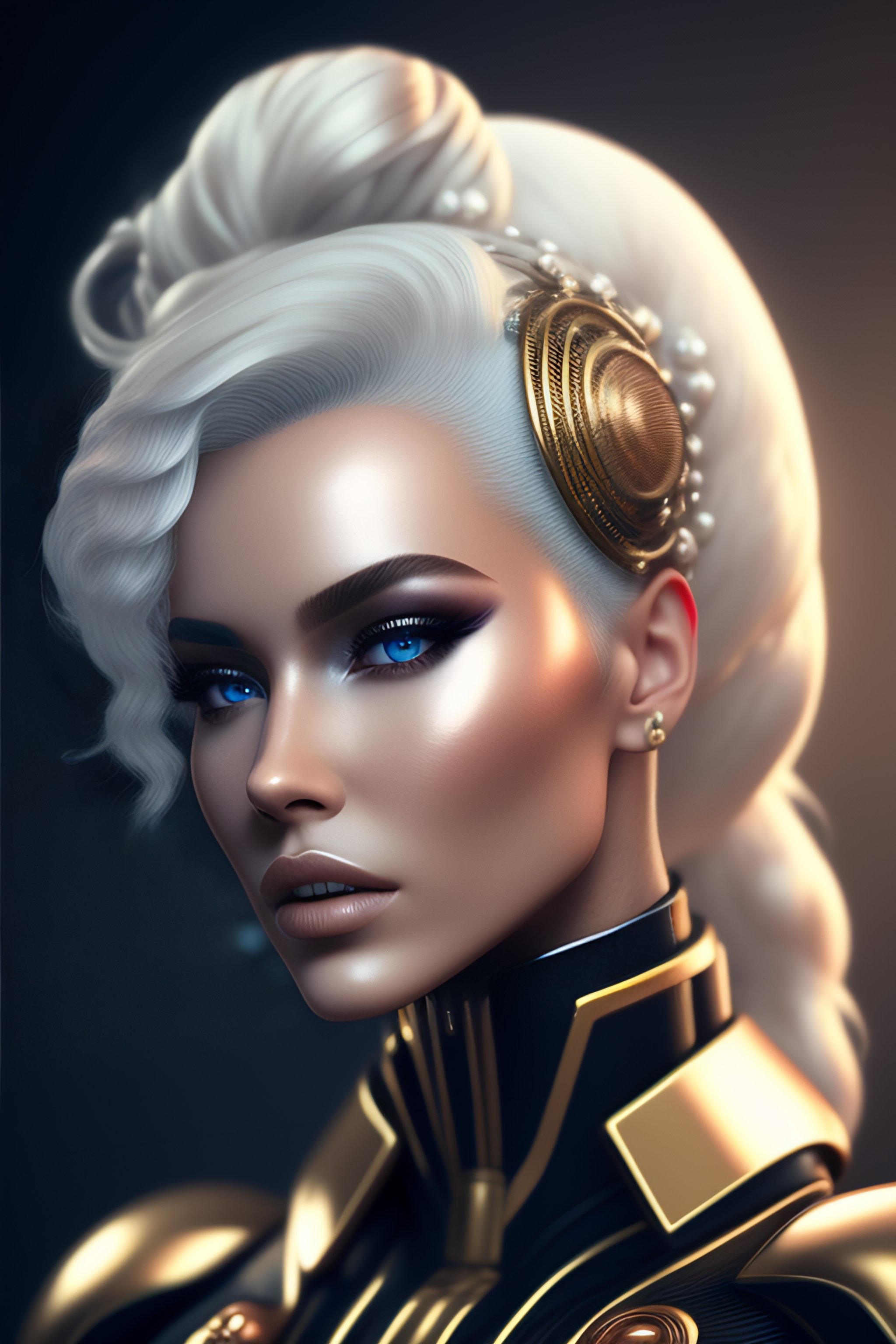 White- beautiful- cyborg- fashion shot- cyber- half robot- copper wires- spirals hairdo- baroque design- headshot- half figure- photorealistic- unreal engine- trending- artstation- 8k