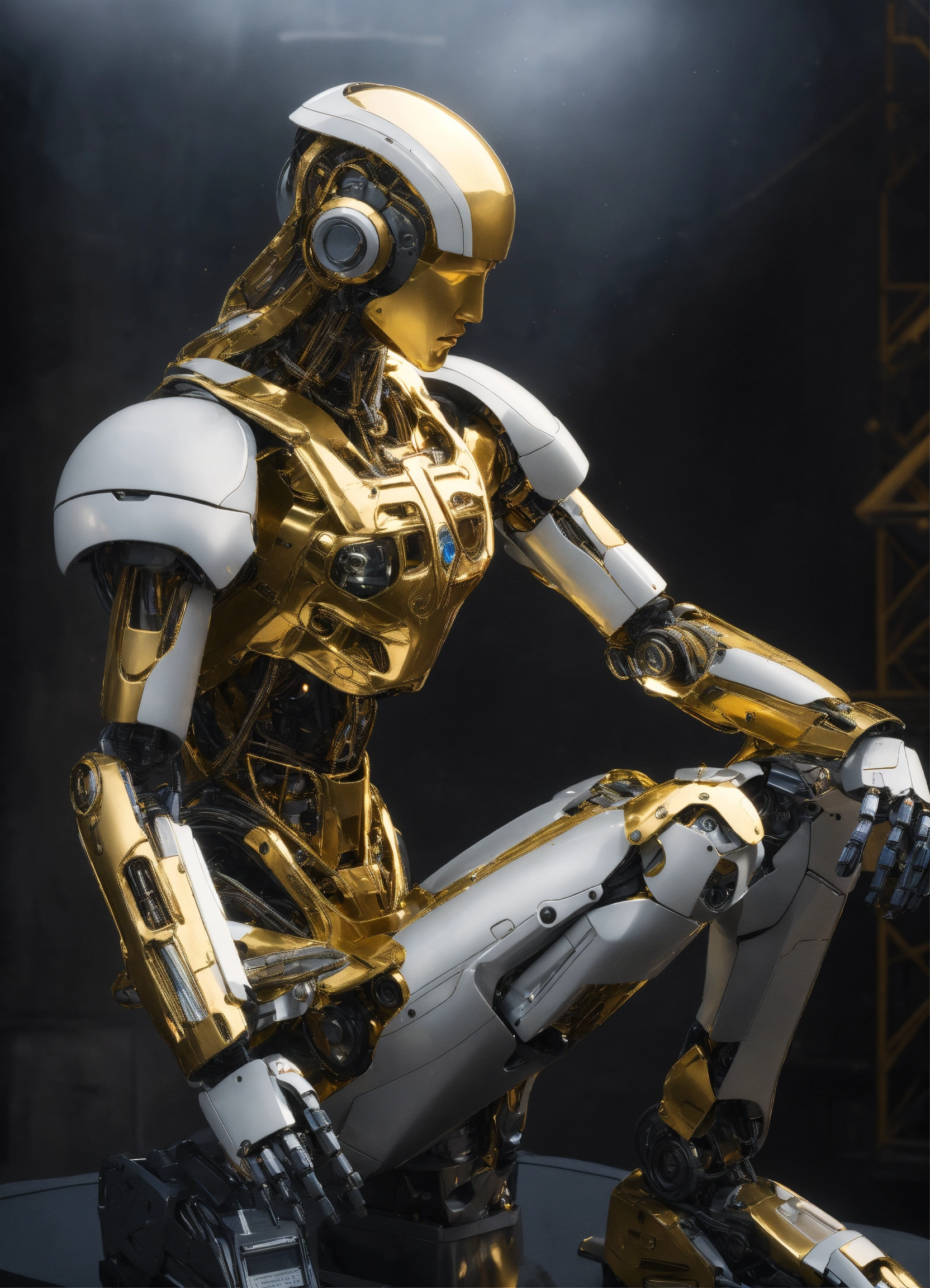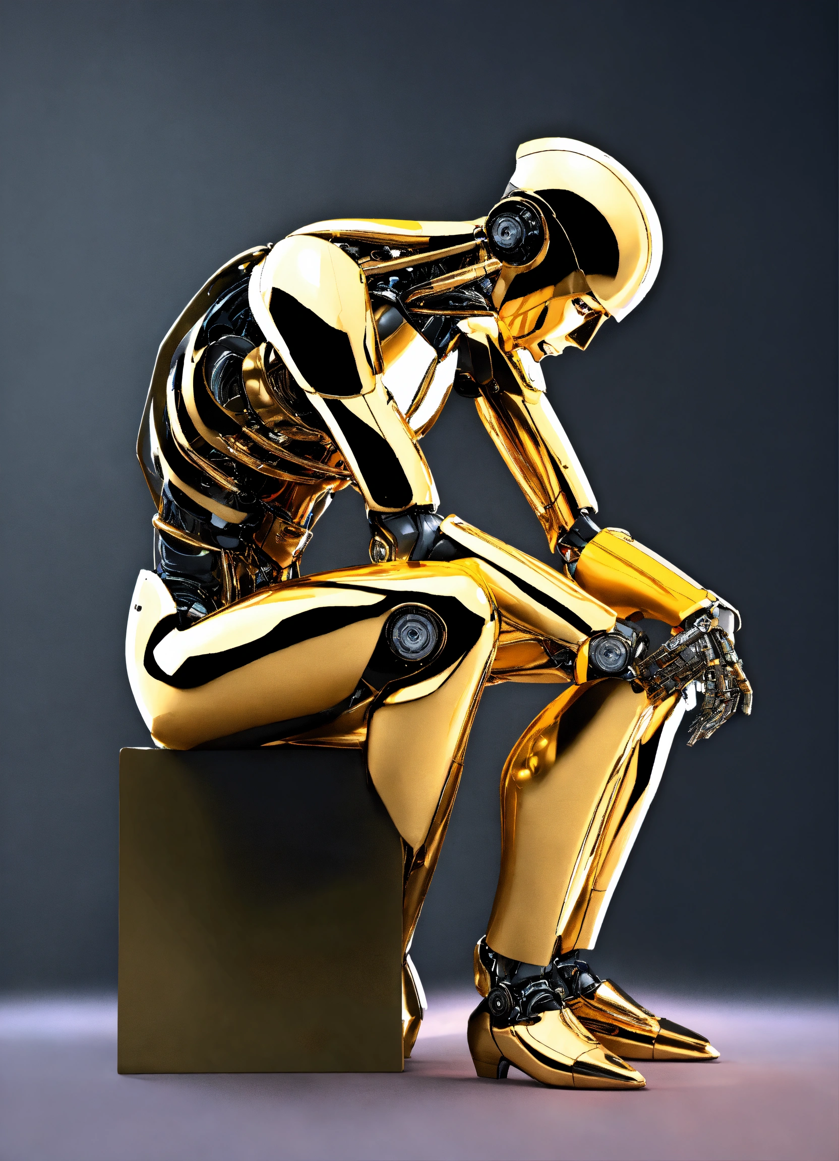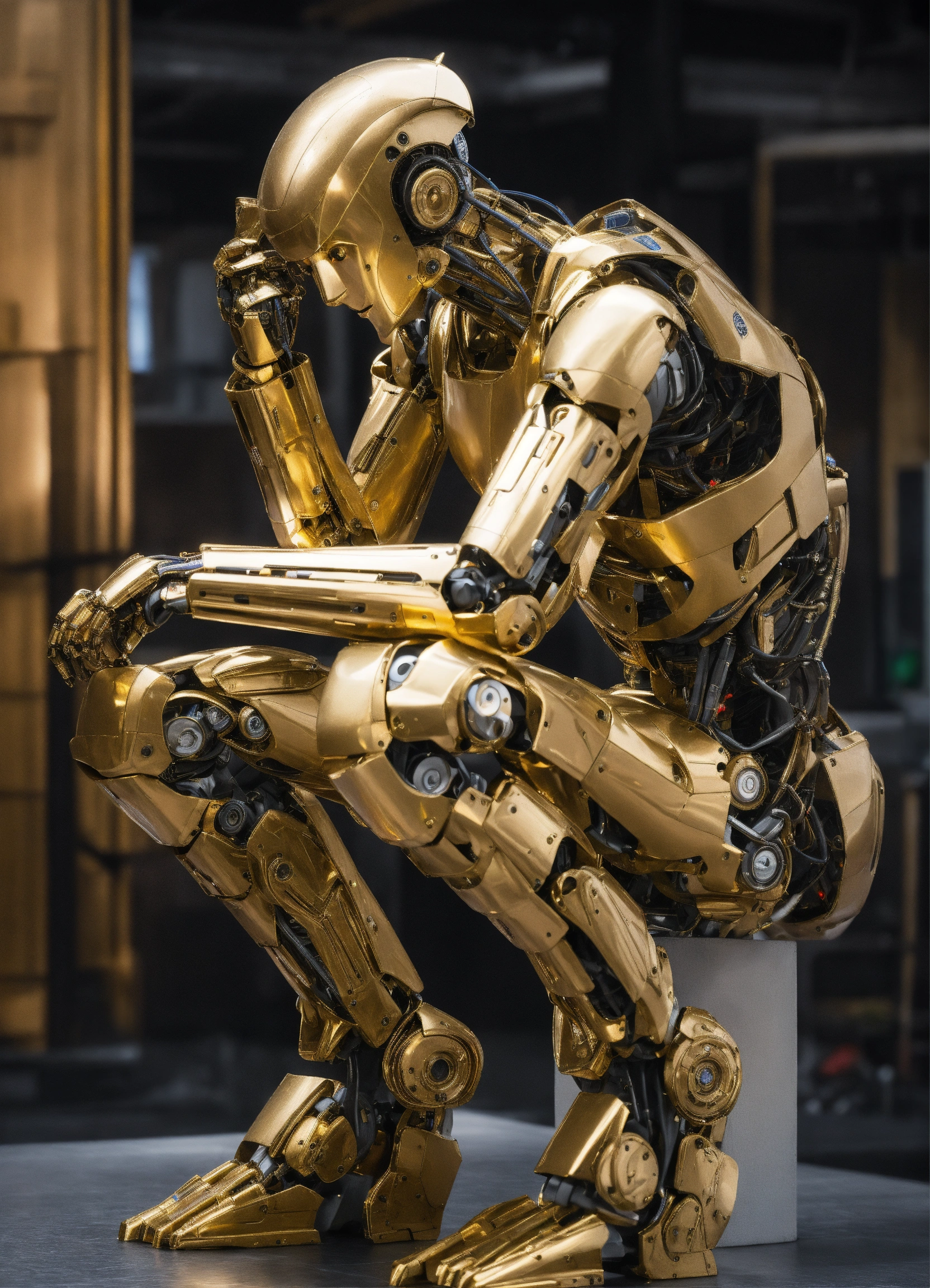 Create a 4k high-resolution hyper-realistic image of a humanoid robot as the thinker
