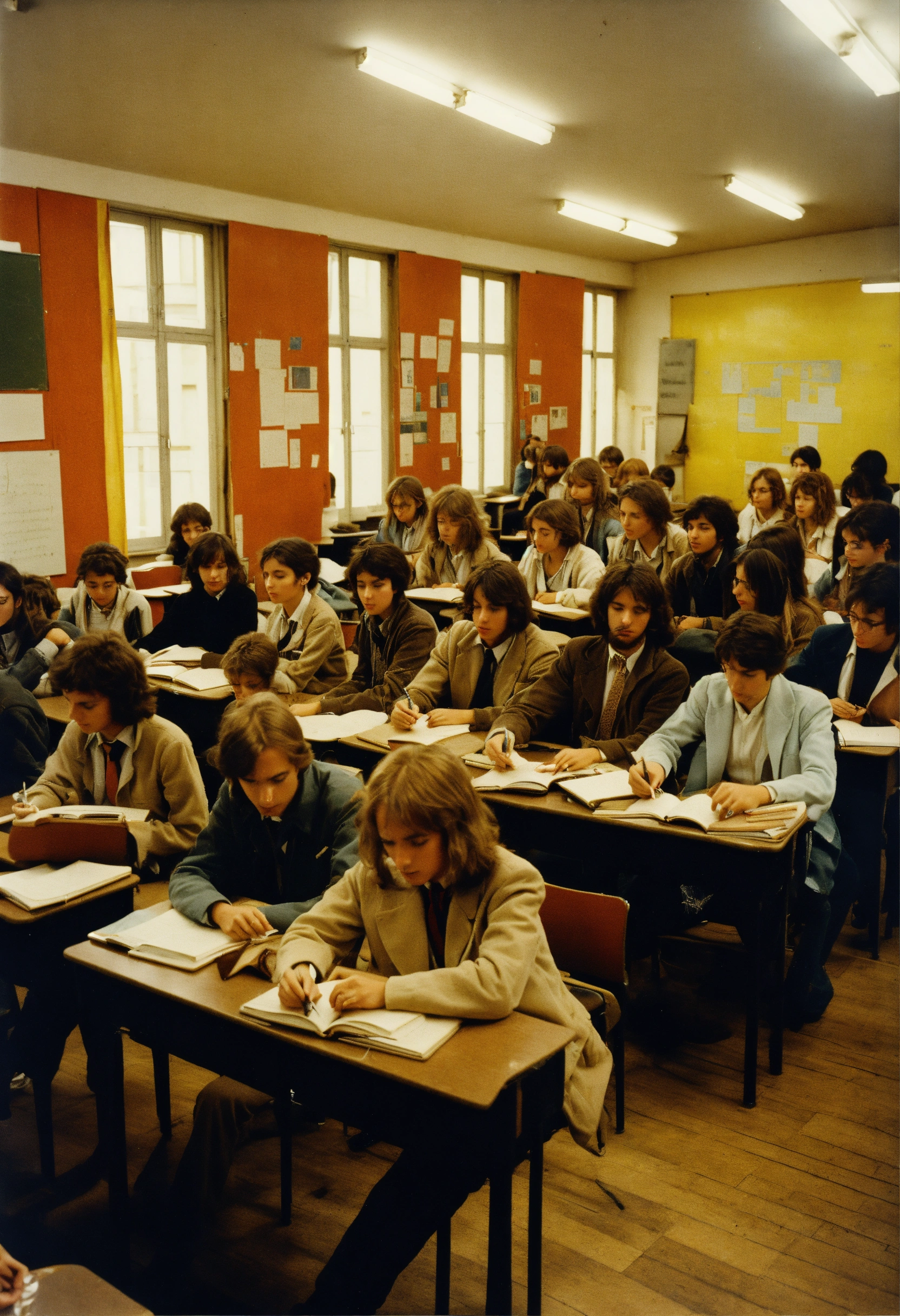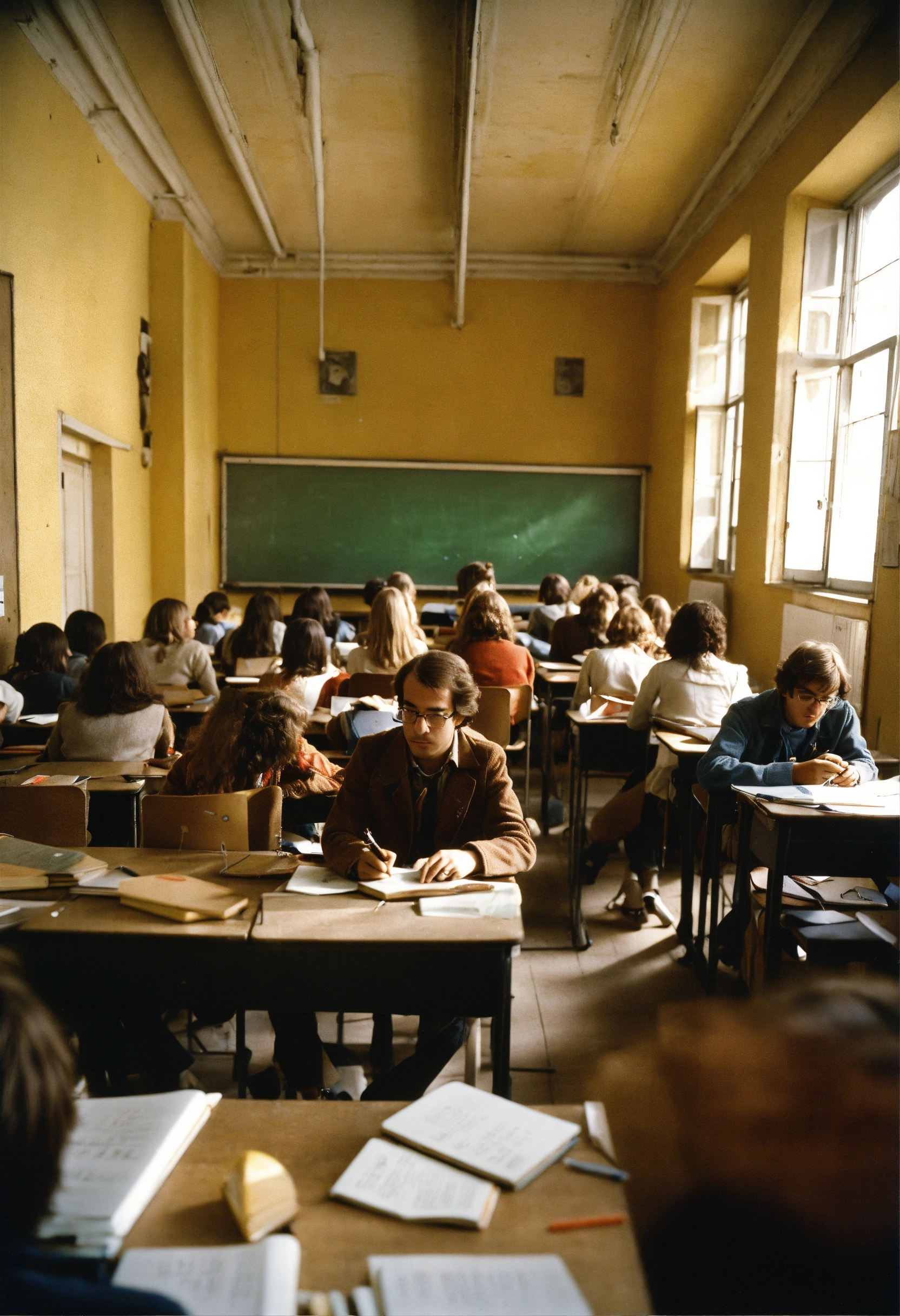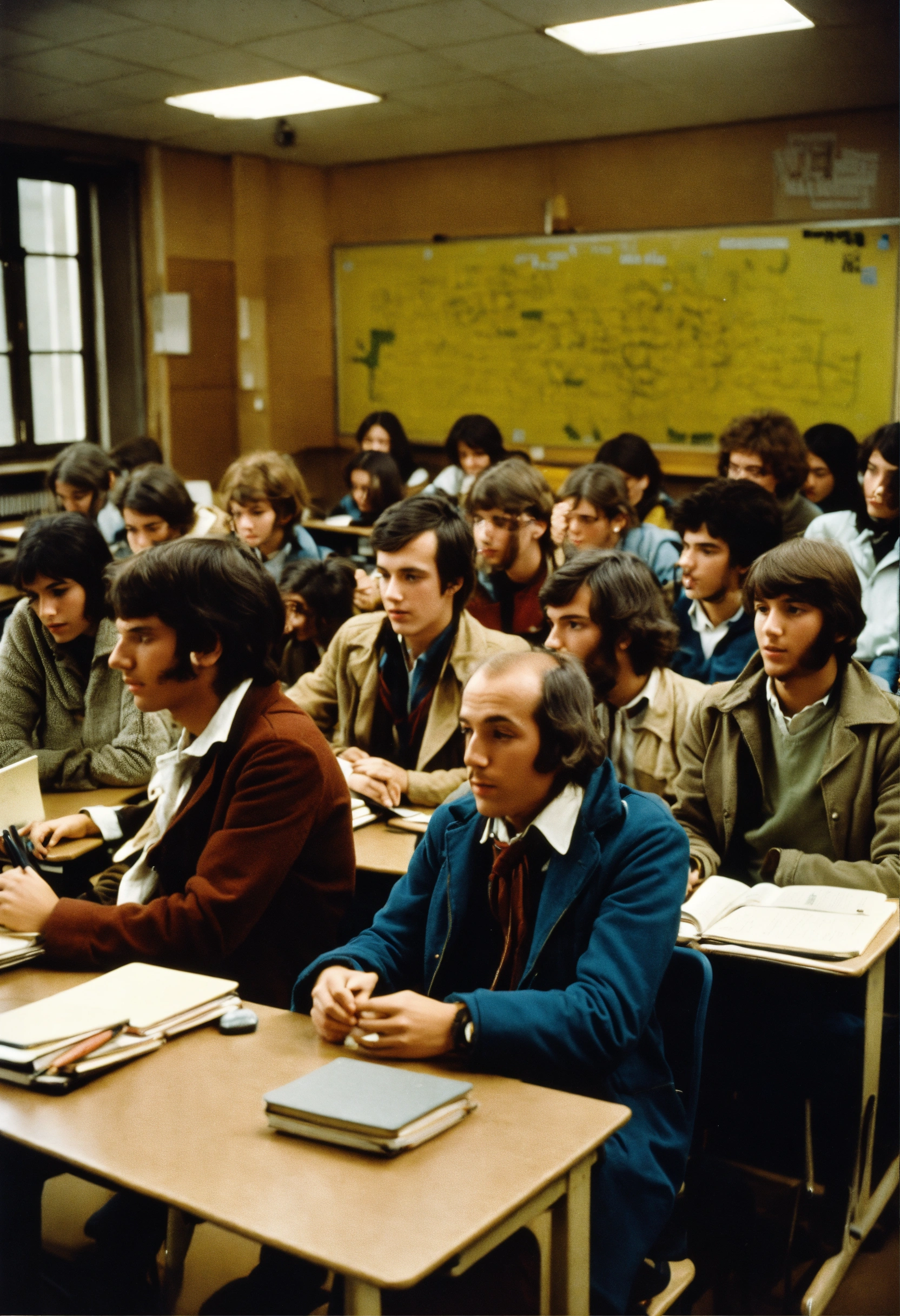Classroom full of students vincennes university in france in 70's gilles deleuze